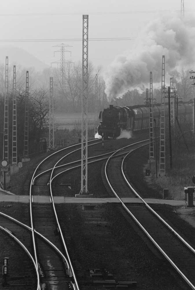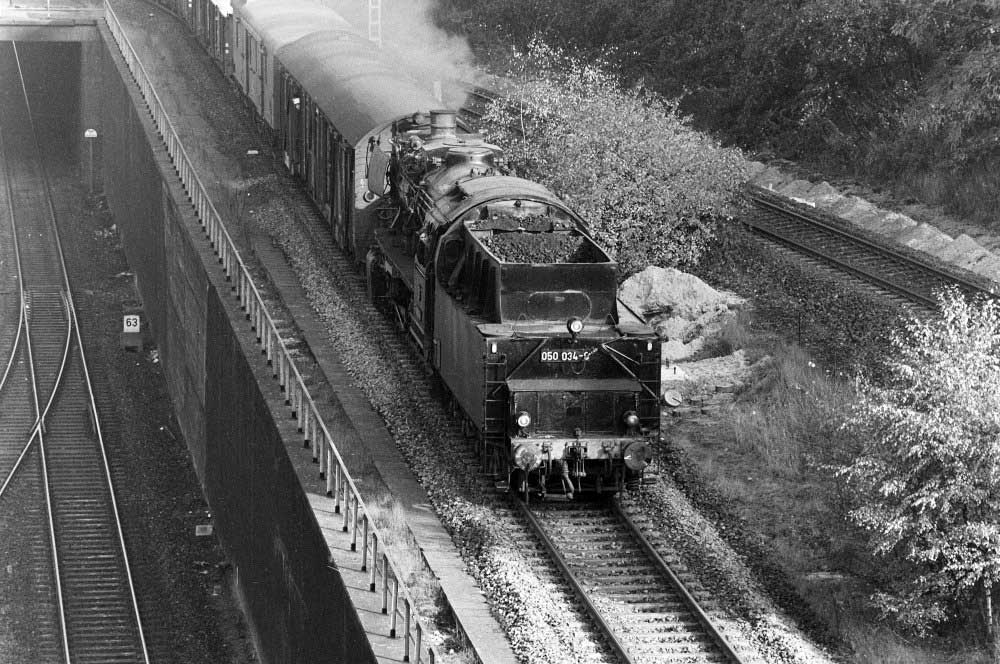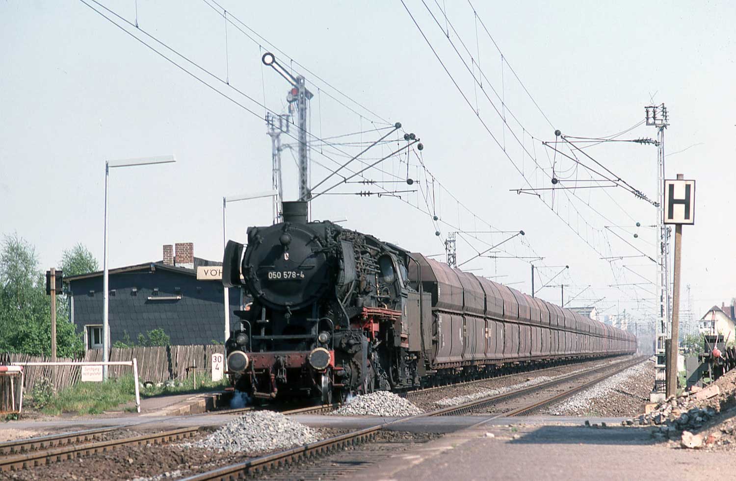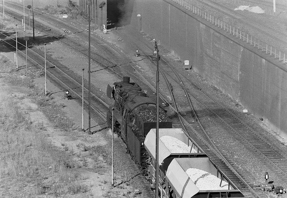 Der hinten zu sehende Zug mit der 050 befährt das schon lange abgebaute Gleis von der Abzw. Gabelung zur Einfahrgruppe des Rbf.