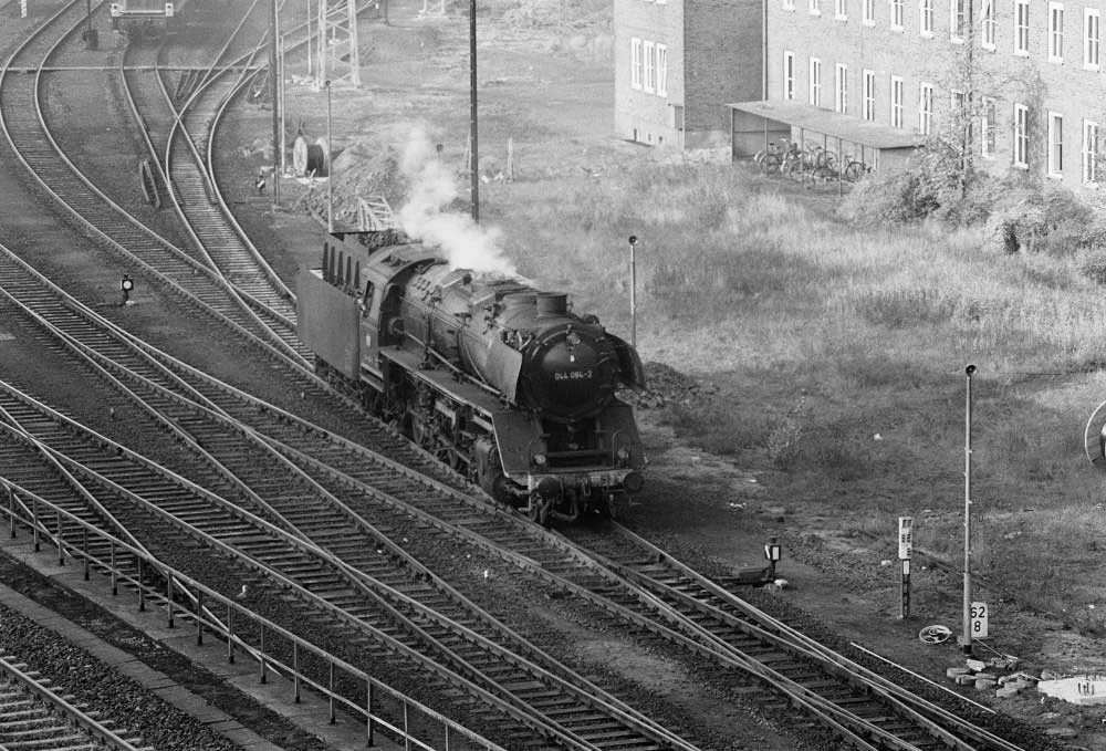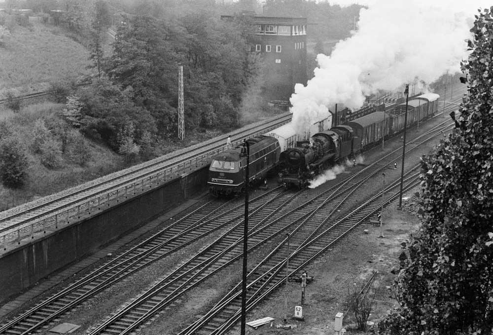 km 62,8 aus anderer Sicht in Braunschweig Rbf - 044 084 Foto: ICE, 28.10.1975