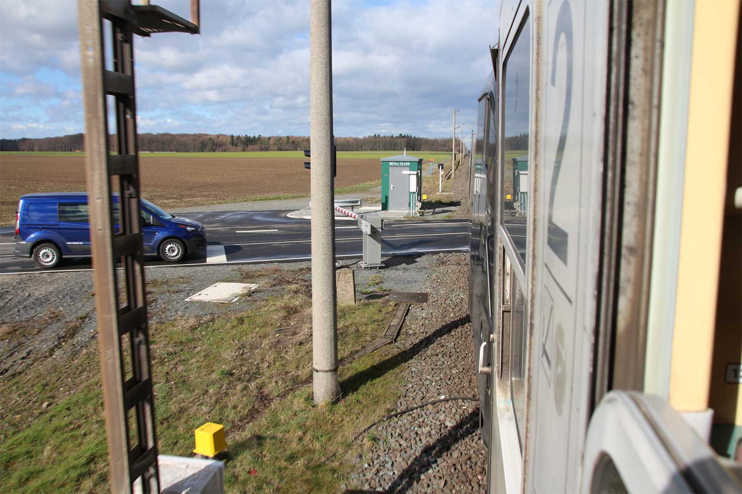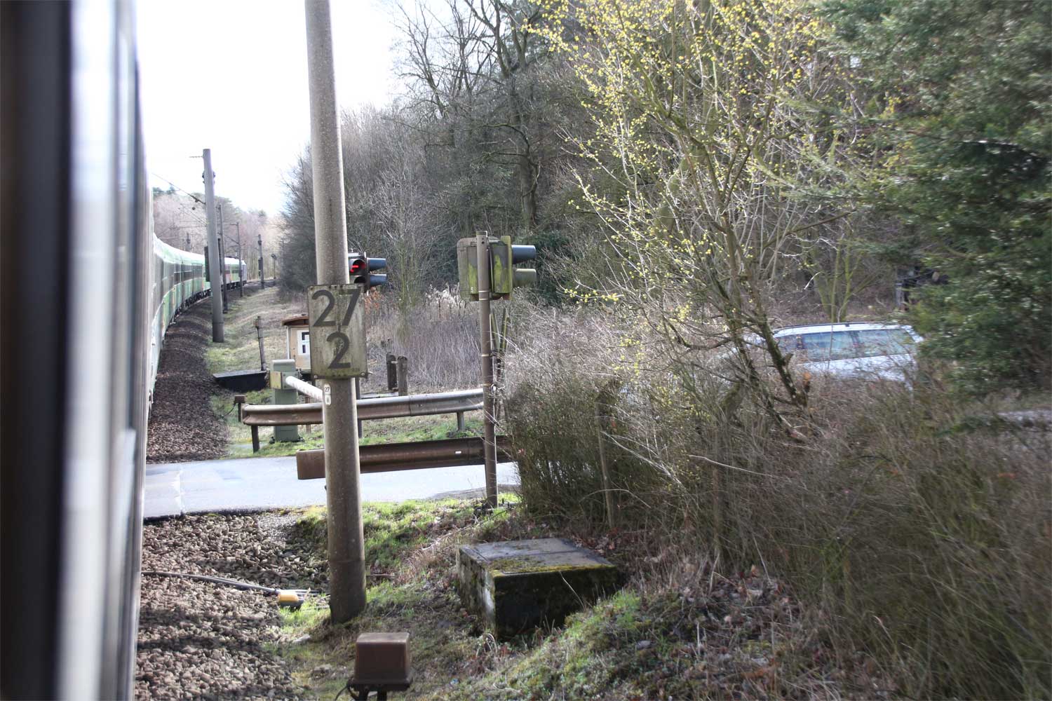 Im Hintergrund ist noch das Gebäude für den Schrankenwärter an der Abzw Teufelsspring zu erkennen.