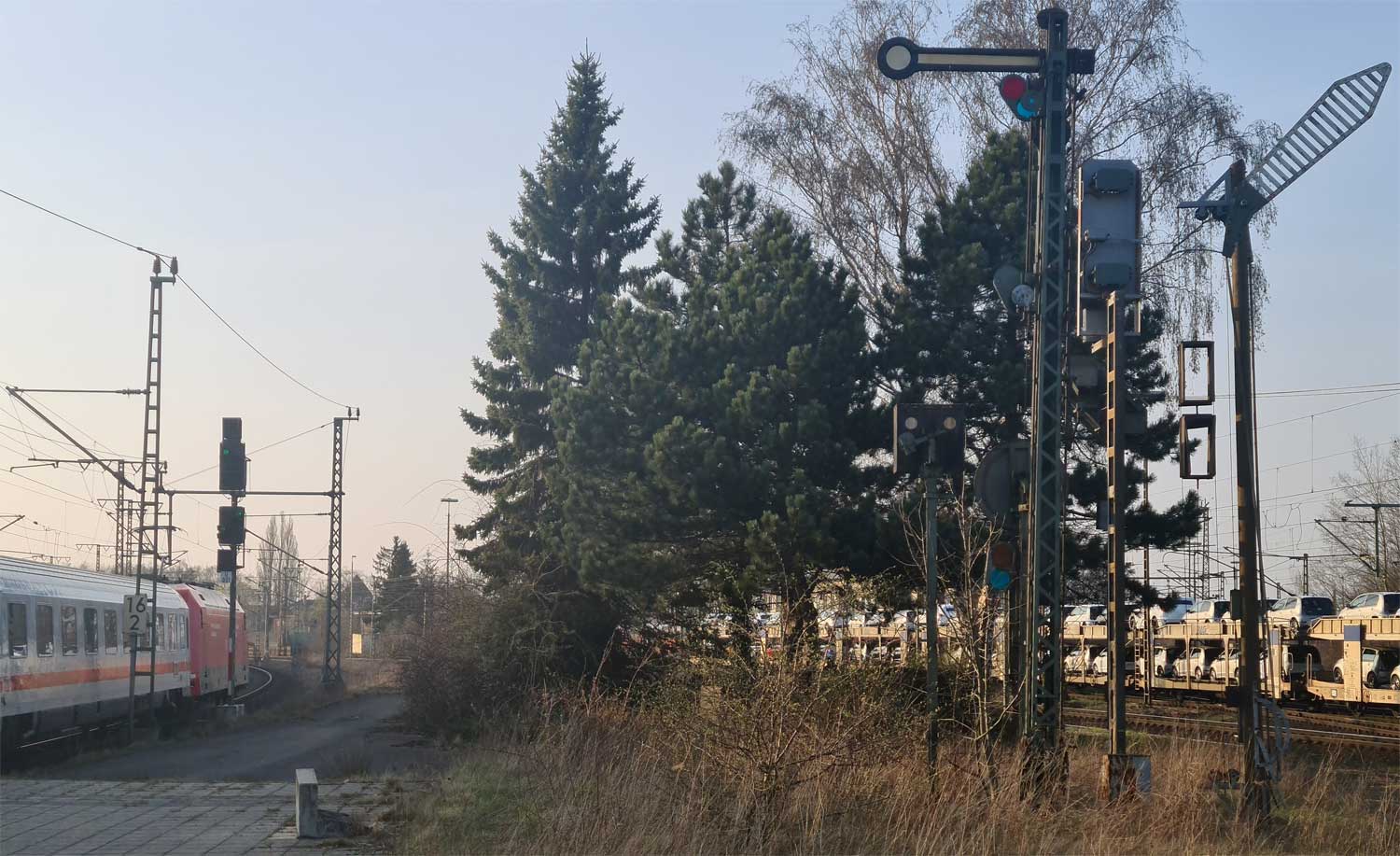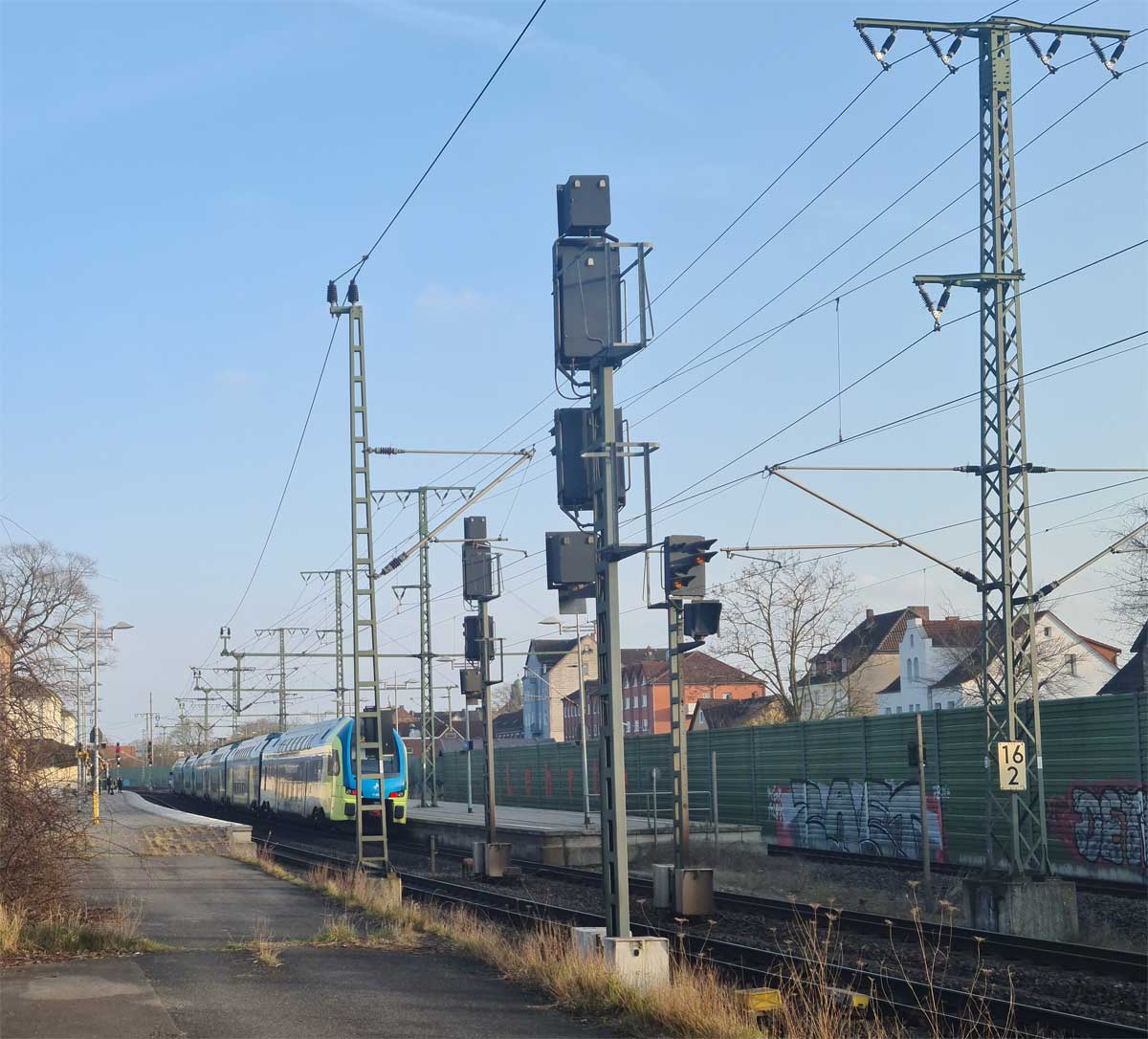 km 16,6 (rechts im Hintergrund) in Lehrte - Blick Richtung Braunschweig