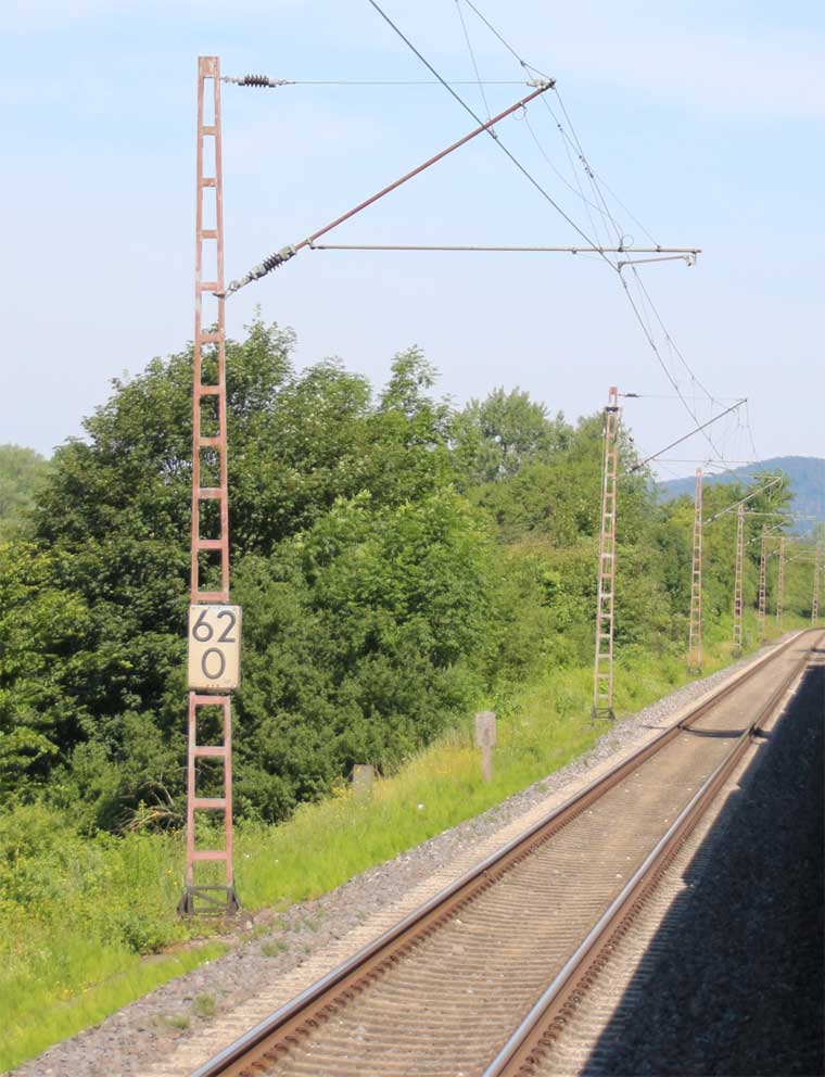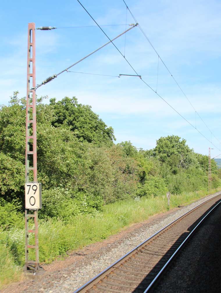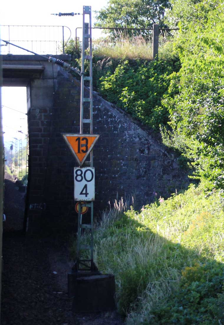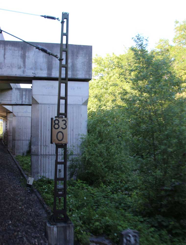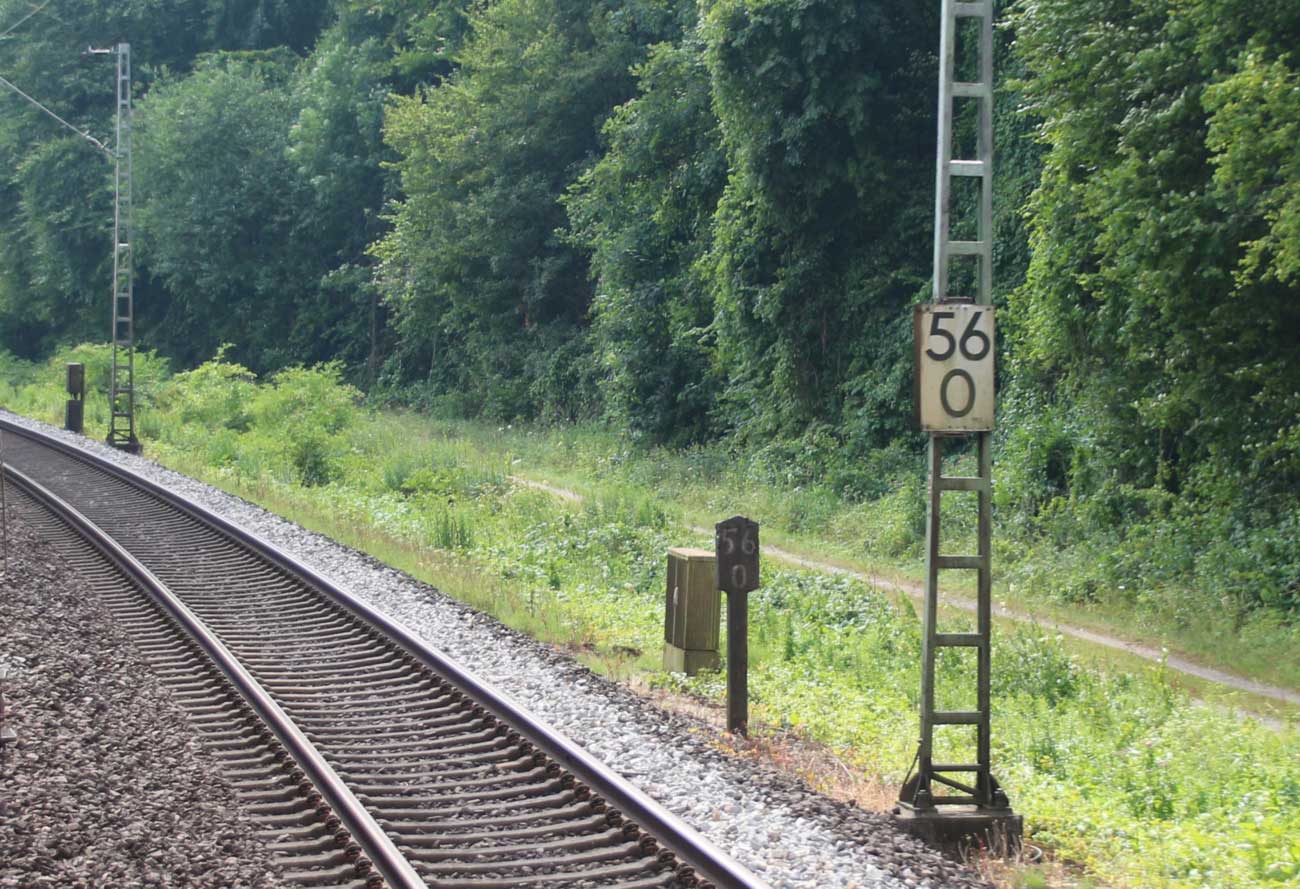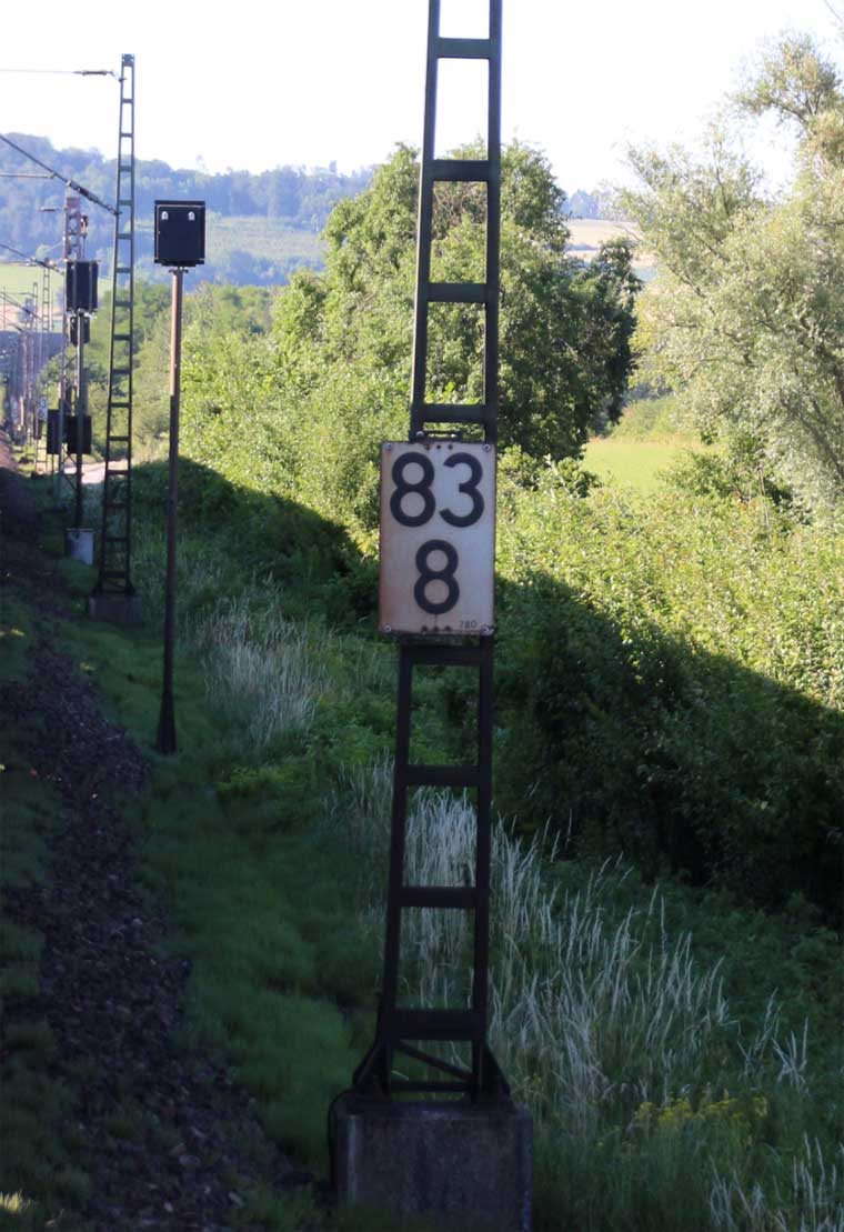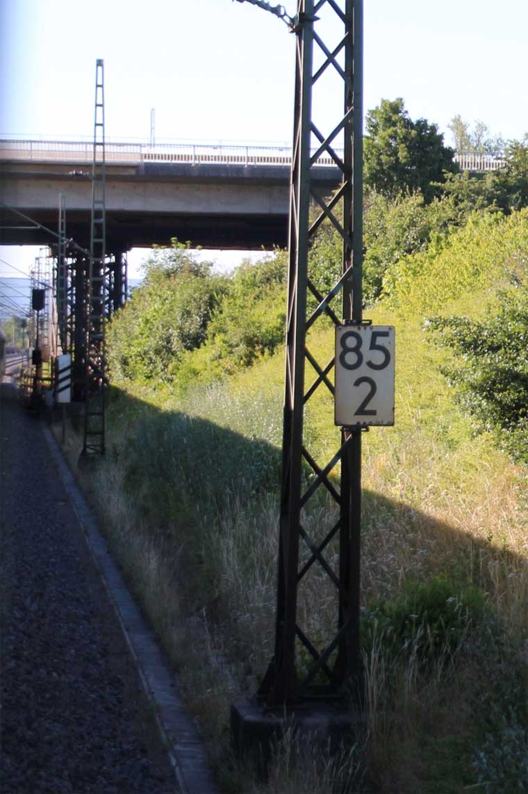 km 1,2 (rechts am Oberleitungsmast) gehört zur Strecke