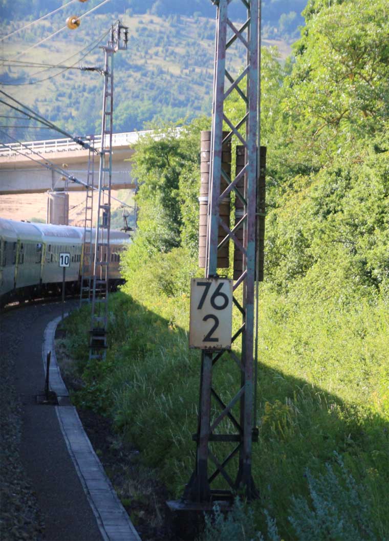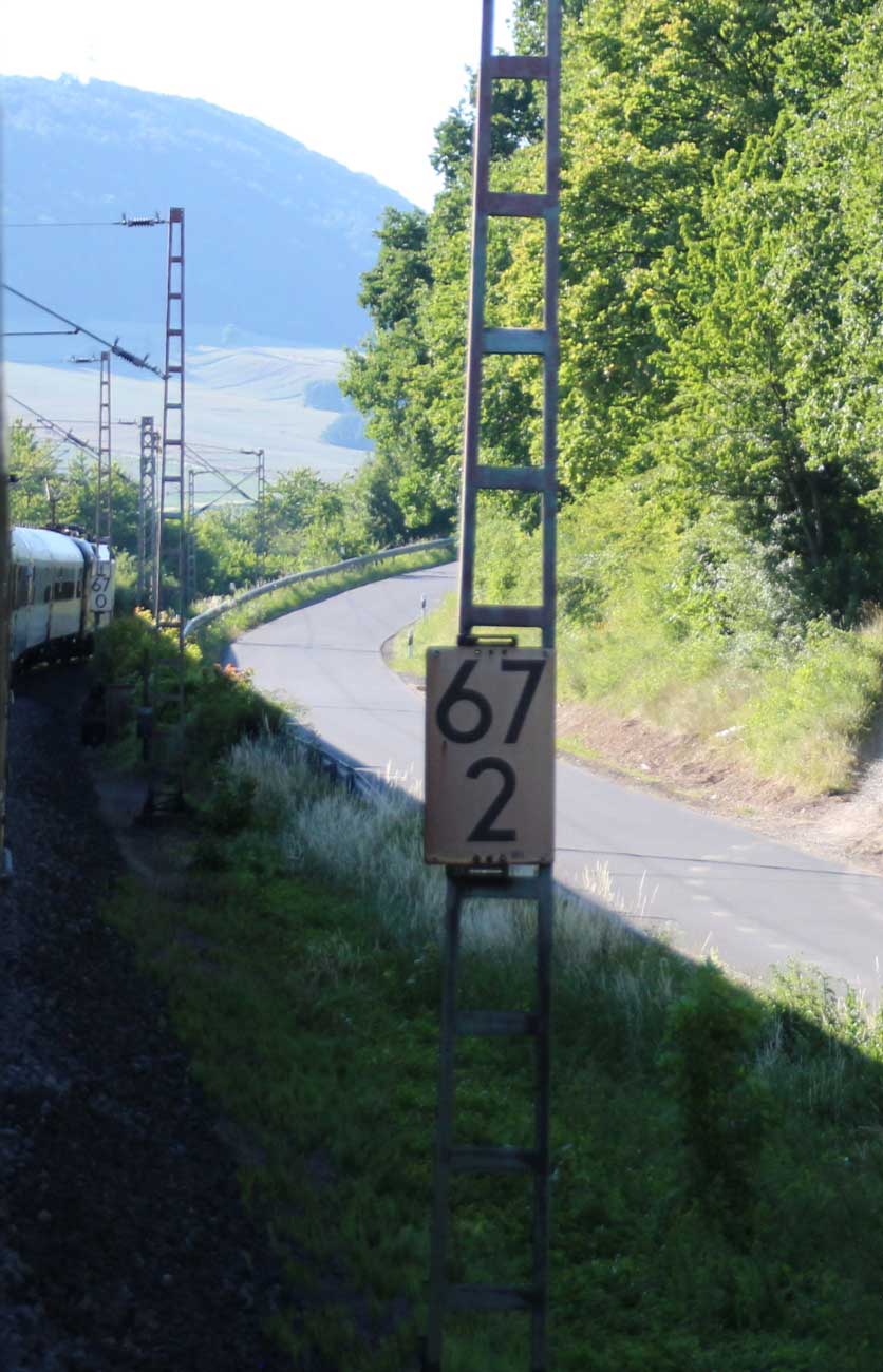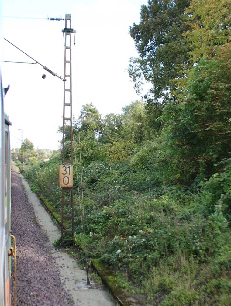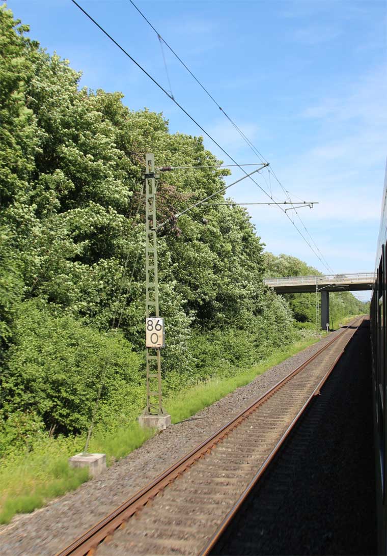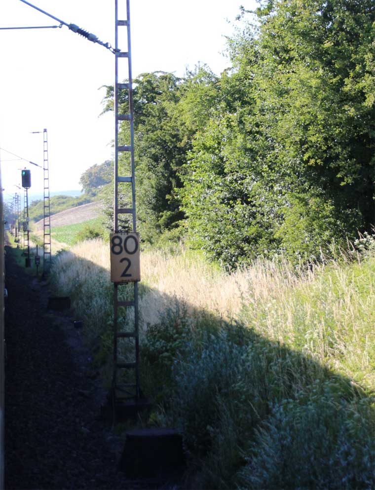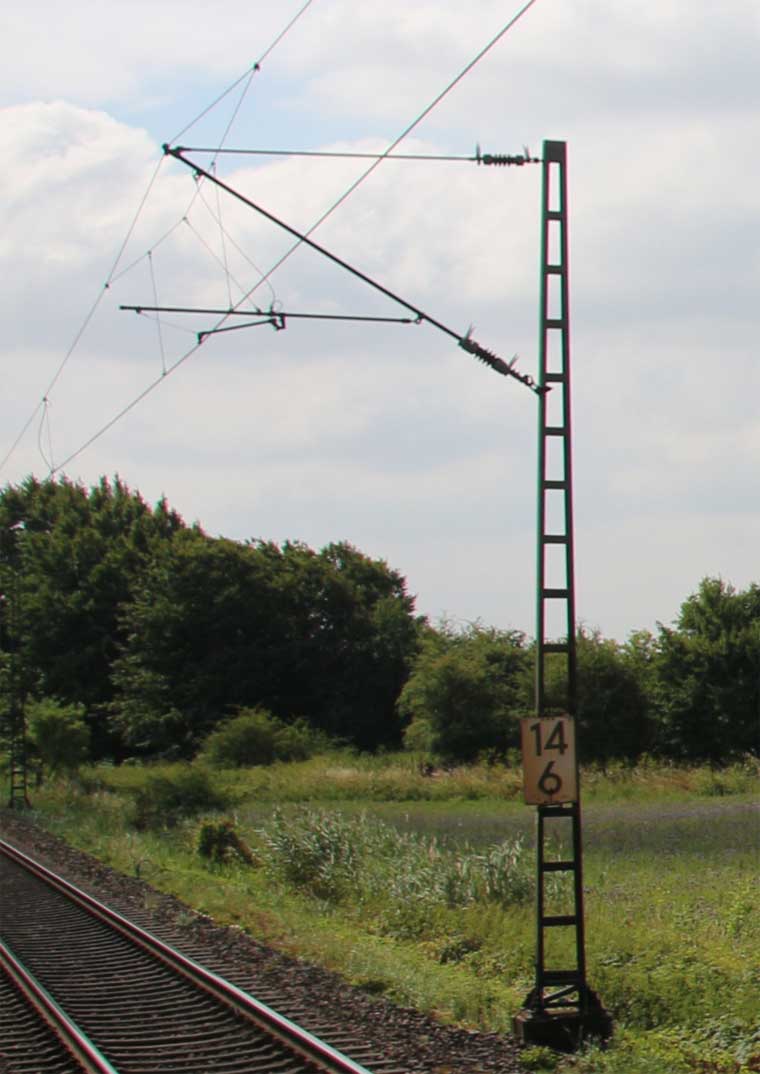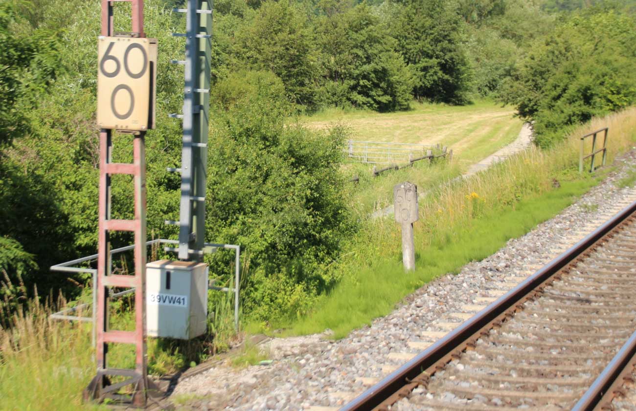 km 1,2 (rechts am Oberleitungsmast) gehört zur Strecke