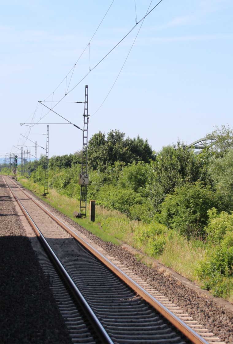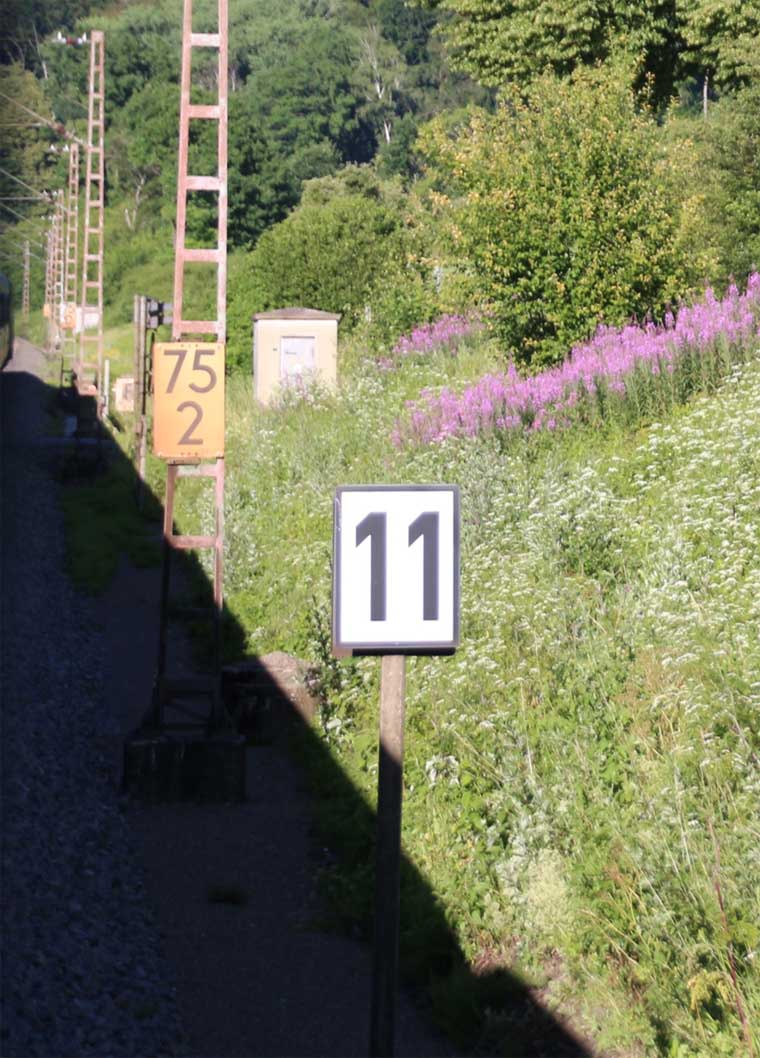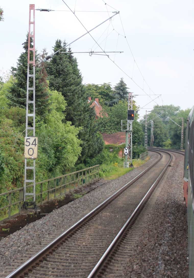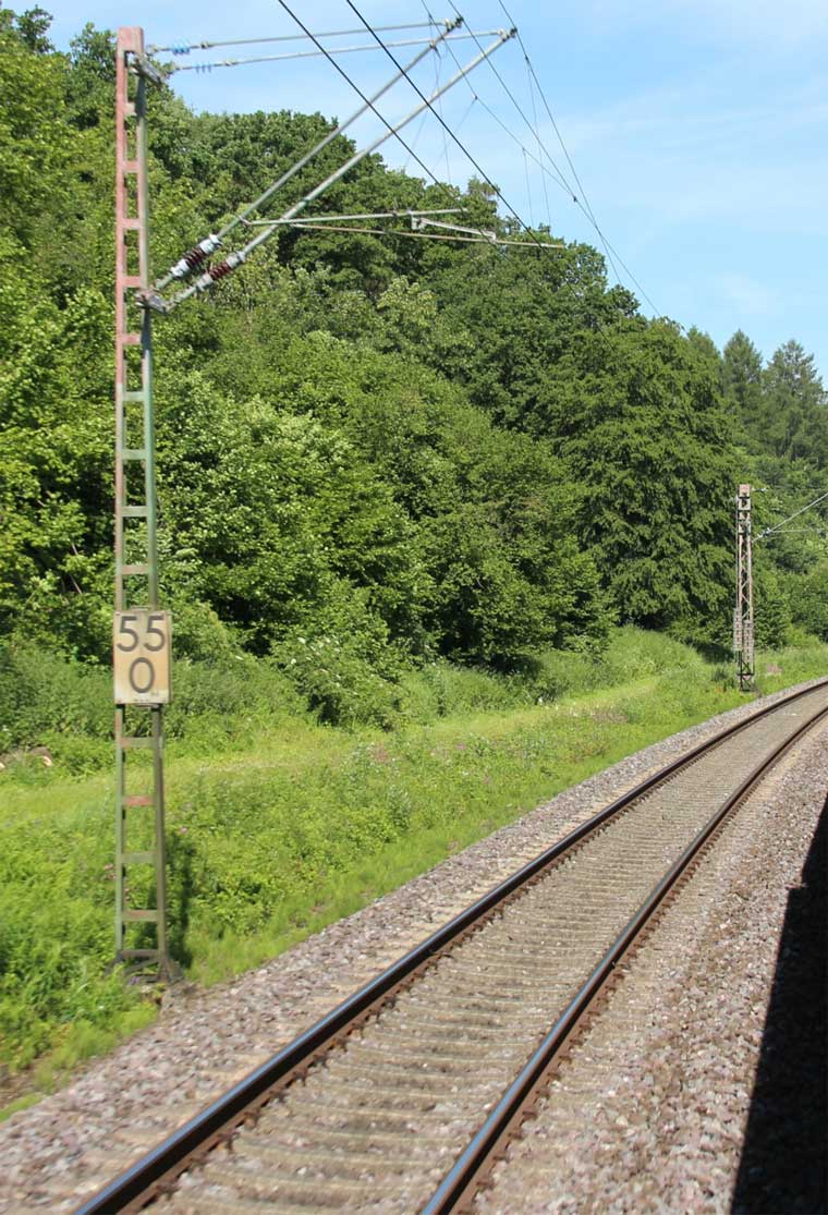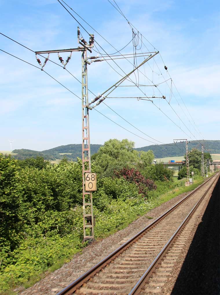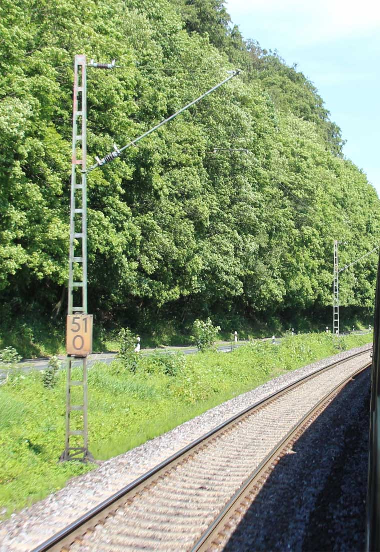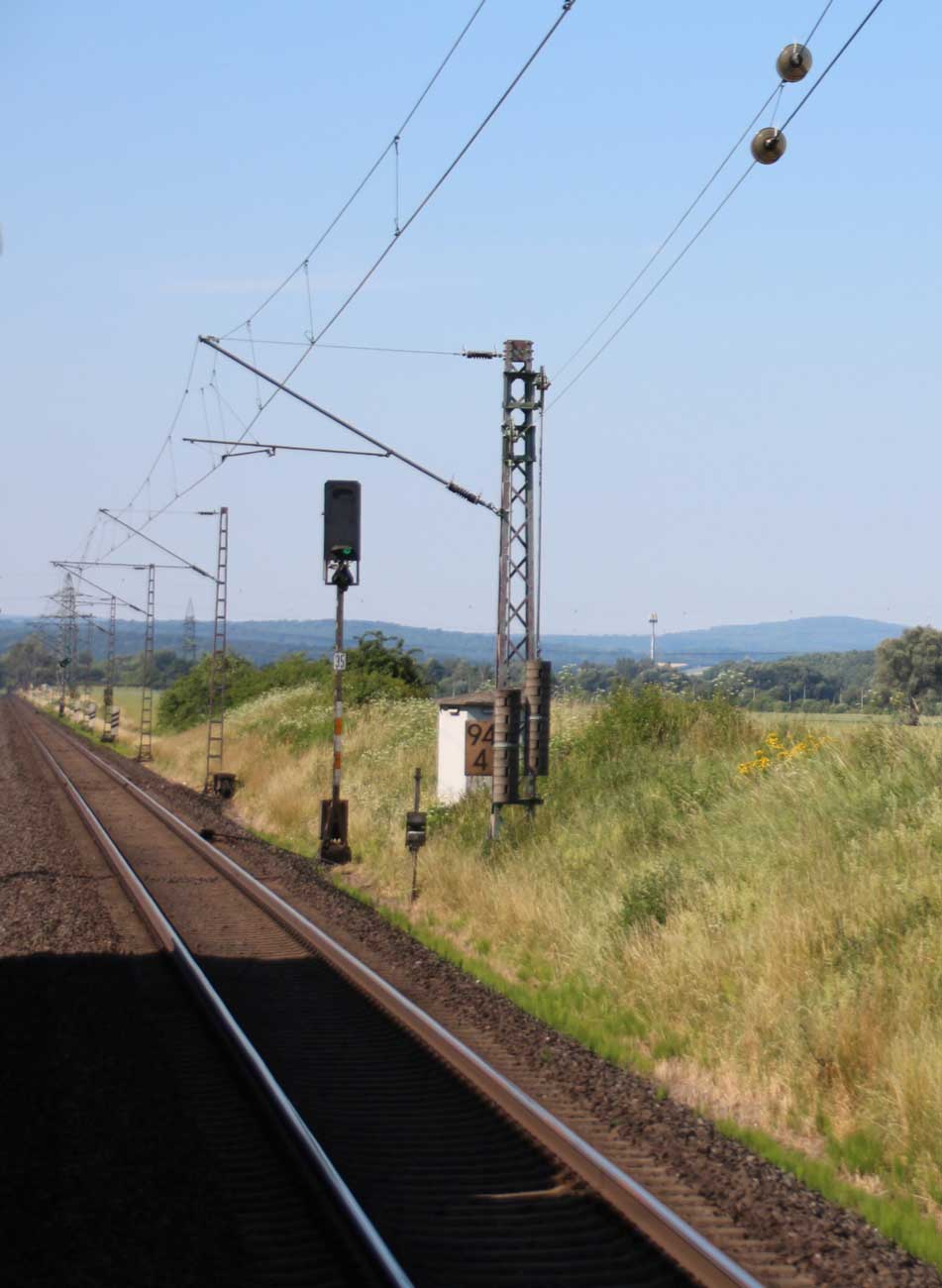 km 1,2 (rechts am Oberleitungsmast) gehört zur Strecke