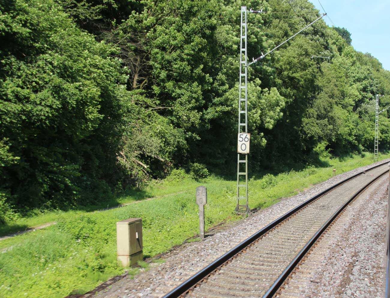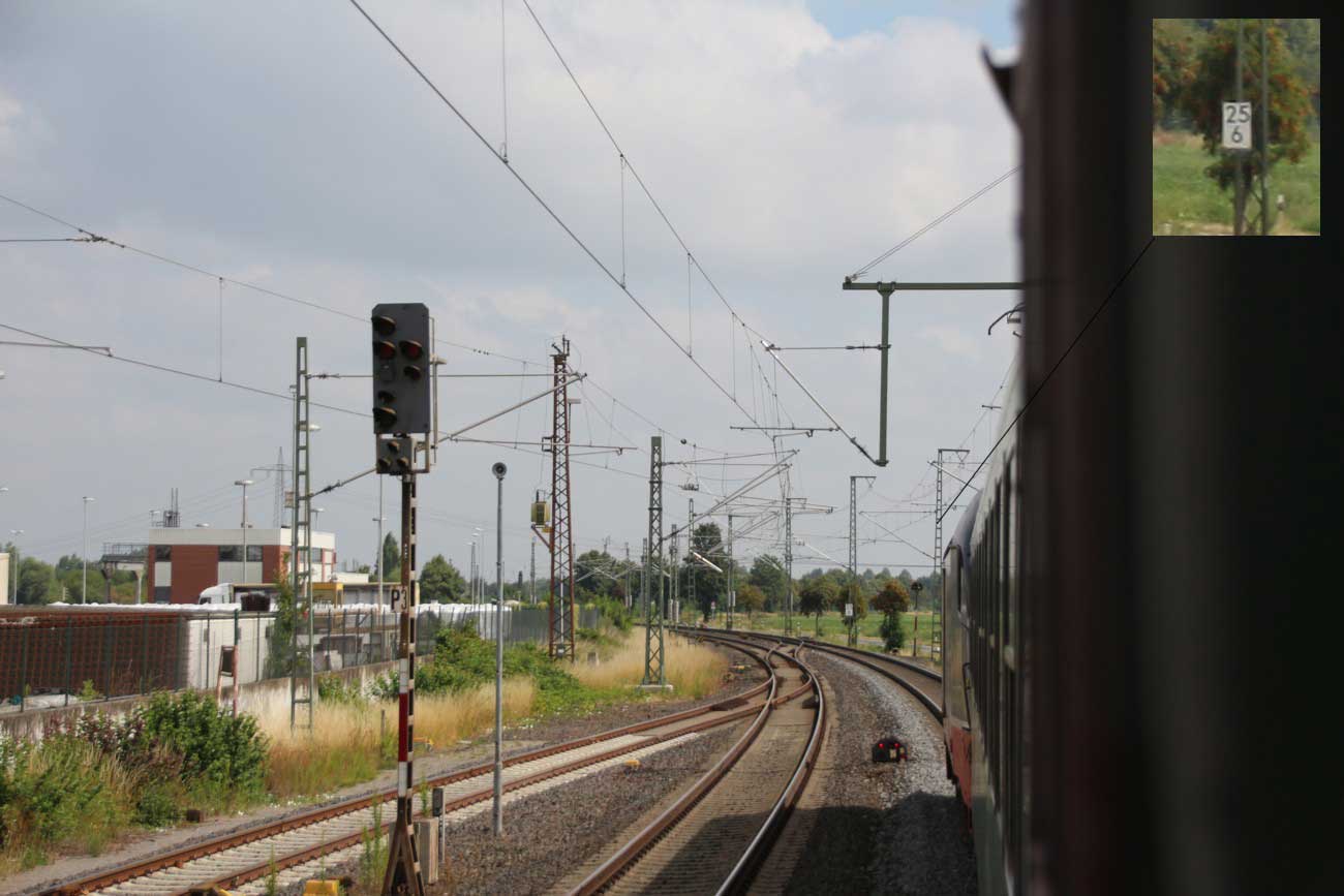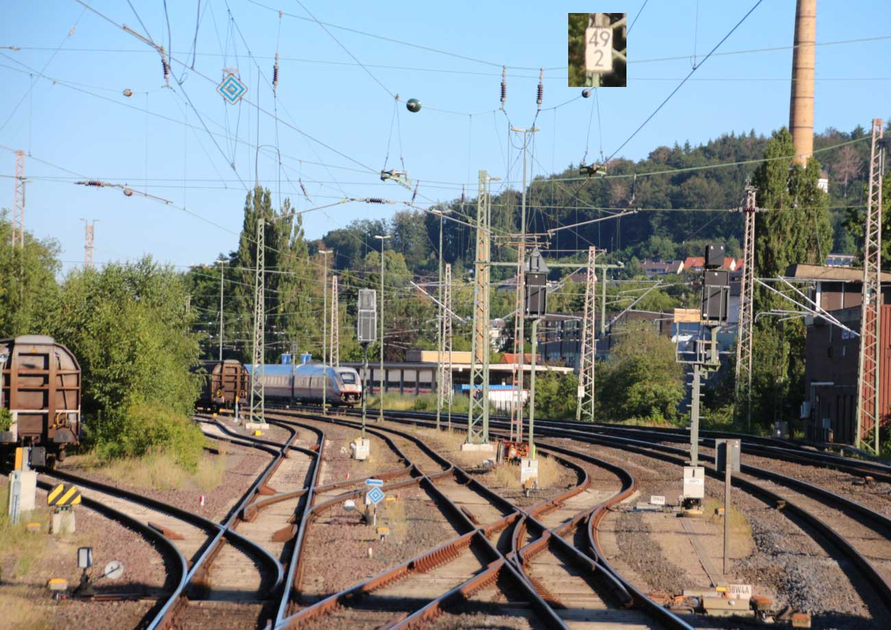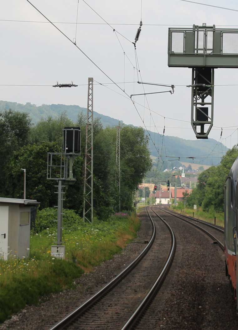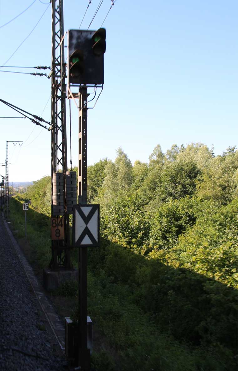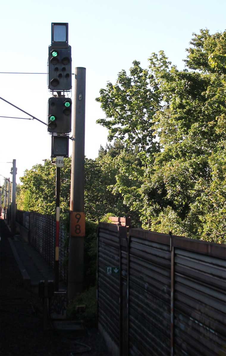 km 1,2 (rechts am Oberleitungsmast) gehört zur Strecke