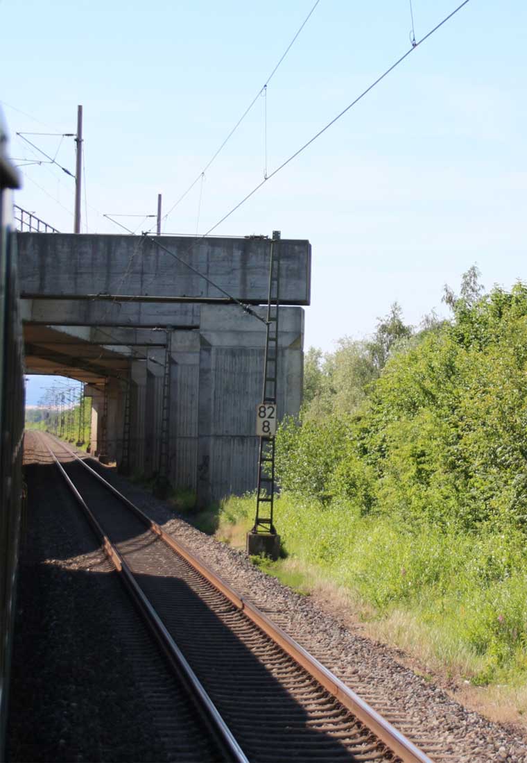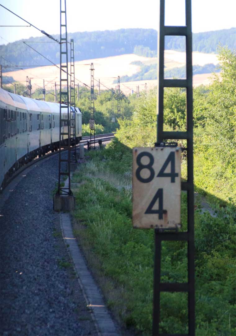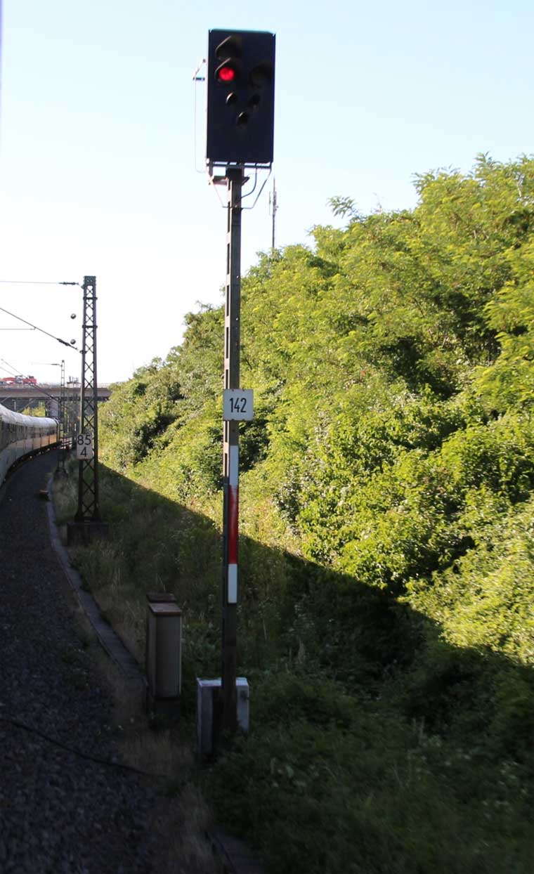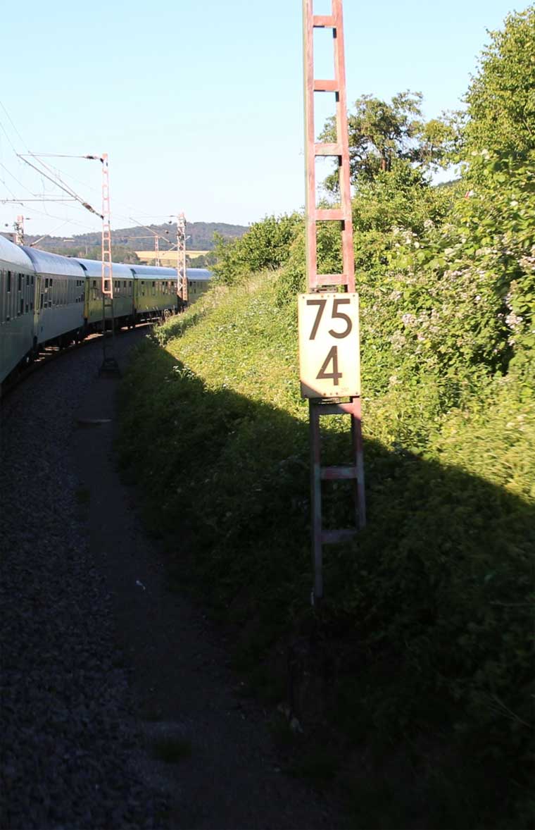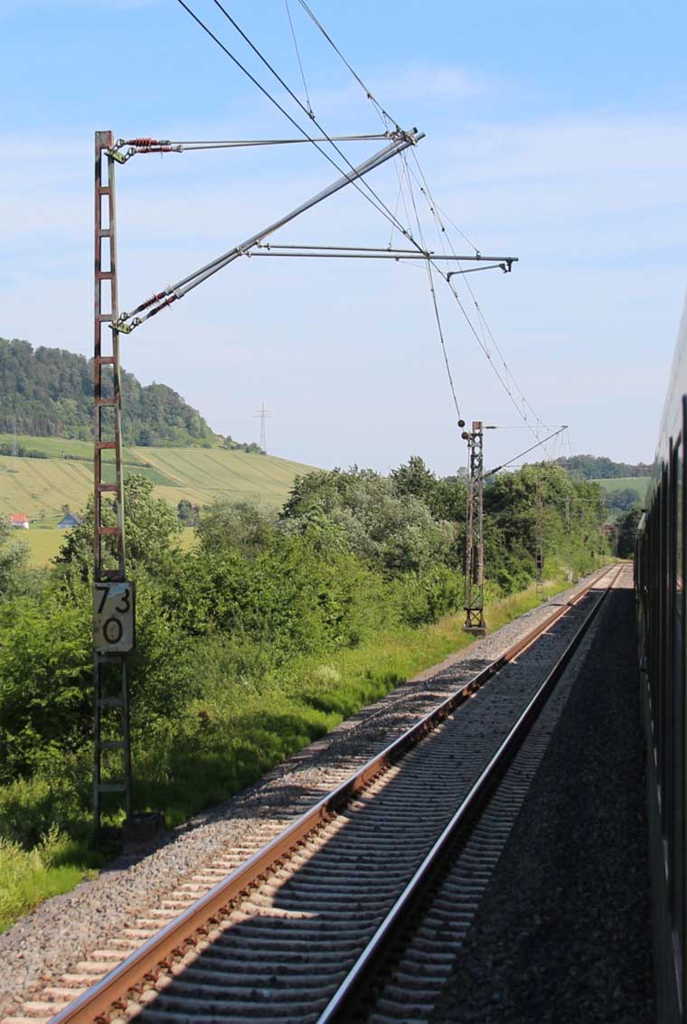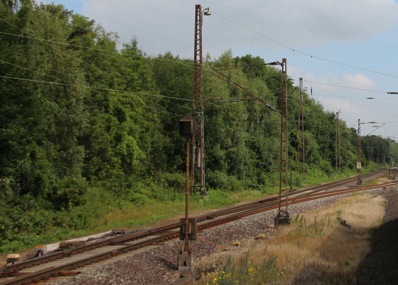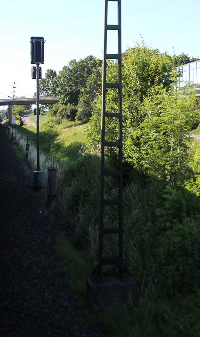 km 1,2 (rechts am Oberleitungsmast) gehört zur Strecke