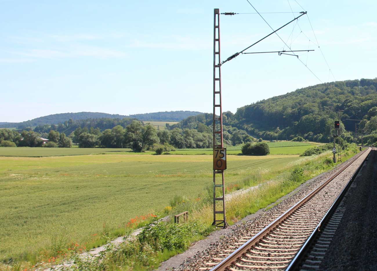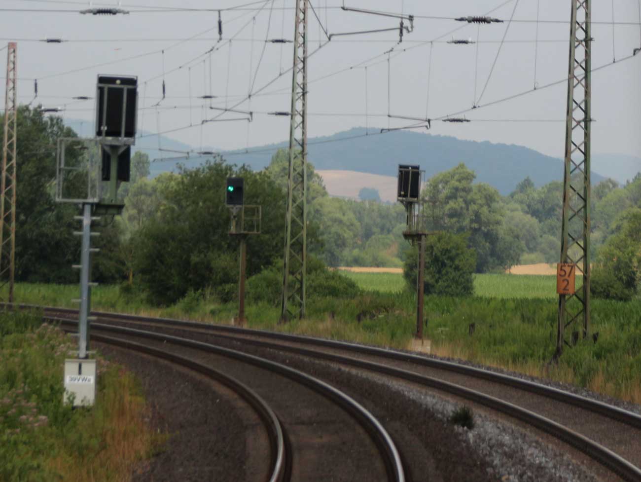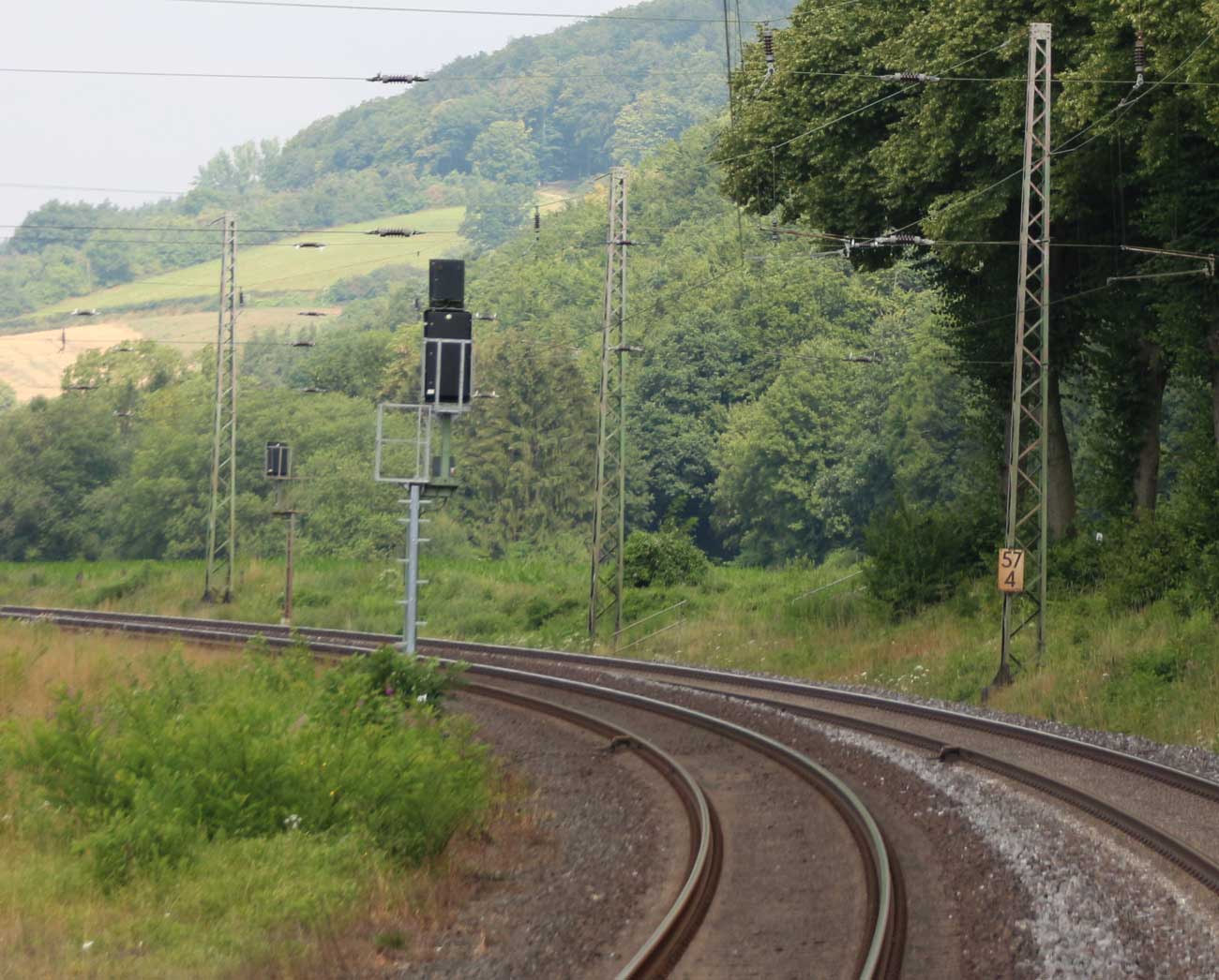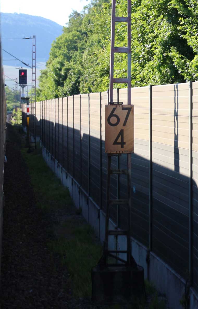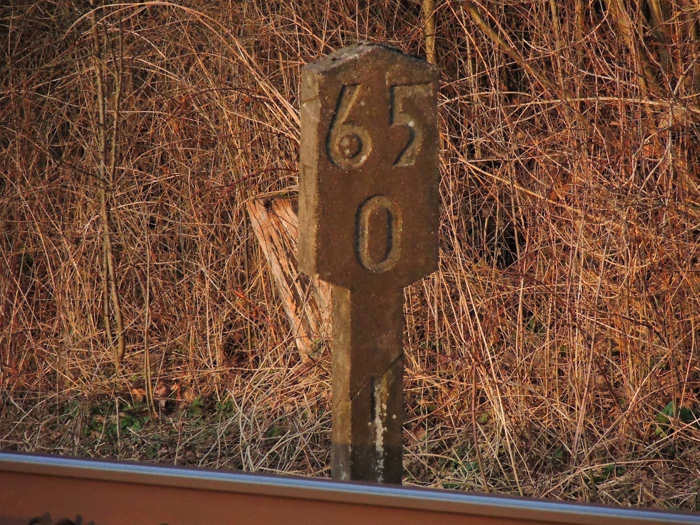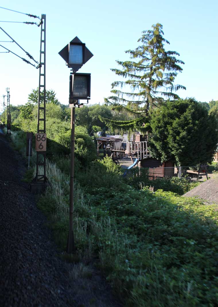 km 1,2 (rechts am Oberleitungsmast) gehört zur Strecke