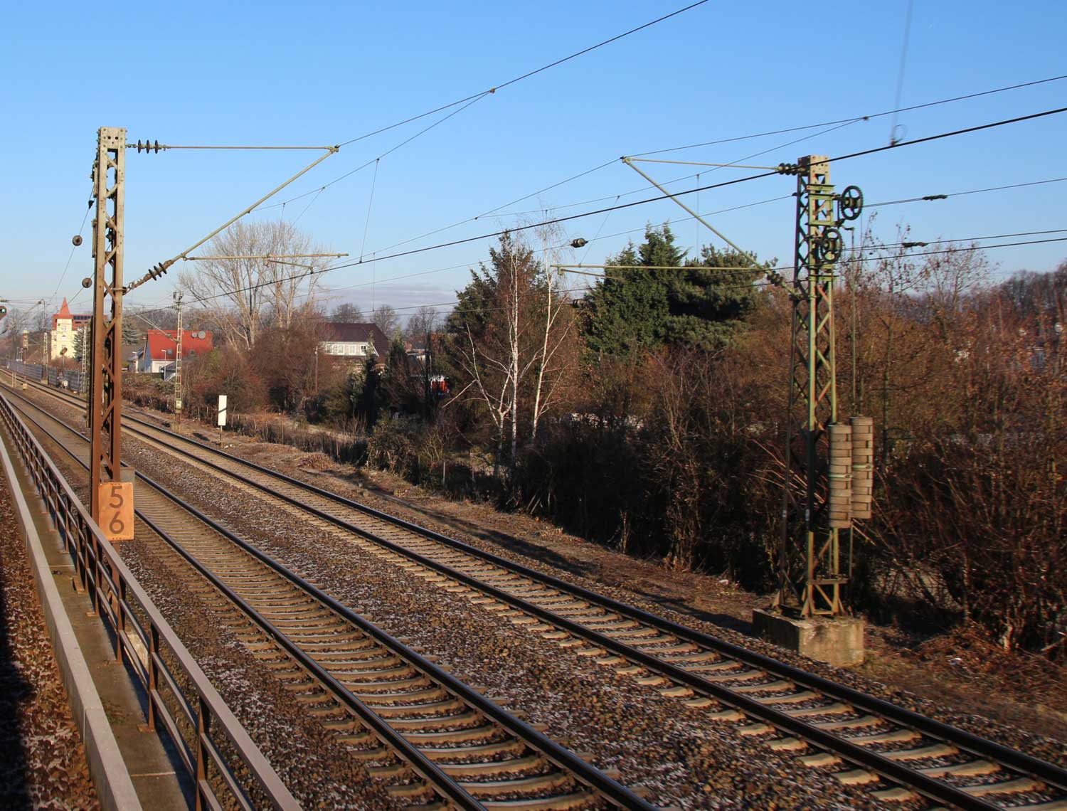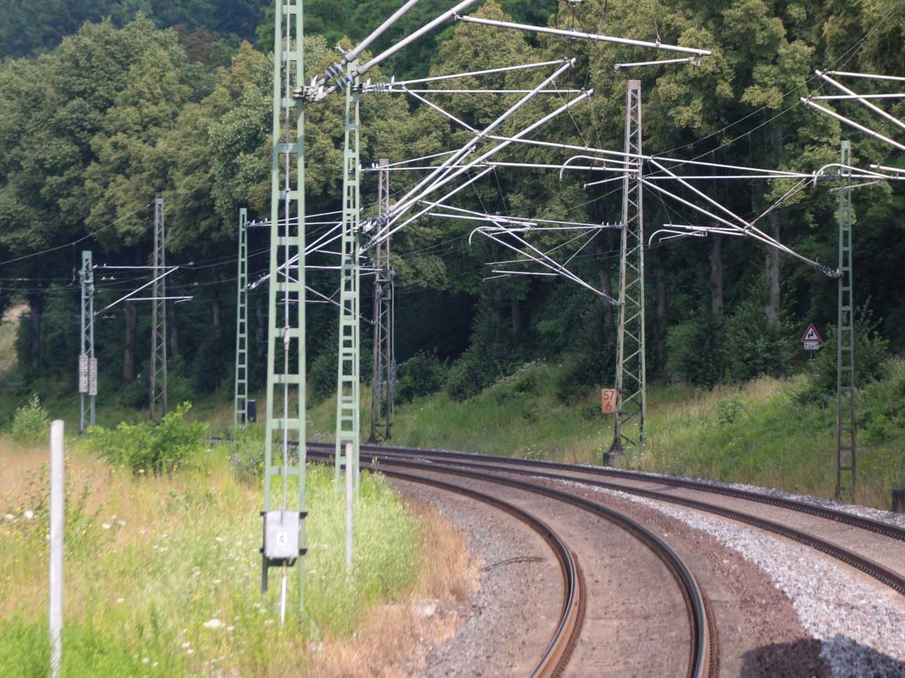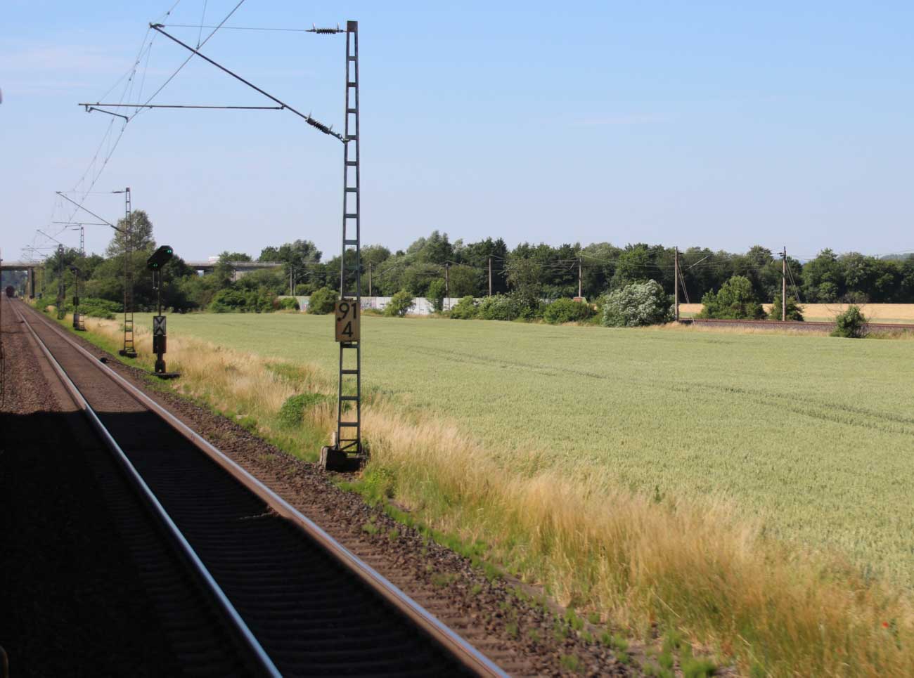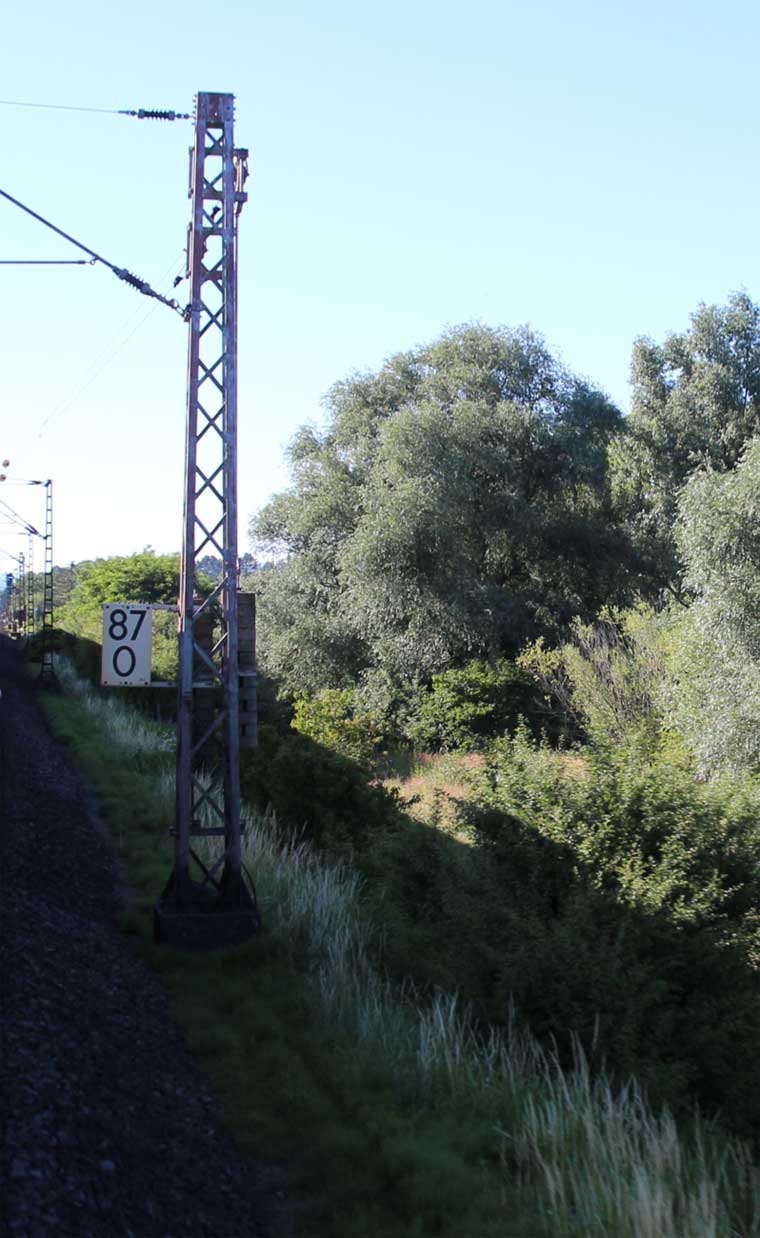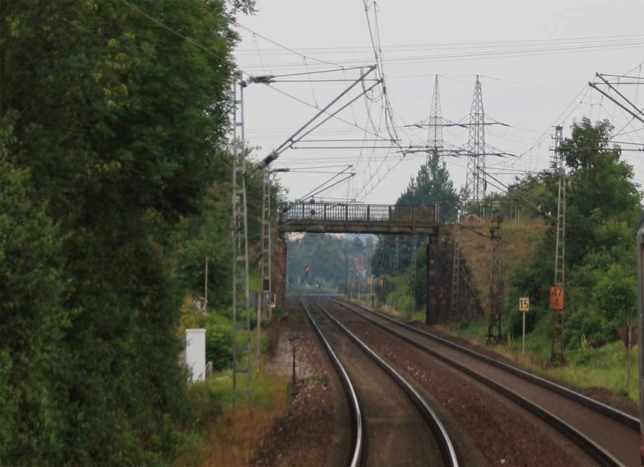 km 1,2 (rechts am Oberleitungsmast) gehört zur Strecke