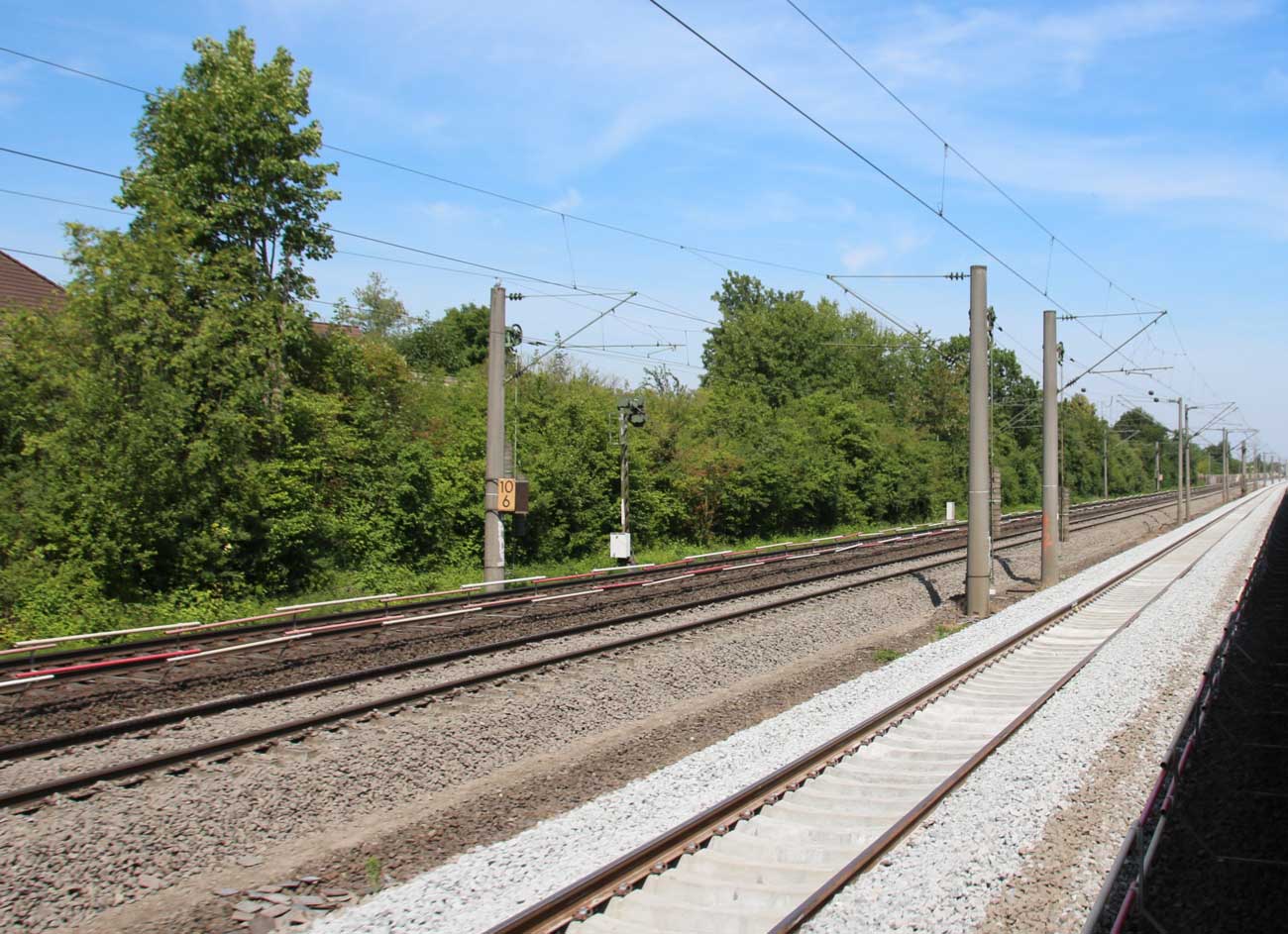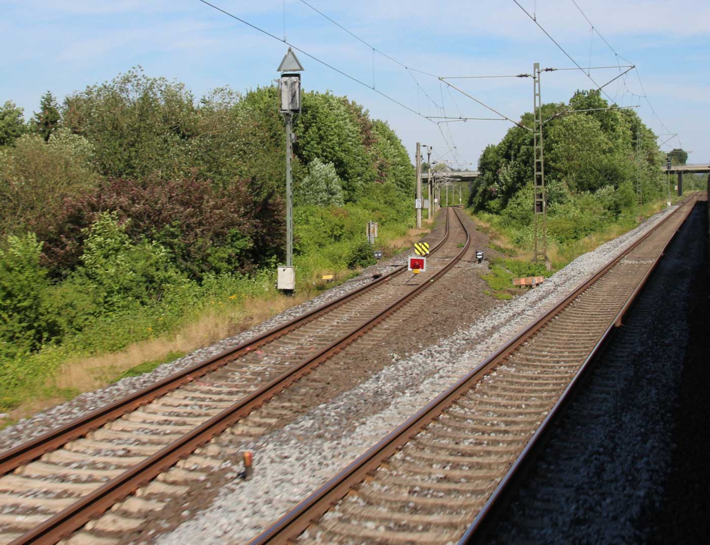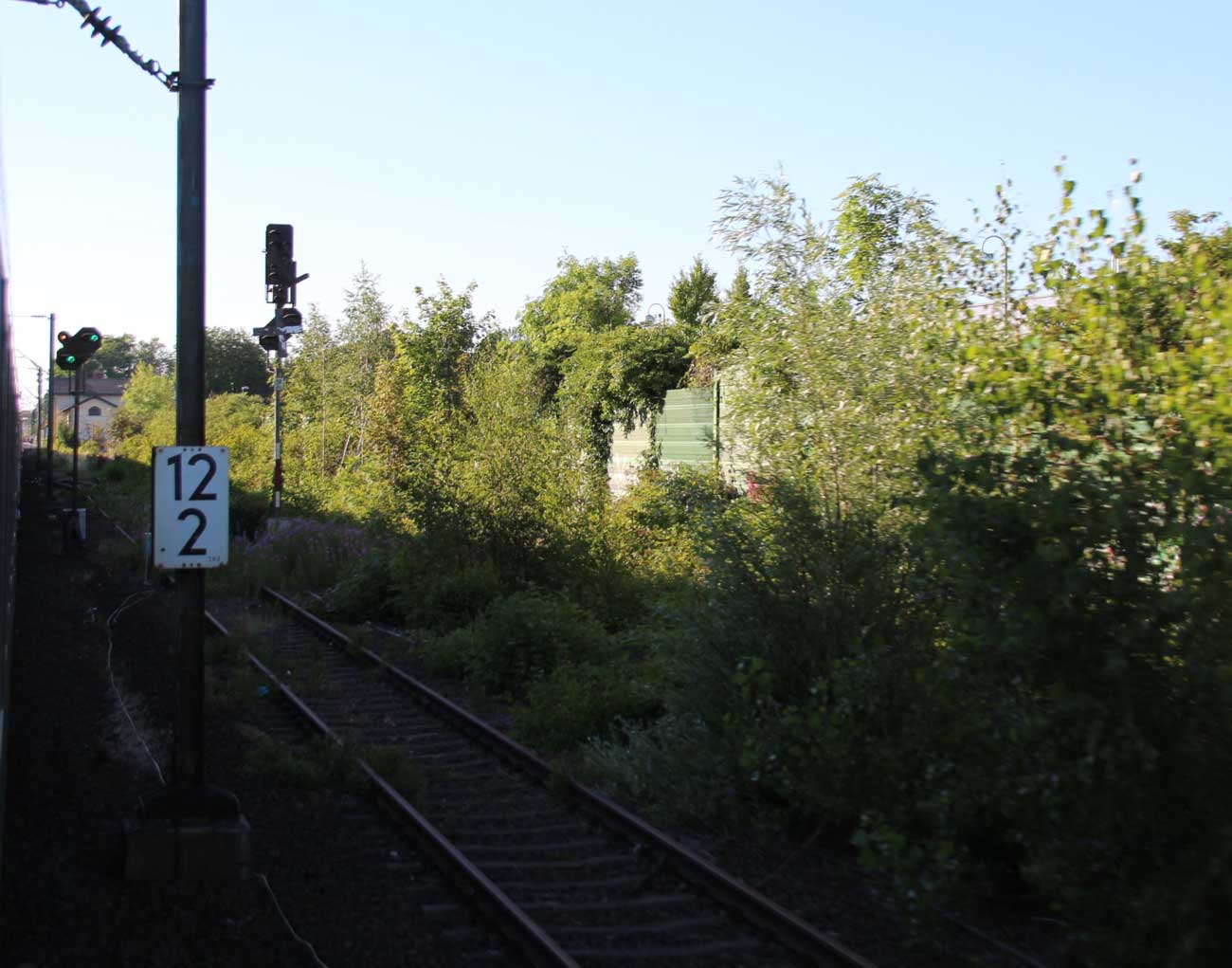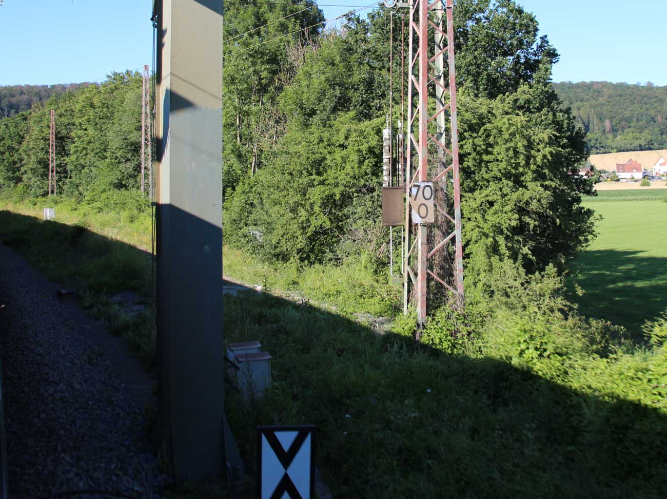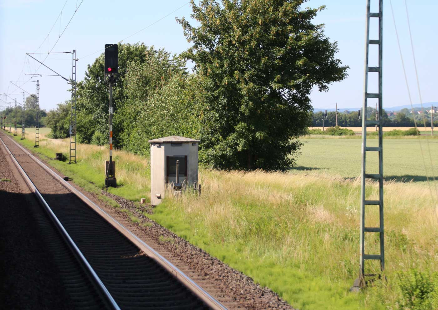 km 1,2 (rechts am Oberleitungsmast) gehört zur Strecke
