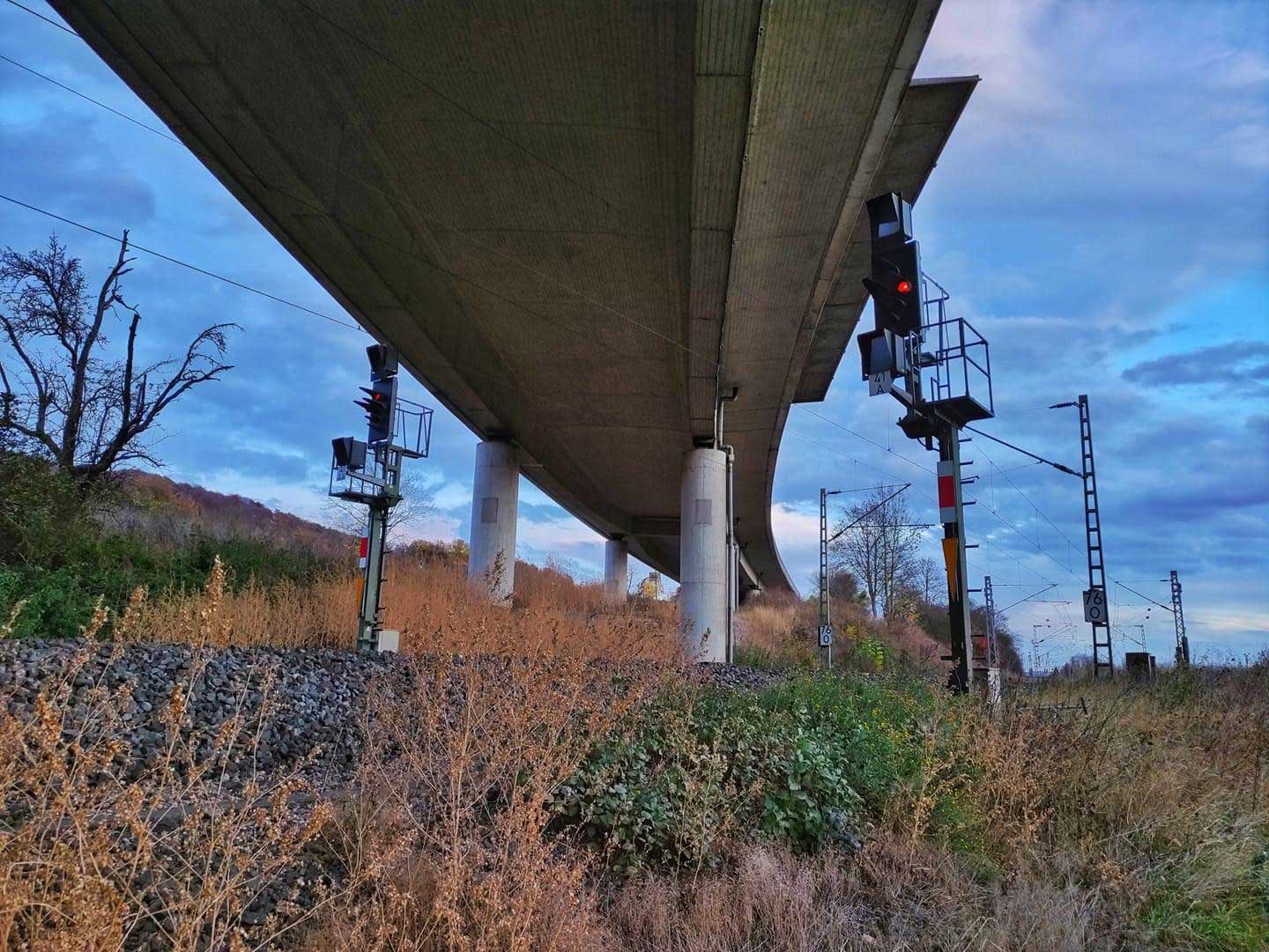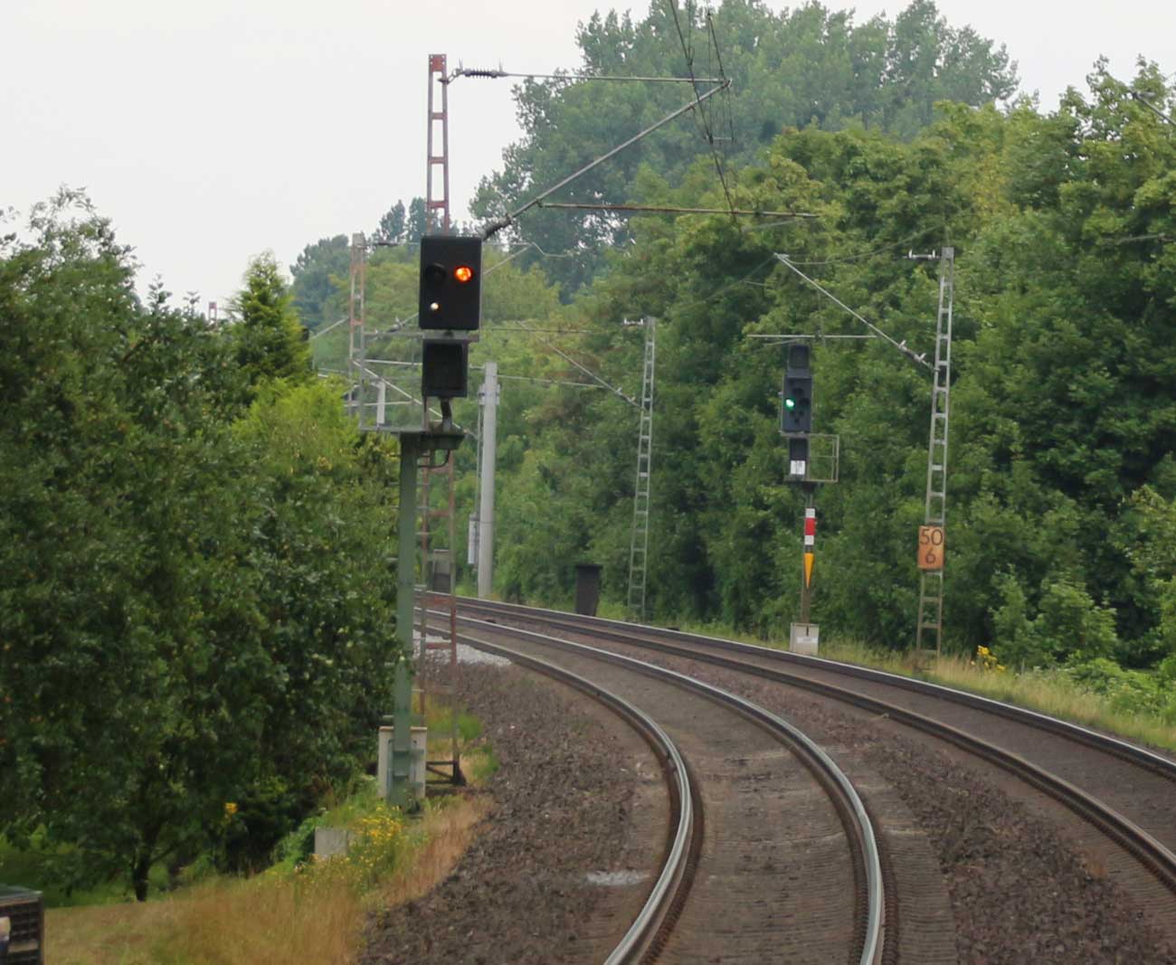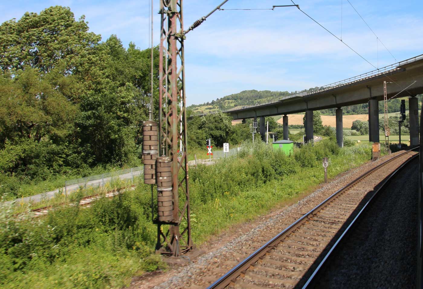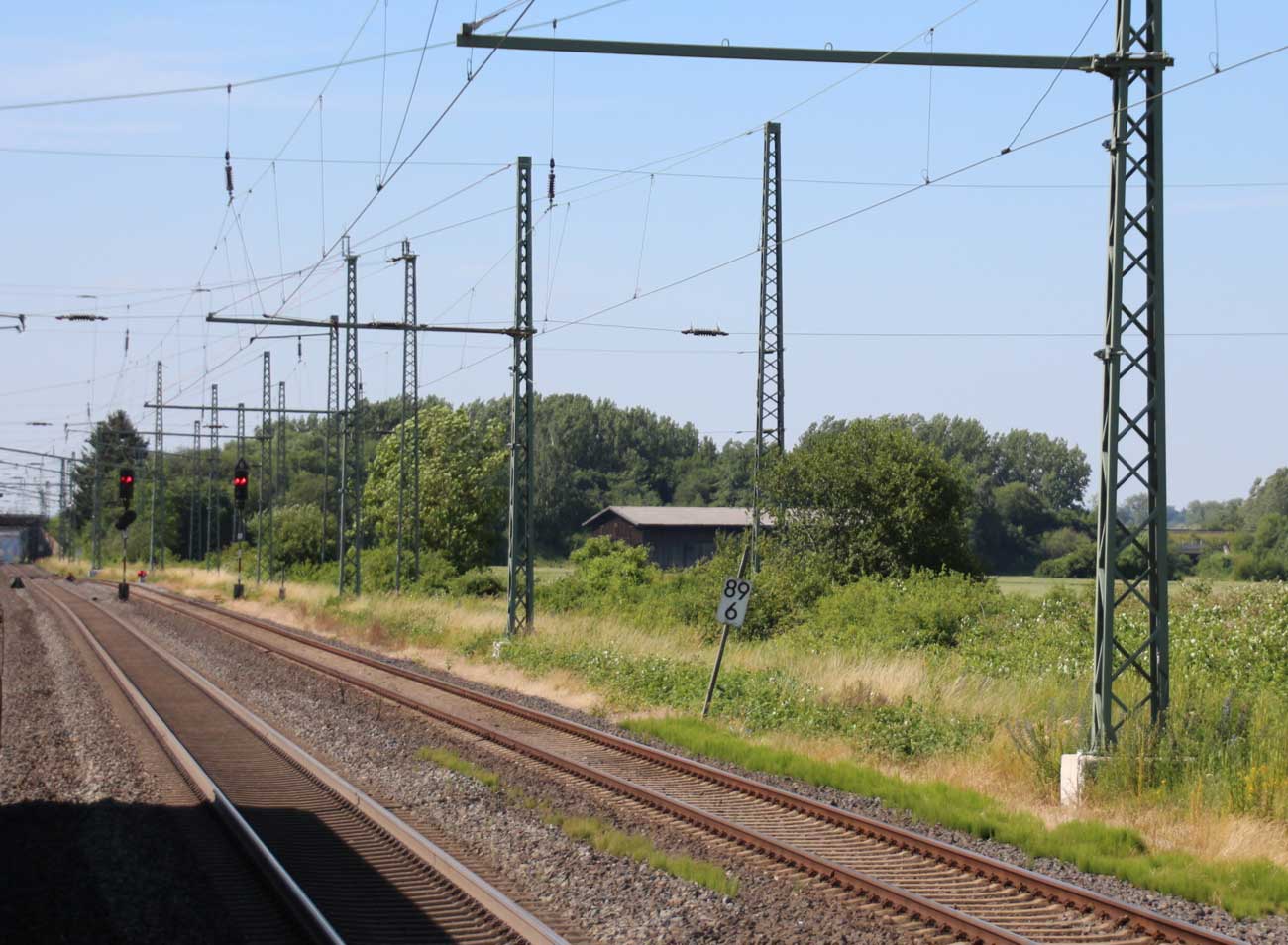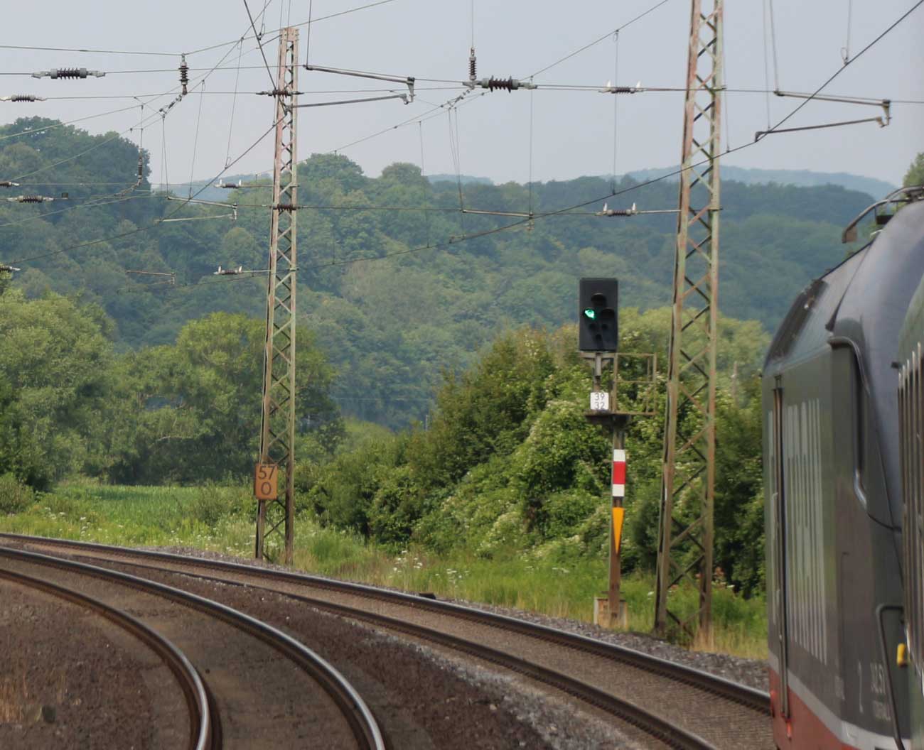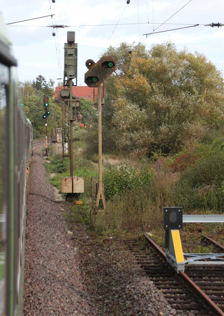 km 1,2 (rechts am Oberleitungsmast) gehört zur Strecke