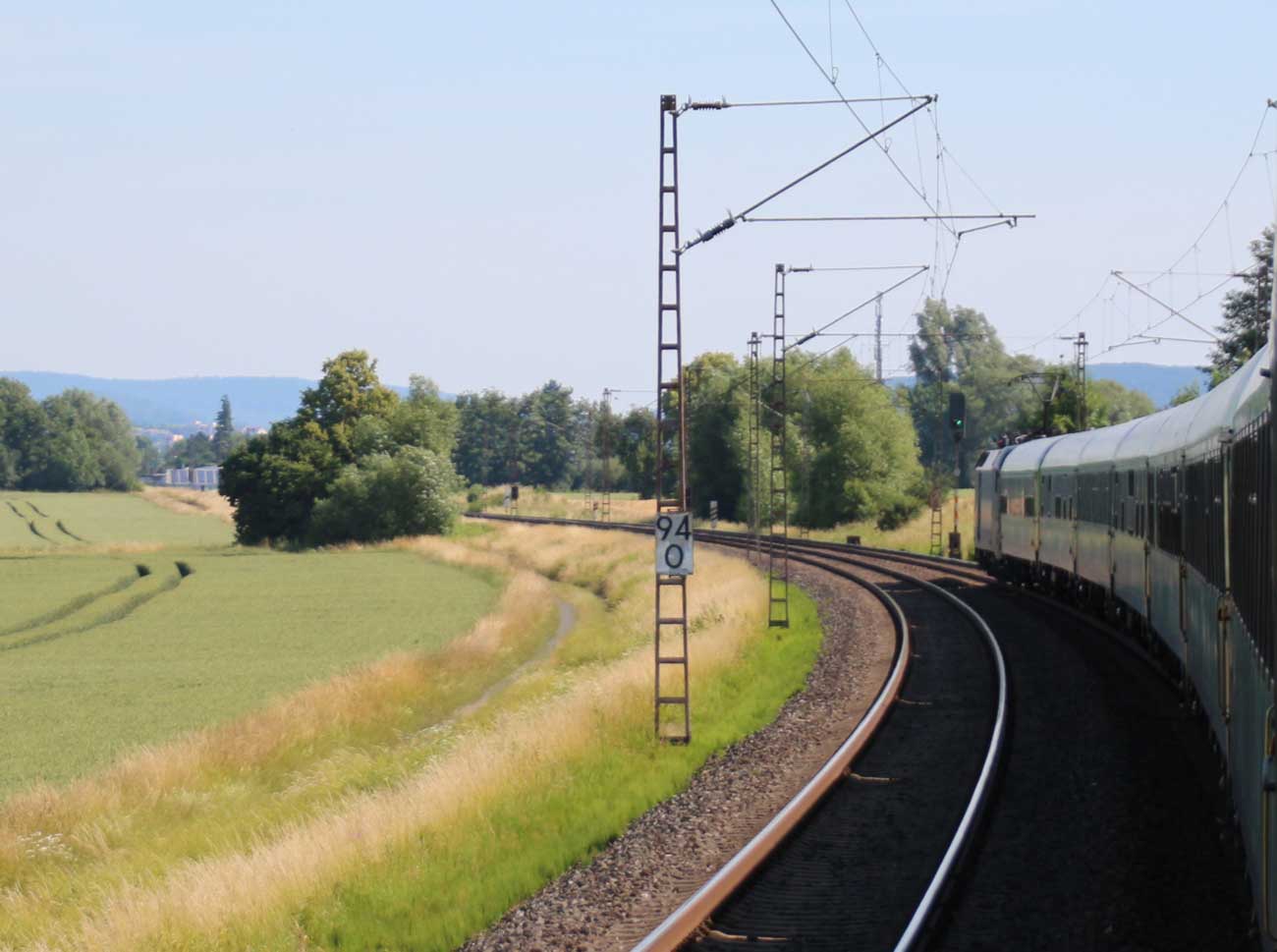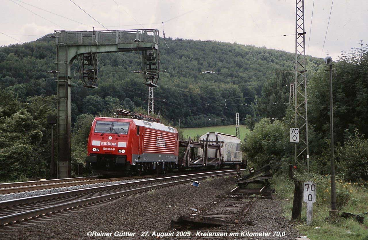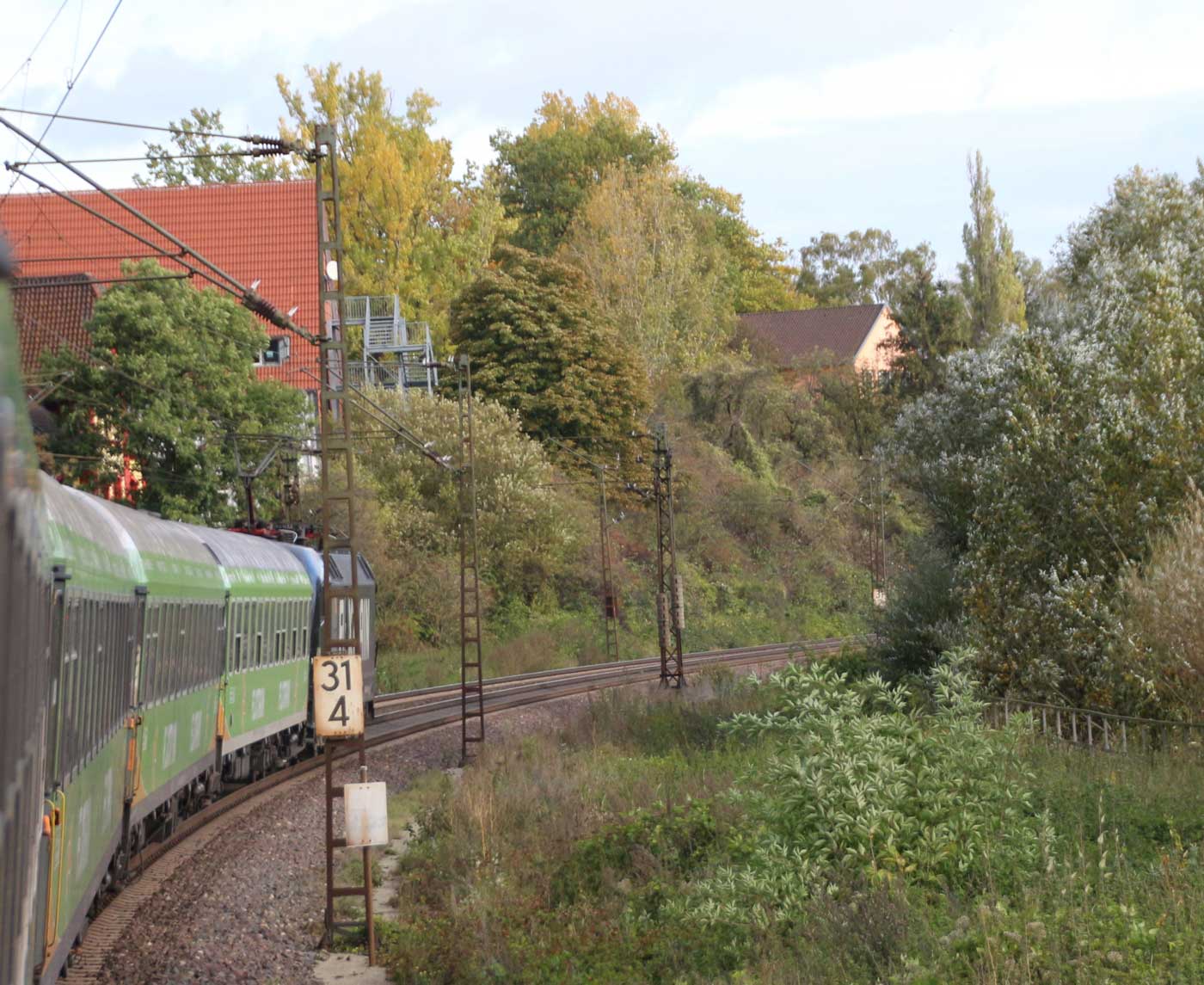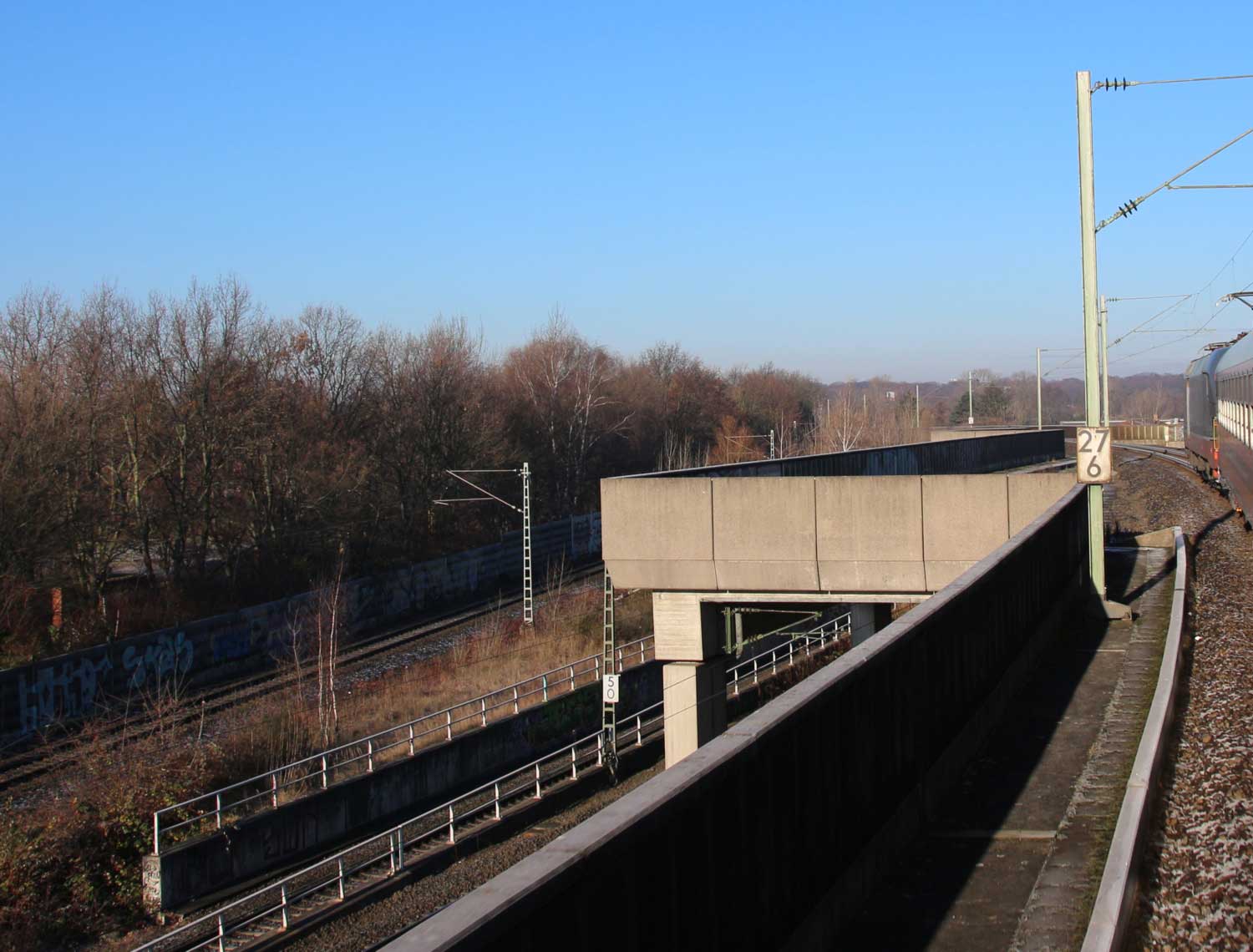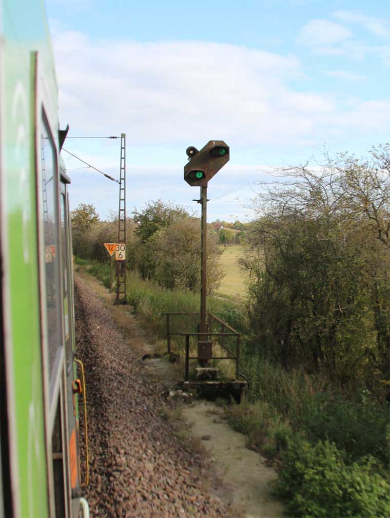 km 1,2 (rechts am Oberleitungsmast) gehört zur Strecke