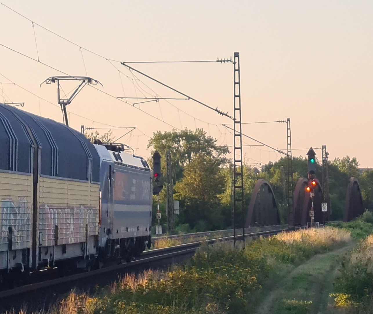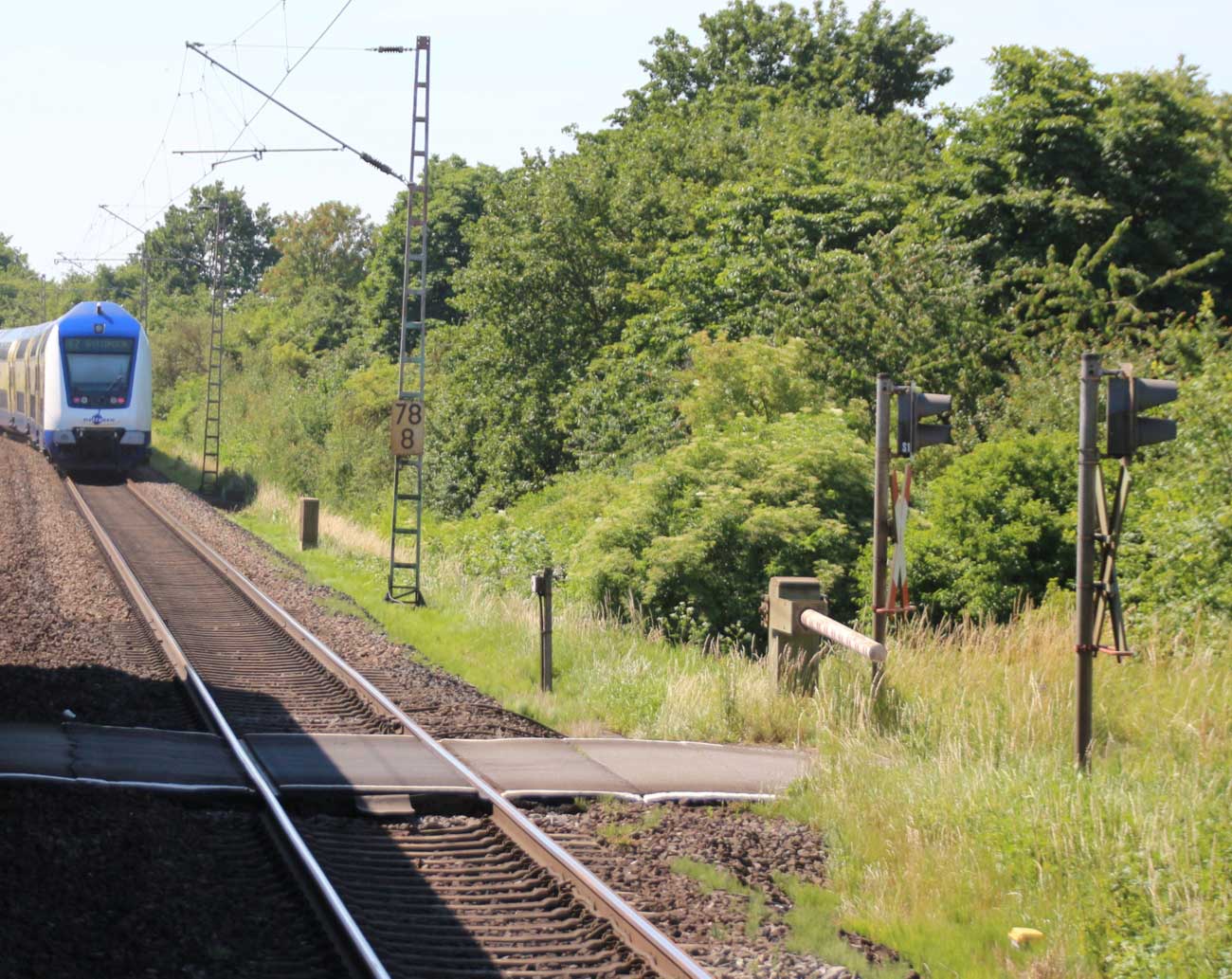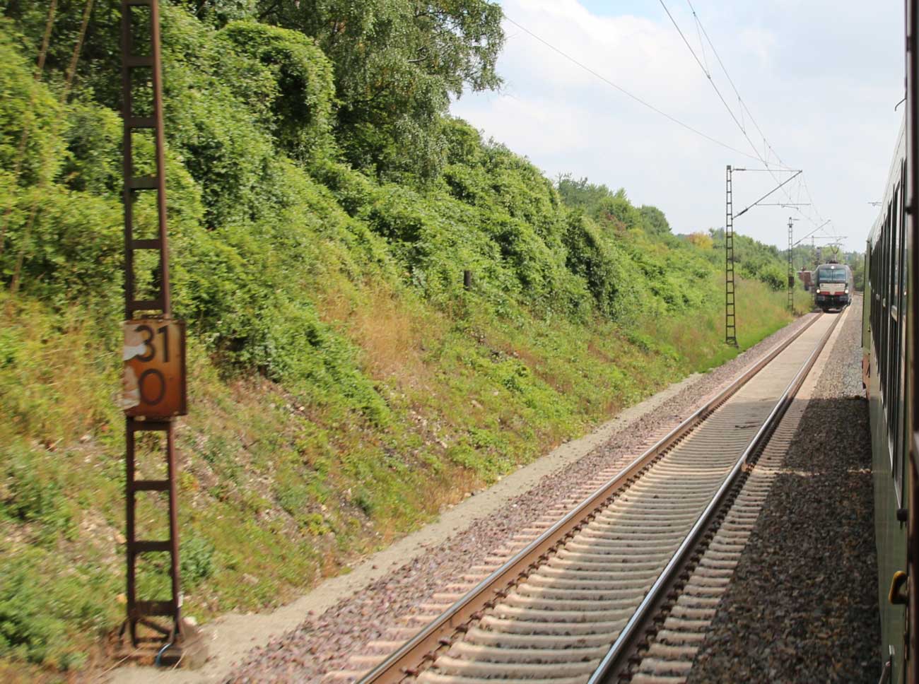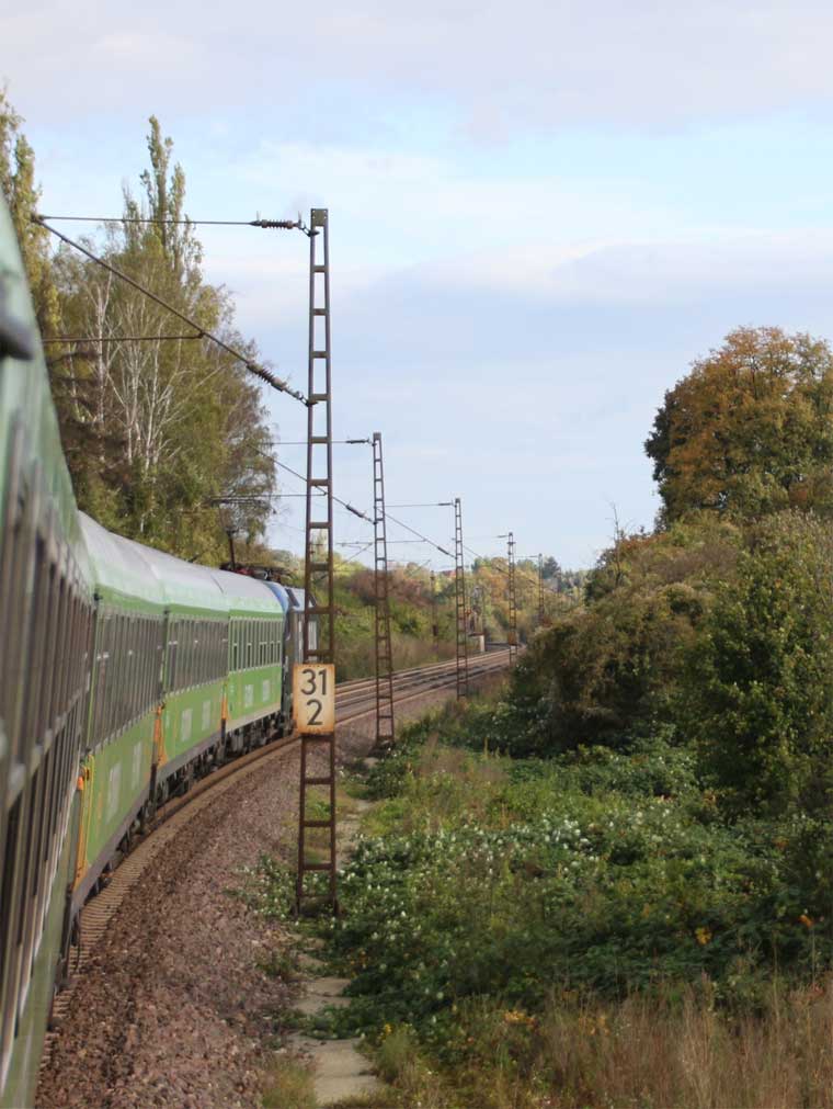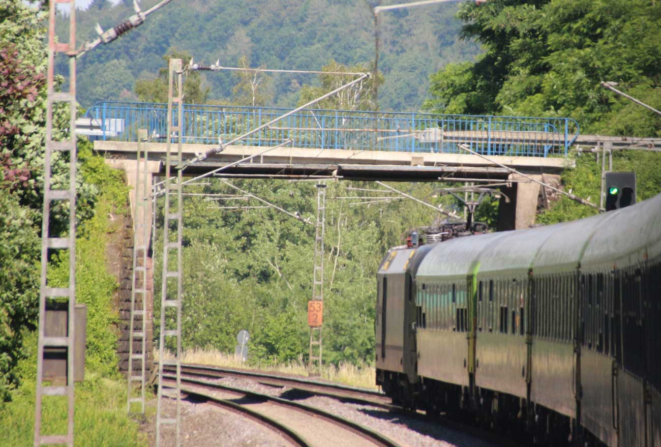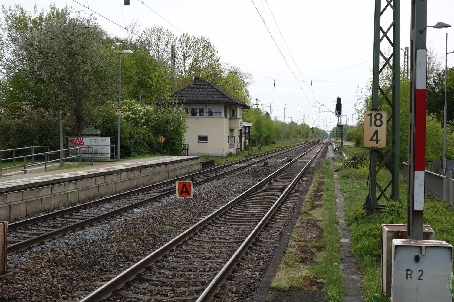km 1,2 (rechts am Oberleitungsmast) gehört zur Strecke