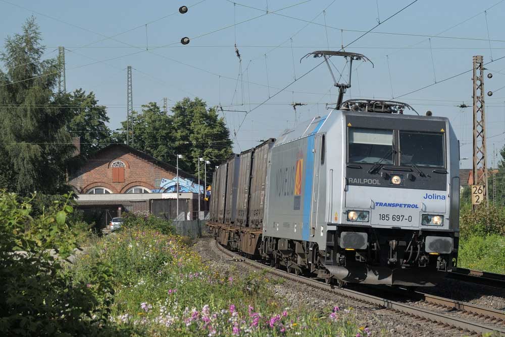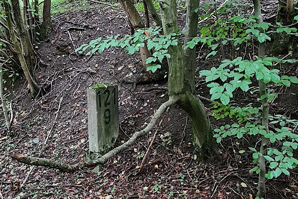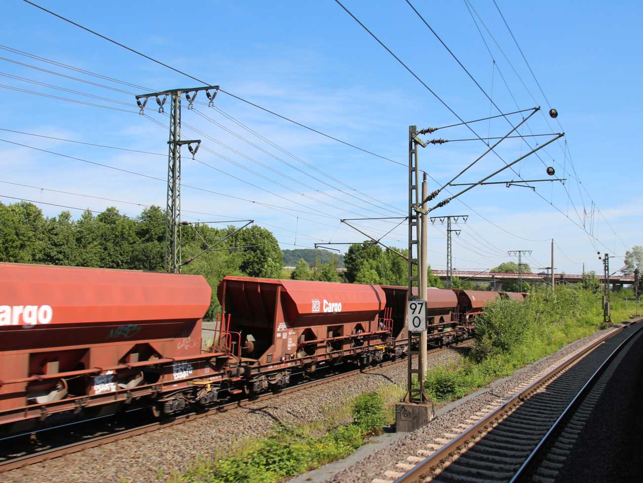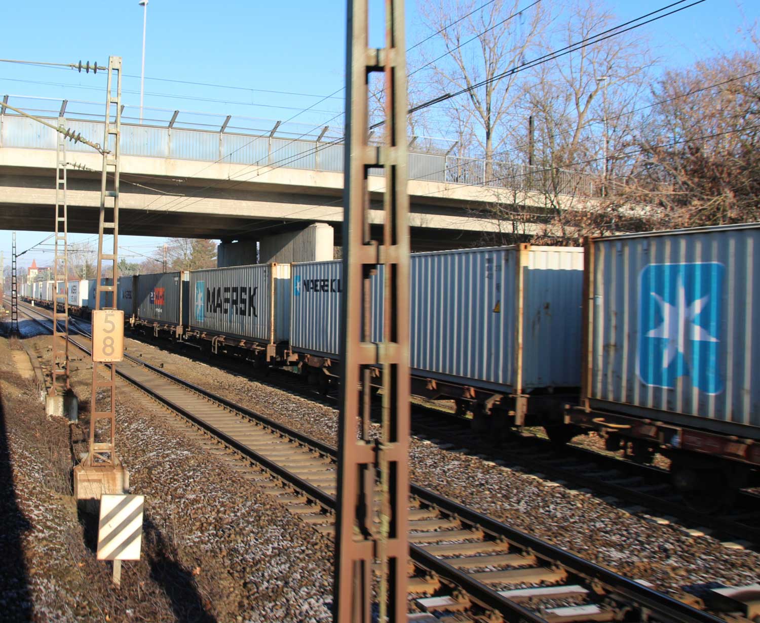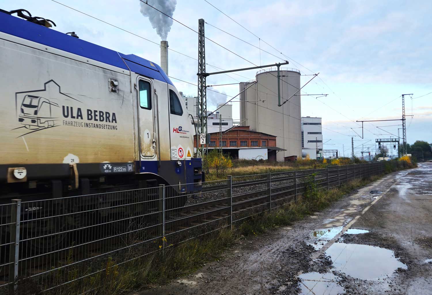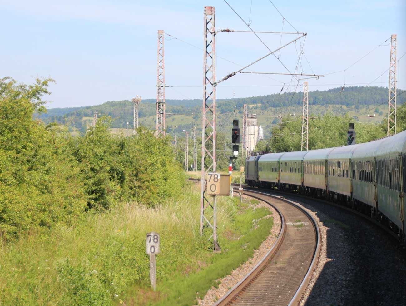 km 1,2 (rechts am Oberleitungsmast) gehört zur Strecke