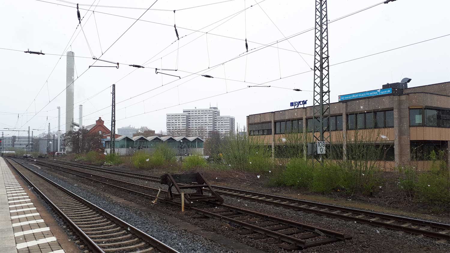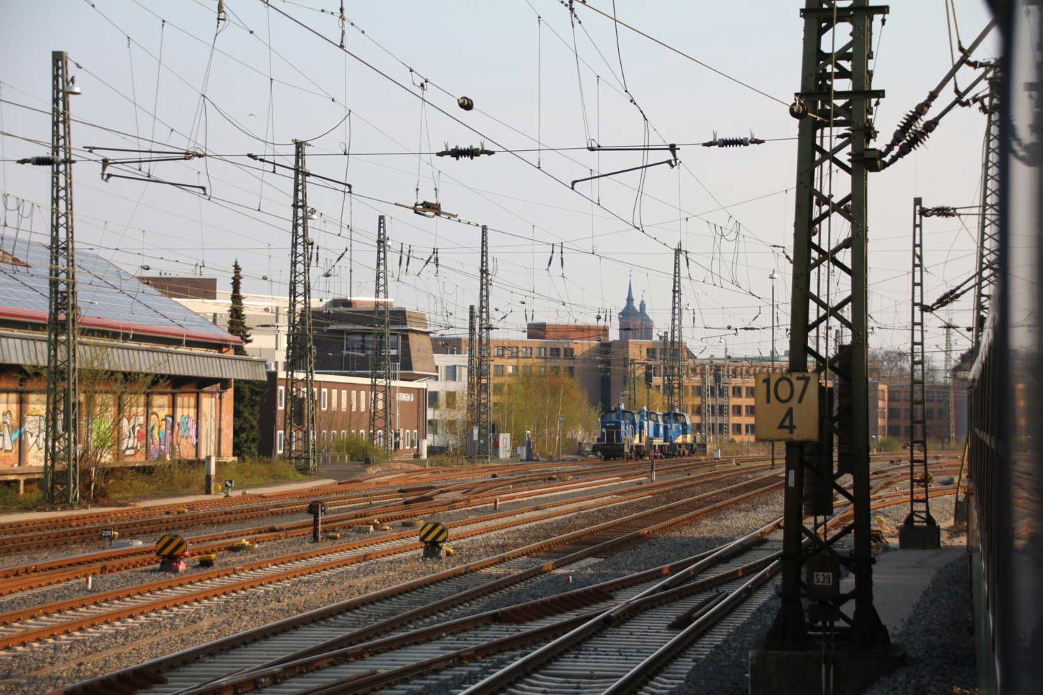 km 1,1 in Hannover Hbf - links im Hintergrund das Bw mit Rundschuppen