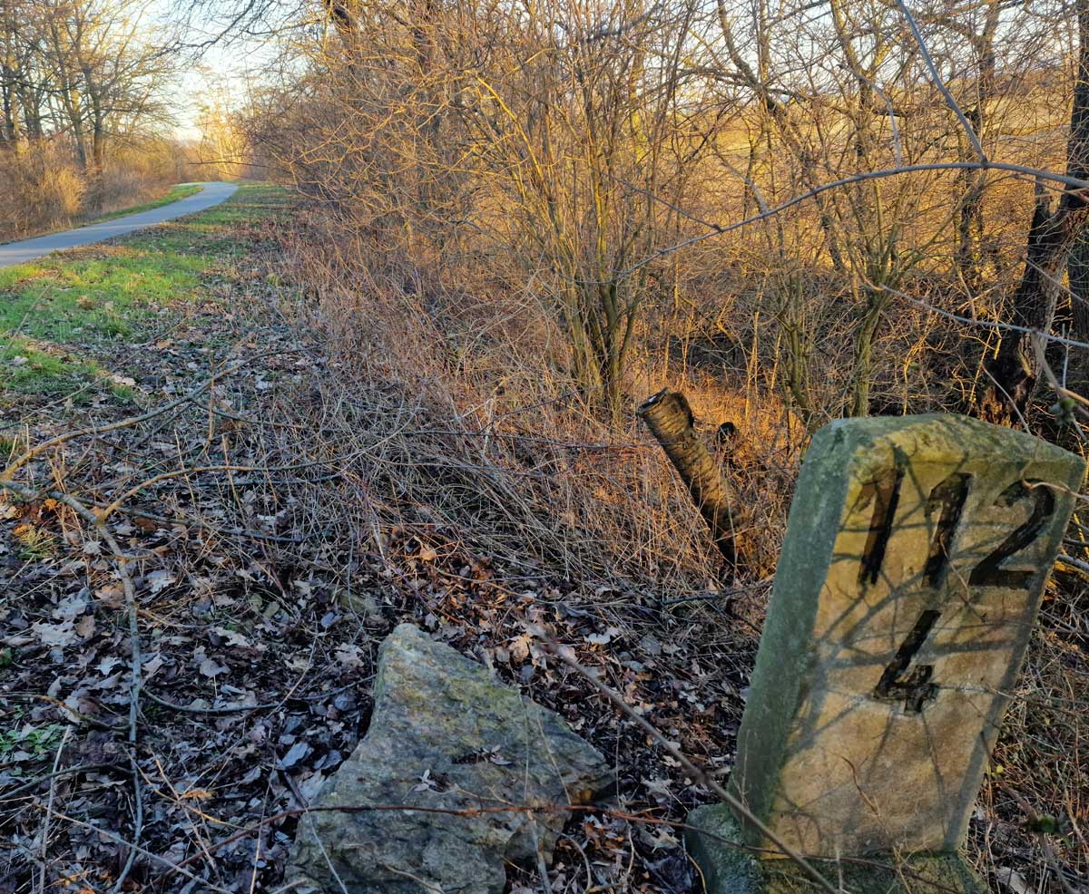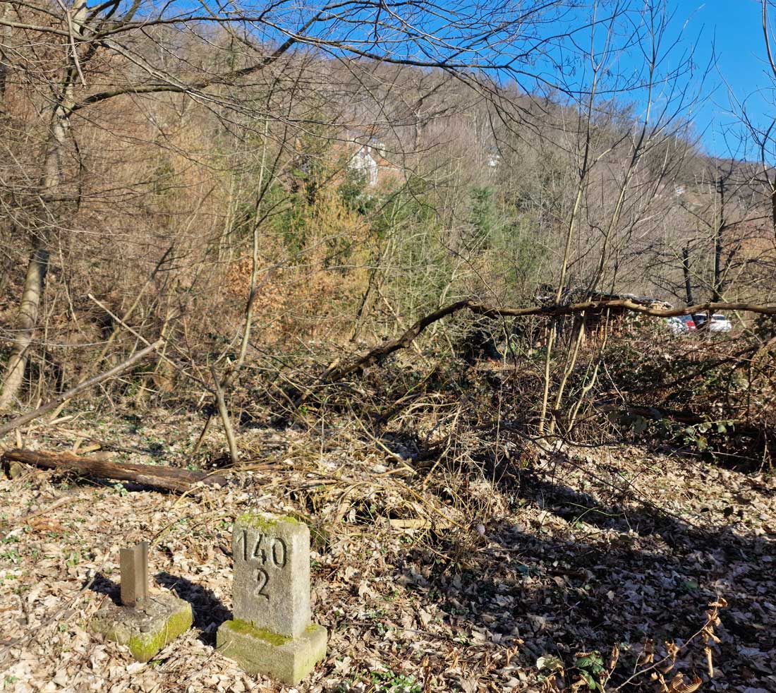 km 142,2 (Stein und Tafel) in Hann. Münden - Blick Richtung Kassel
