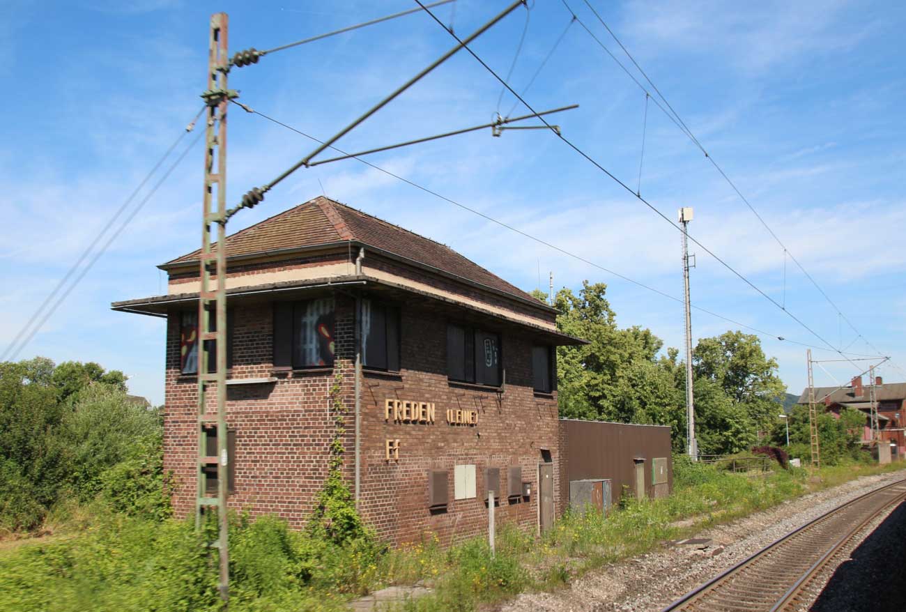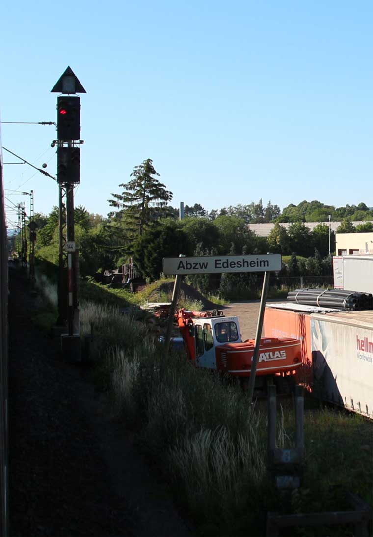 km 0,4 (links) gehört zur Strecke Kassel Hbf - Gießen - Friedberg (Hess) - Frankfurt (Main) West; 1978 verlängert bis Frankfurt (Main) Hbf