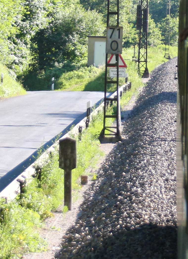 km 1,4 (Tafel links) gehört zur Strecke