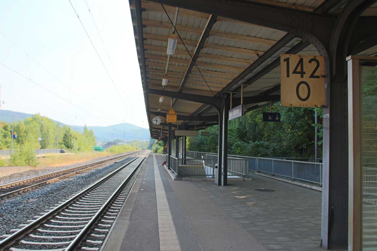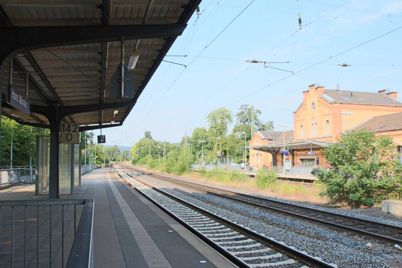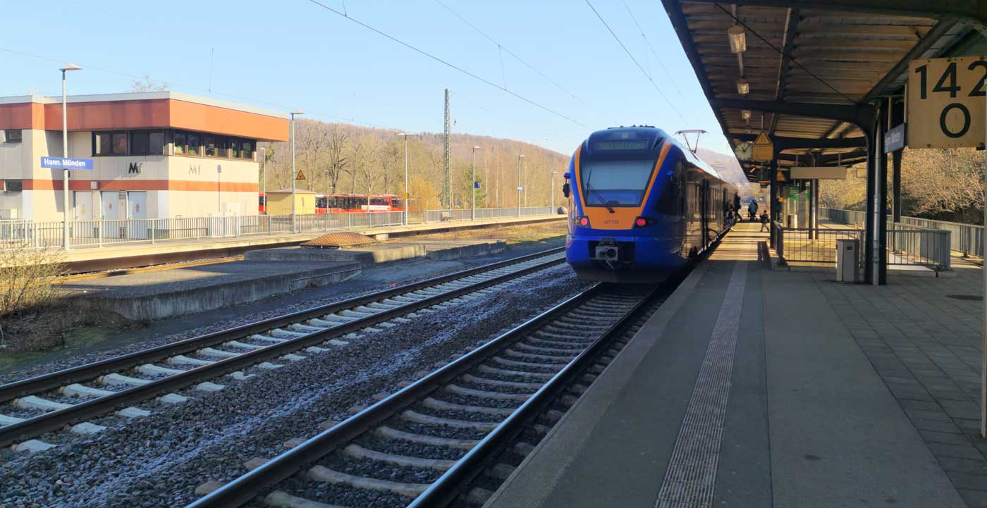 Hannoversch Münden | 142,03 | km 193,54 der Strecke Halle (Saale) Hbf 0,01 - Sangerhausen 59,22 - Nordhausen 97,07 - Eichenberg 170,48 - Hann. Münden 193,54 |
