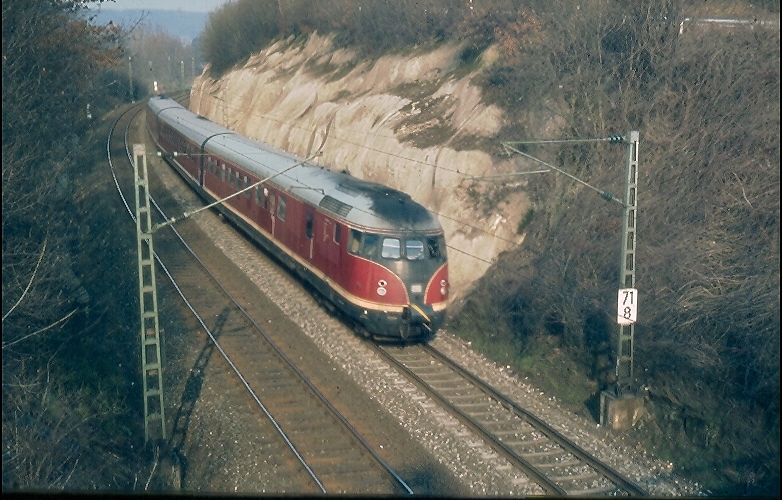 Kassel Hbf 0,0 - Gießen 133,97 - Friedberg (Hess) 166,07 - Frankfurt (Main) West 196,46; 1978 verlängert bis Frankfurt (Main) Hbf 199,79