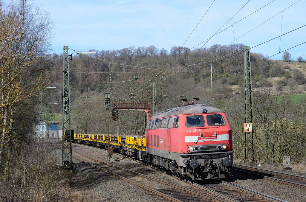 km 111,4 bei Altenbeken - 218 261 mit einem Langschienenzug in Ri Kassel (92860 Duisburg-Wedau - Bebra Rbf)