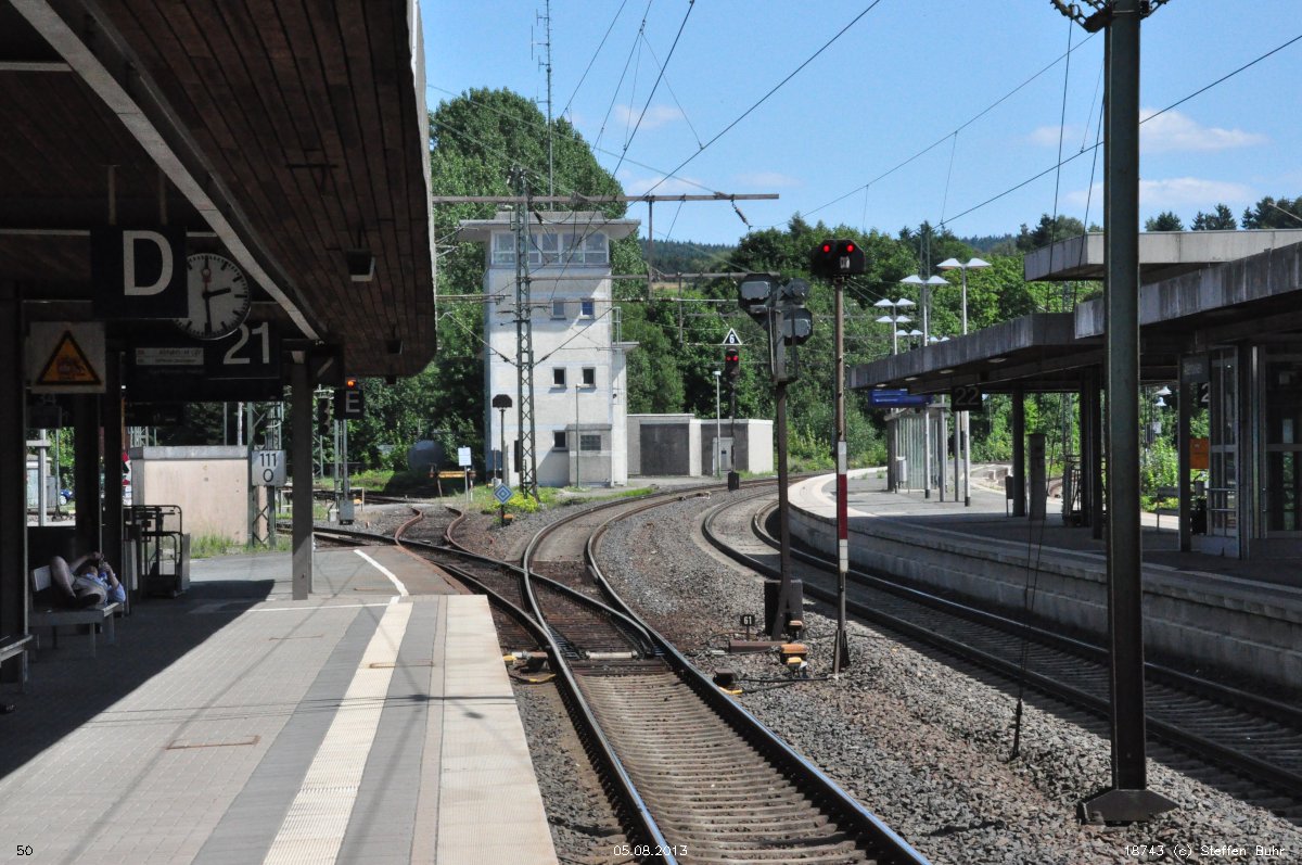 km 0,0 der Strecke [Warburg (Westf) -0,02] - Streckenunterbrechung - Korbach 43,74 - Frankenberg (Eder) 74,93 - Sarnau 100,90 (2972) |