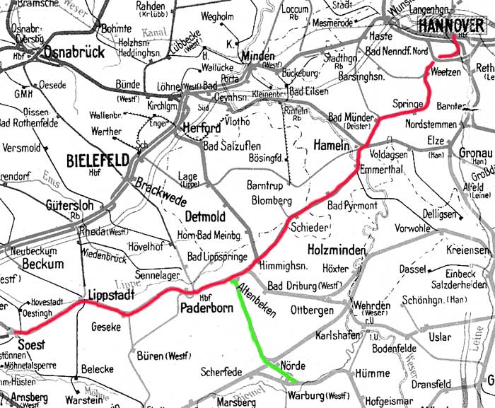 Hannover Hbf - km 2,323 = km 0,0 - Hameln - Altenbeken - Paderborn Hbf - Soest |