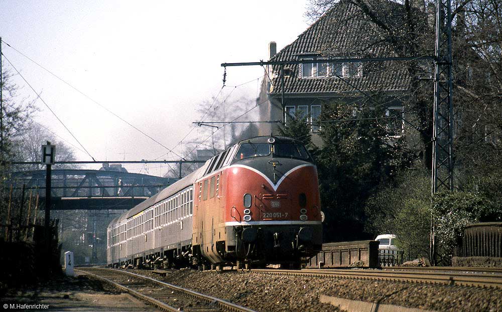 Hannover Hbf | 0,0 | Hannover Hbf 0,0 - Wunstorf 21,40 - Bremen Hbf 122,28 - Wesermünde-Wulsdorf (heute: Bremerhaven-Wulsdorf) 180,88 - Speckenbüttel (heute: Bremerhaven-SpeckenbütteI) 190,39 - Cuxhaven Stadt 228,35 |