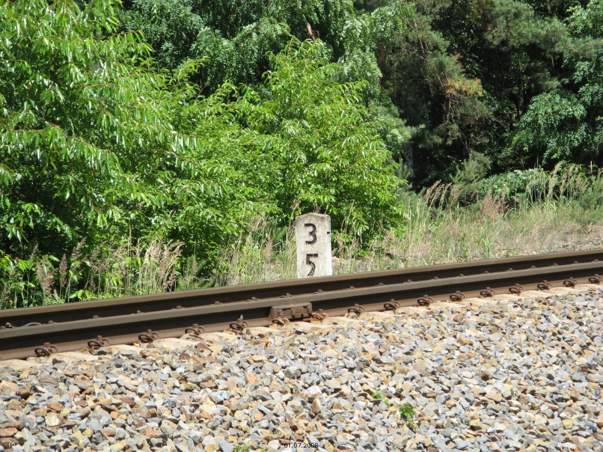 ► | km 36,114 der abgehenden Strecke Knappenrode 0,0 - Weißkolm 3,669 - Abzw Spreewitz Süd 9,67 - Sabrodt 22,454 - Abzw Sornoer Buden Ost 36,114 - Abzw Sornoer Buden West 37,546 mit weiterlaufender Kilometrierung | |