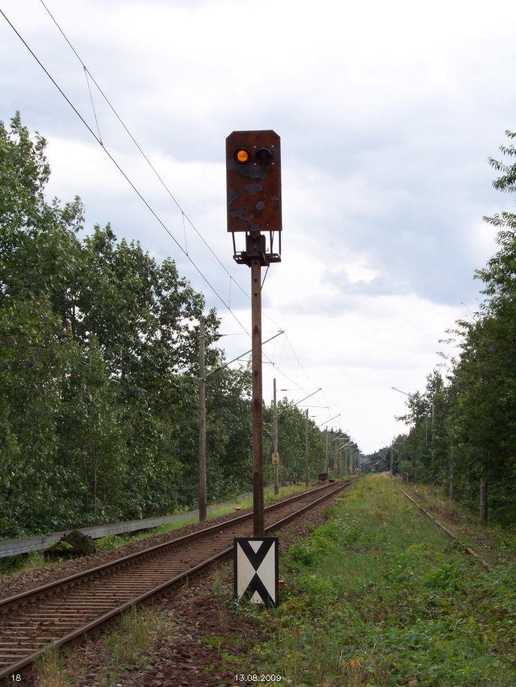 ► | km 9,68 der abgehenden Strecke Knappenrode 0,0 - Weißkolm 3,669 - Abzw Spreewitz Süd 9,68 - Sabrodt 22,454 - Abzw Sornoer Buden Ost 36,114 - Abzw Sornoer Buden West 37,582 mit weiterlaufender Kilometrierung | |