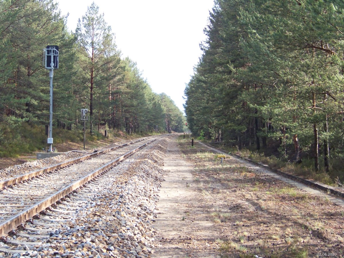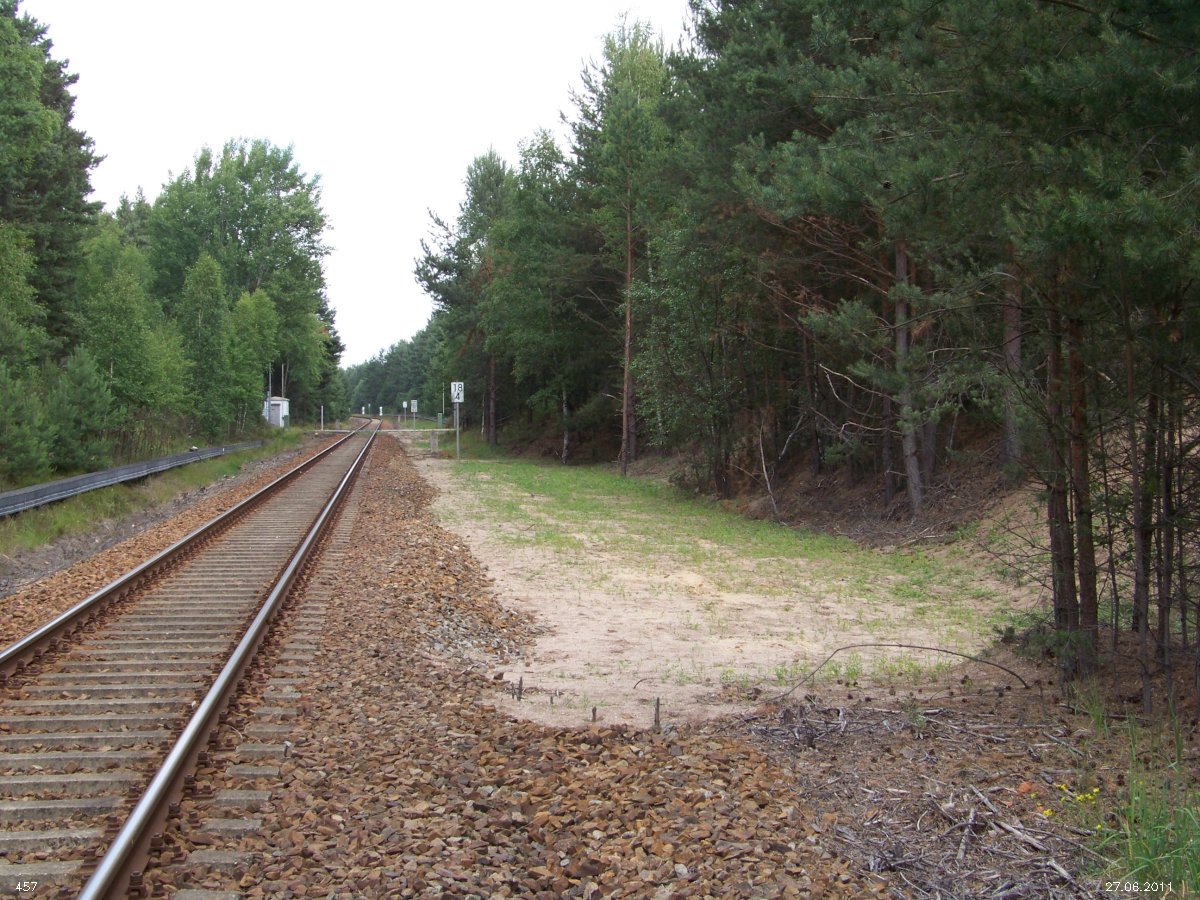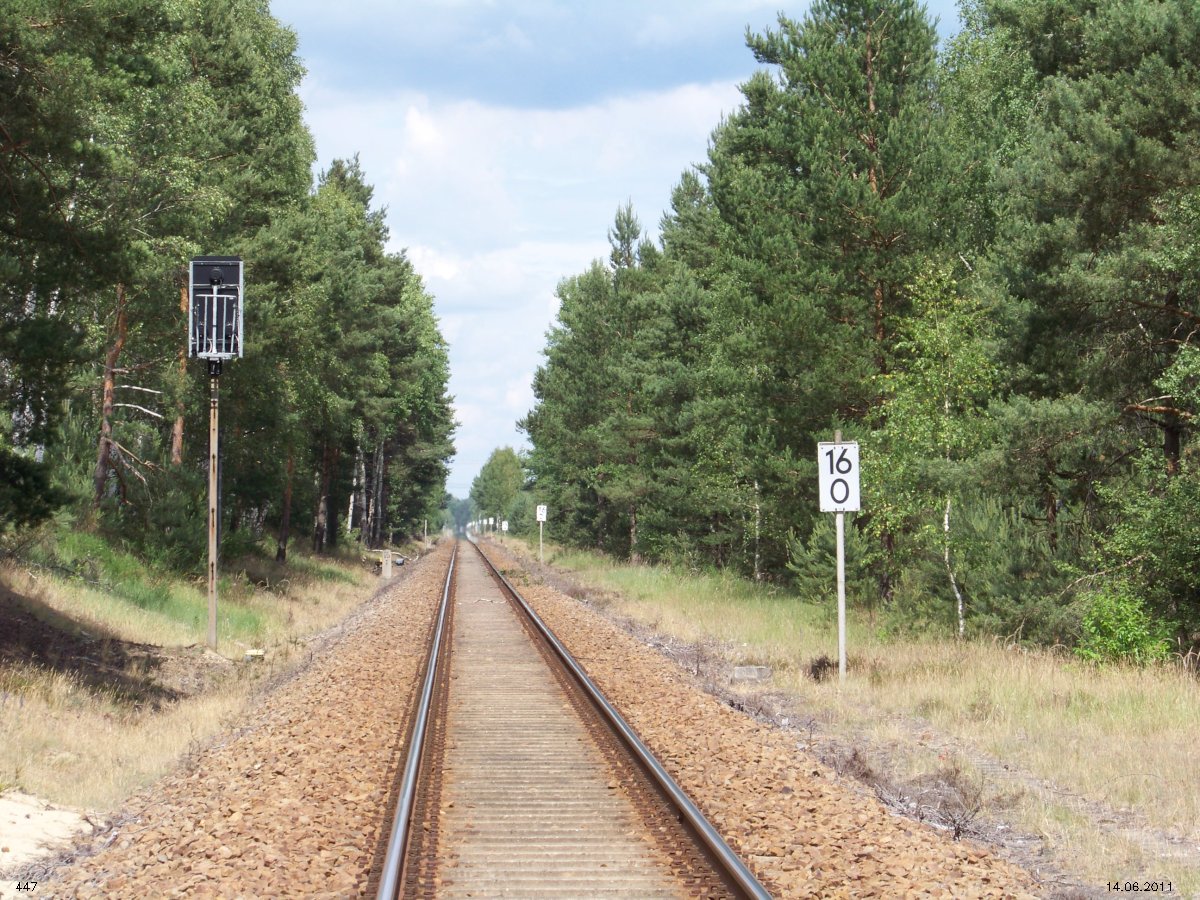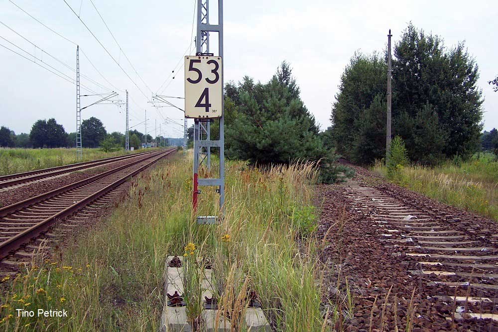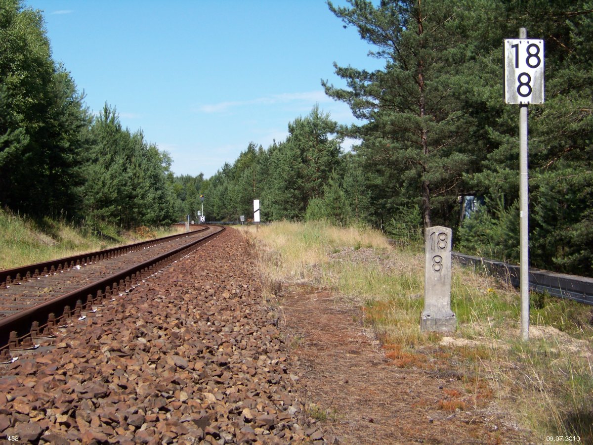 km 53,00 der Strecke Großenhain Cottb. Bf 0,0 - Senftenberg 45,29 - Cottbus 80,00 - Peitz 94,81 - Streckenunterbrechung - Grunow (Niederlausitz) 129,27 - Frankfurt (Oder) 152,78 |