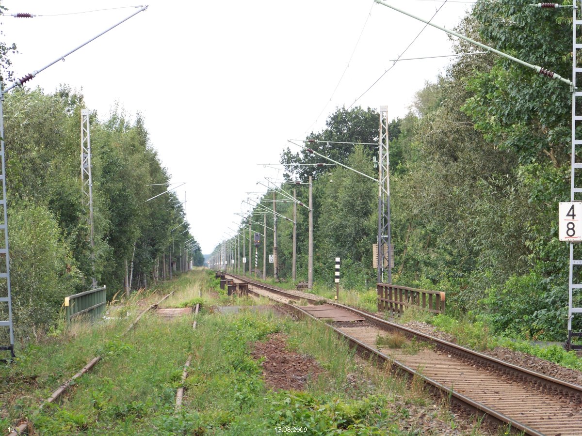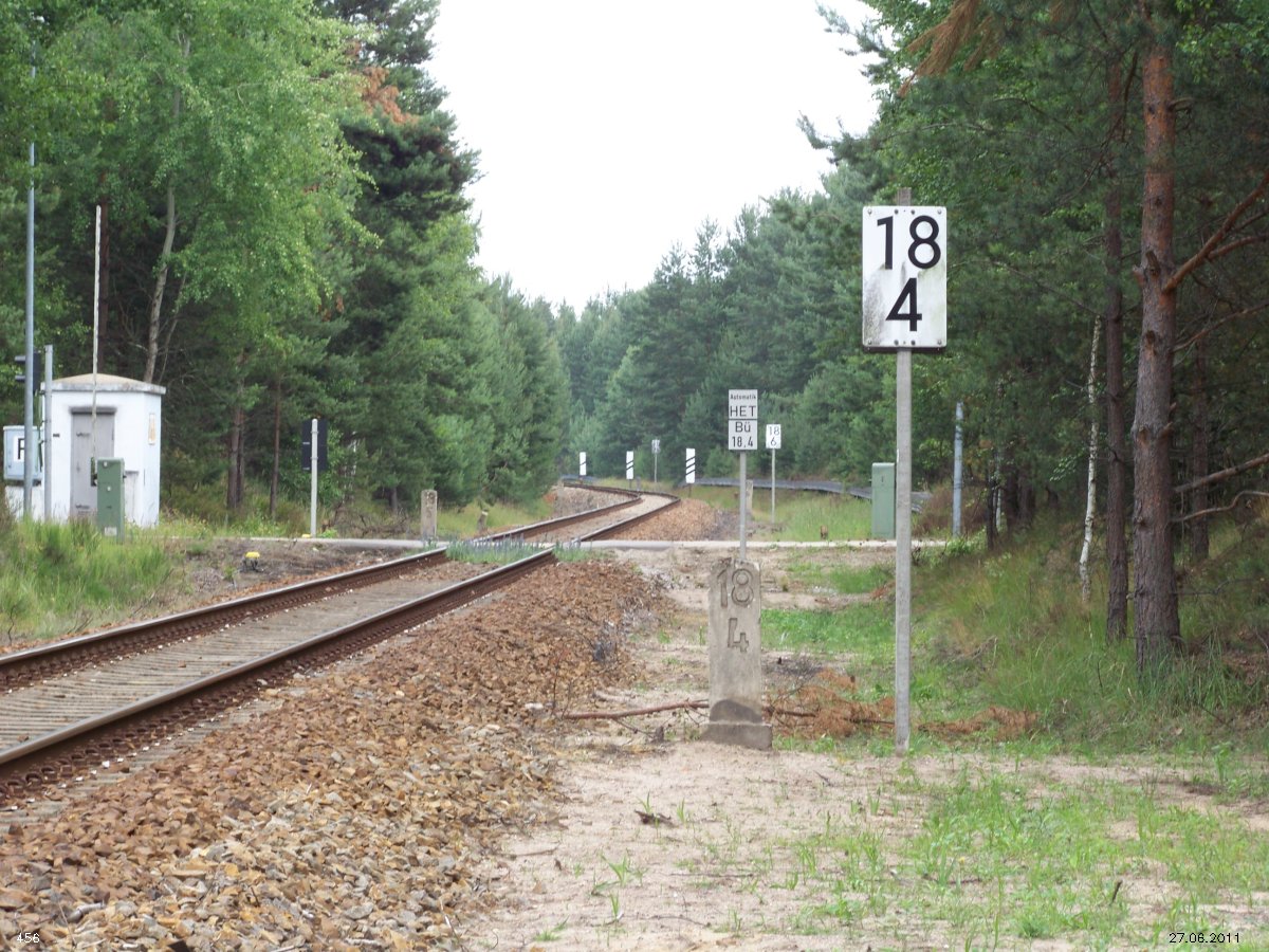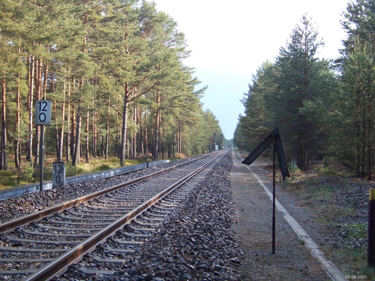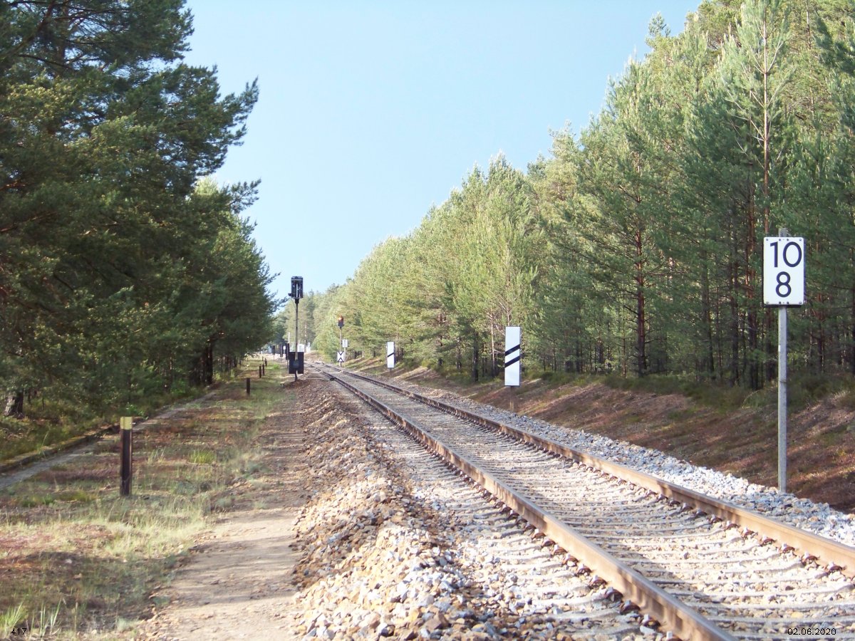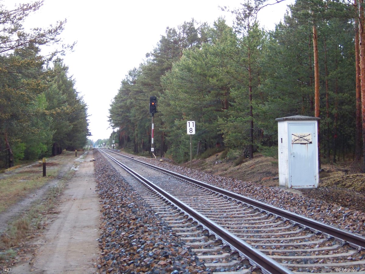 km 53,00 der Strecke Großenhain Cottb. Bf 0,0 - Senftenberg 45,29 - Cottbus 80,00 - Peitz 94,81 - Streckenunterbrechung - Grunow (Niederlausitz) 129,27 - Frankfurt (Oder) 152,78 |