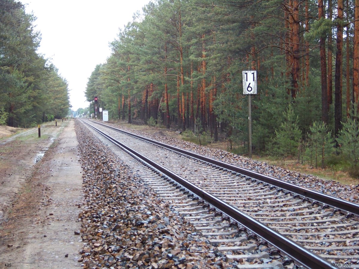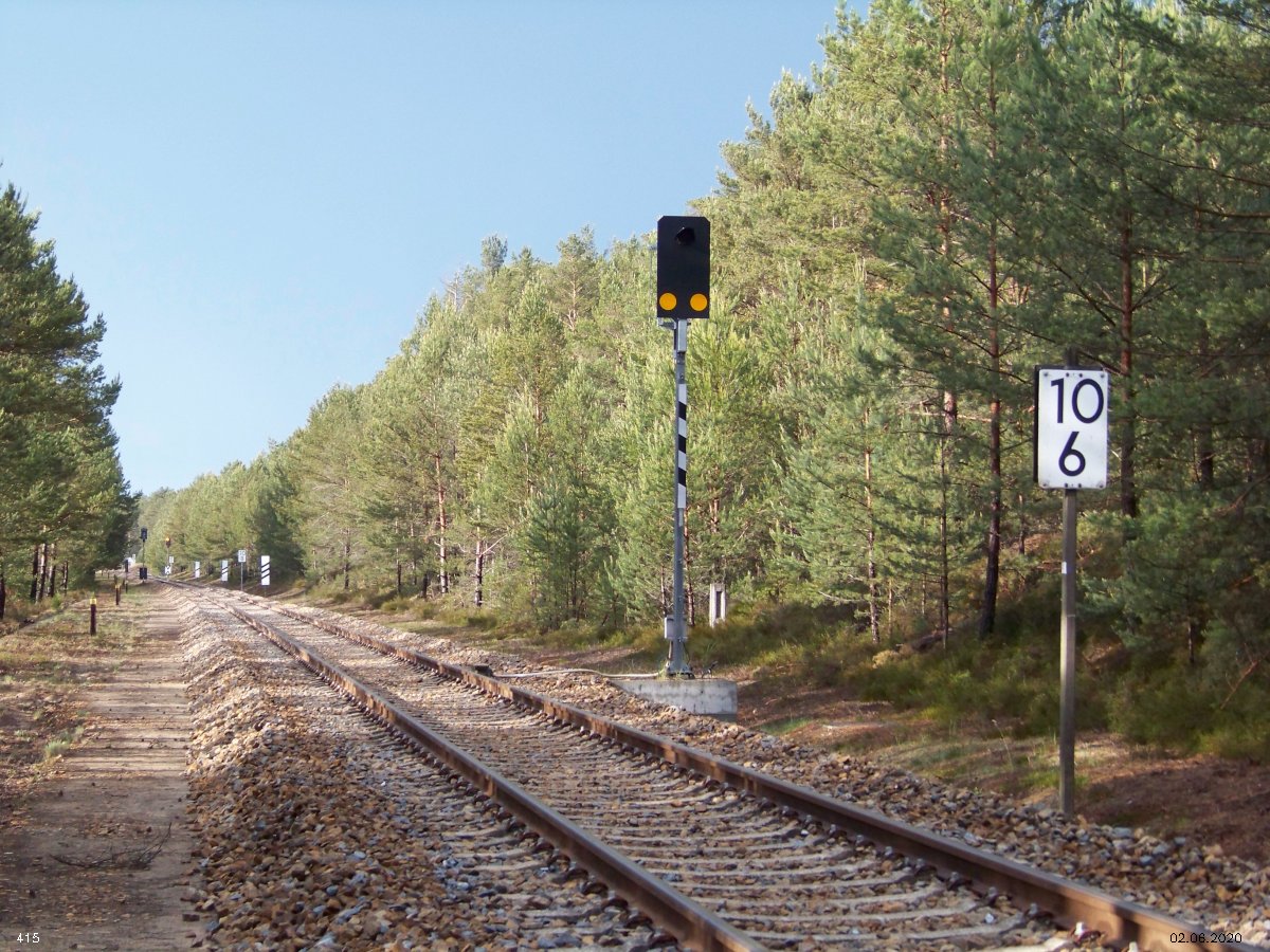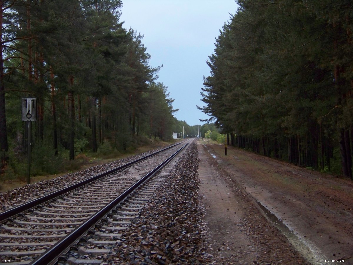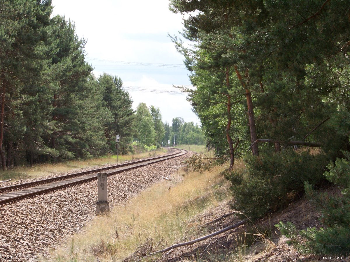 km 53,00 der Strecke Großenhain Cottb. Bf 0,0 - Senftenberg 45,29 - Cottbus 80,00 - Peitz 94,81 - Streckenunterbrechung - Grunow (Niederlausitz) 129,27 - Frankfurt (Oder) 152,78 |