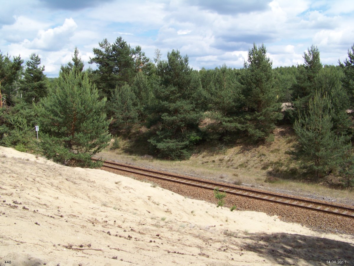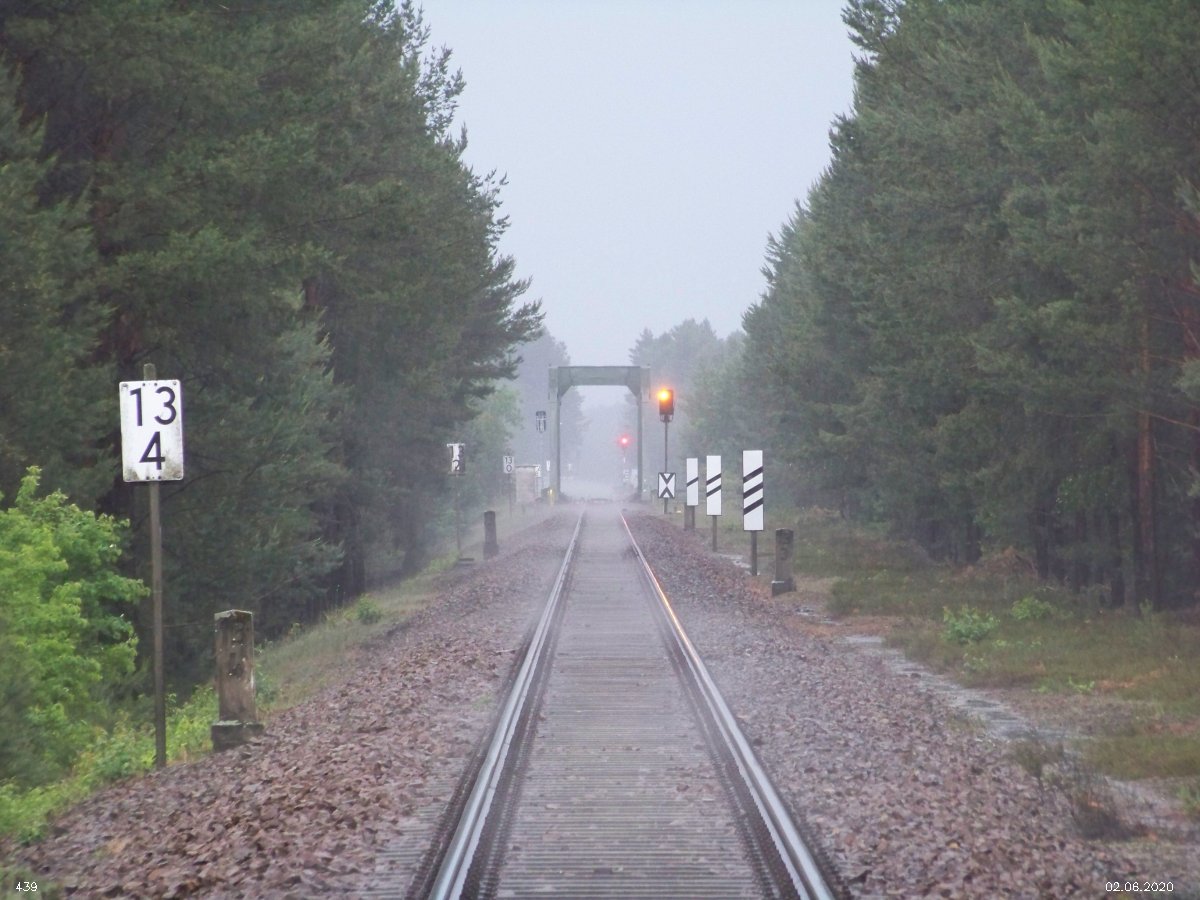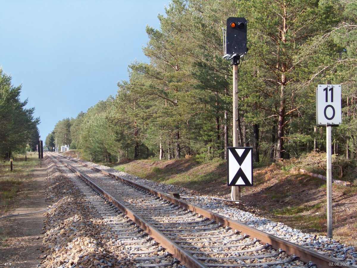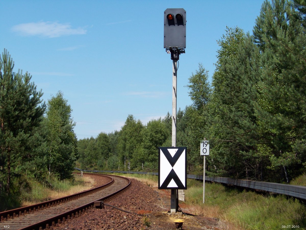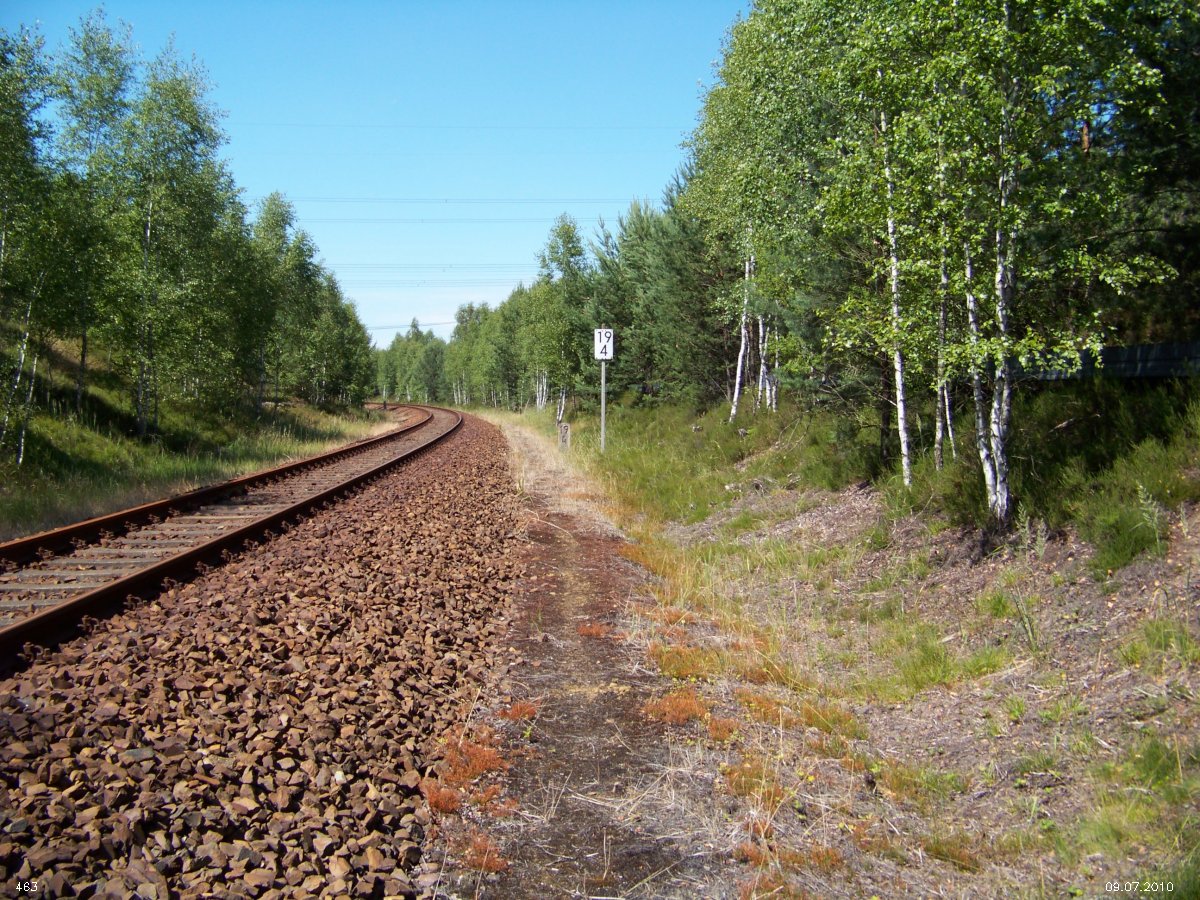 km 53,00 der Strecke Großenhain Cottb. Bf 0,0 - Senftenberg 45,29 - Cottbus 80,00 - Peitz 94,81 - Streckenunterbrechung - Grunow (Niederlausitz) 129,27 - Frankfurt (Oder) 152,78 |