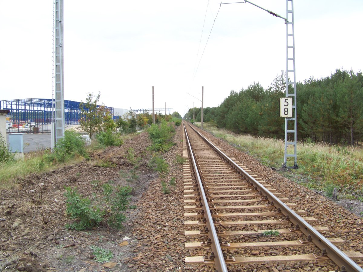 ► | km 9,67 der abgehenden Strecke Knappenrode 0,0 - Weißkolm 3,669 - Abzw Spreewitz Süd 9,67 - Sabrodt 22,454 - Abzw Sornoer Buden Ost 36,114 - Abzw Sornoer Buden West 37,546 mit weiterlaufender Kilometrierung | |