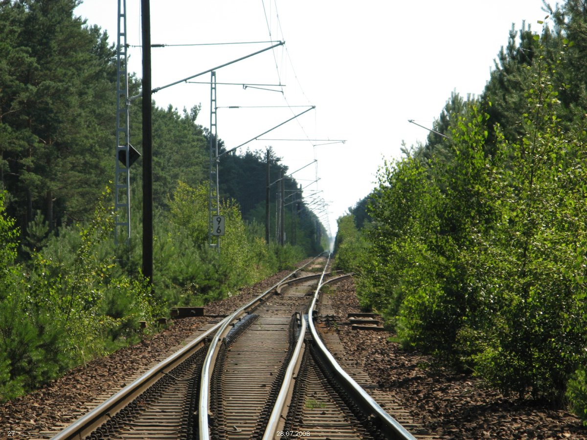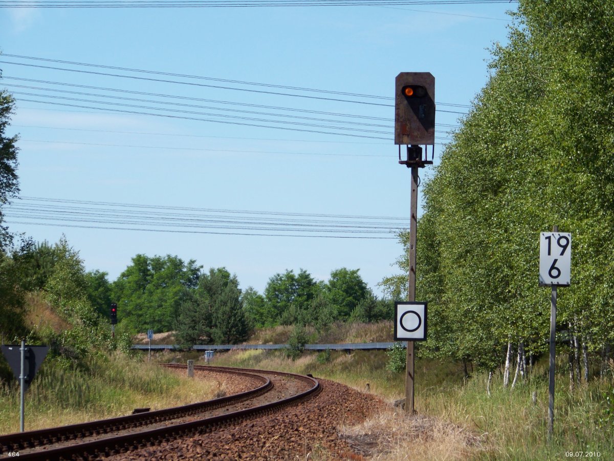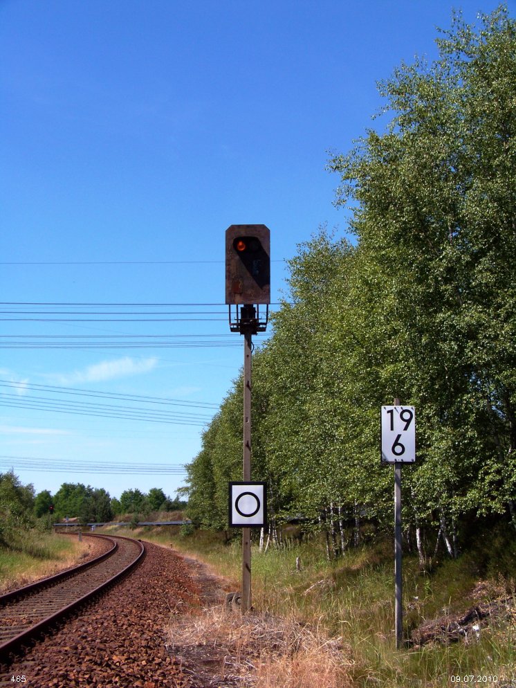 km 19,6 (Tafel) und km 19,7 (Stein) zwischen Abzw Graustein Süd und Graustein - Blick Richtung Abzw Spreewitz Süd - Knappenrode