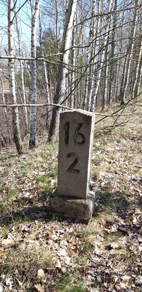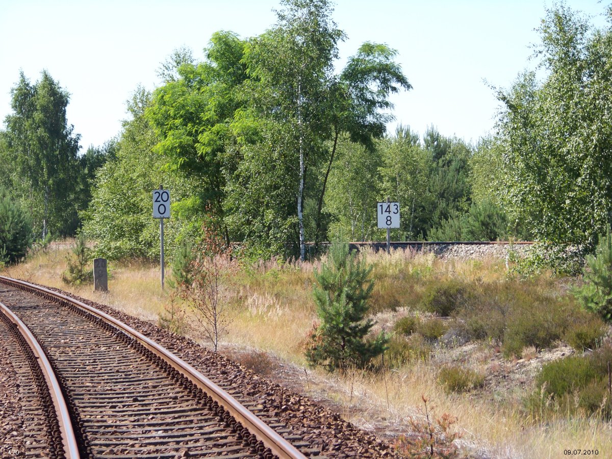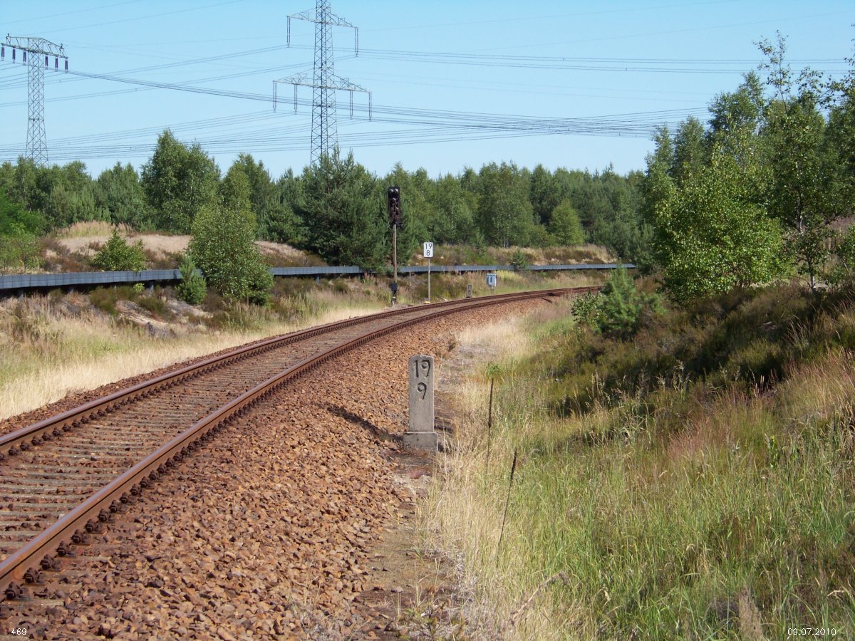 km 19,8 (Tafel und Stein)) und km 19,9 (Stein) zwischen Abzw Graustein Süd und Graustein - Blick Richtung Abzw Spreewitz Süd - Knappenrode