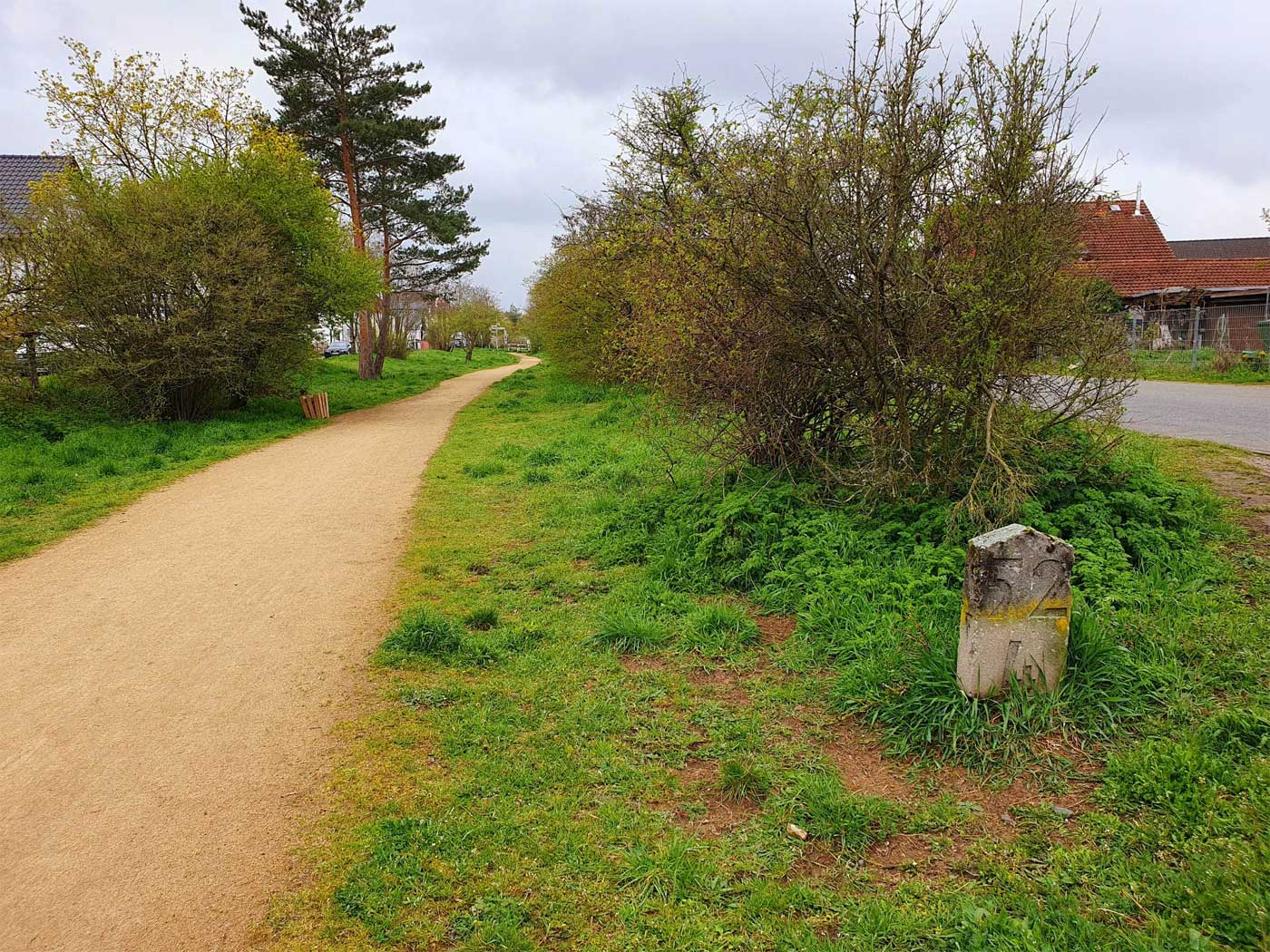 km 27,8 (Stein und Tafel) in Biblis - Blick Richtung Frankfurt (Main)