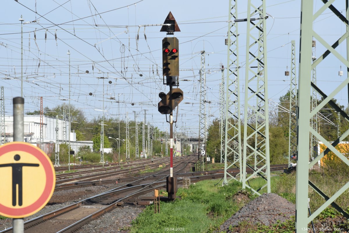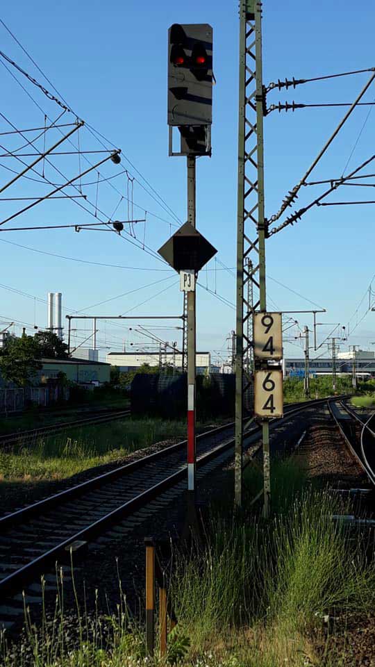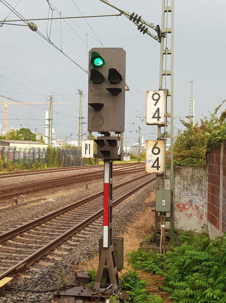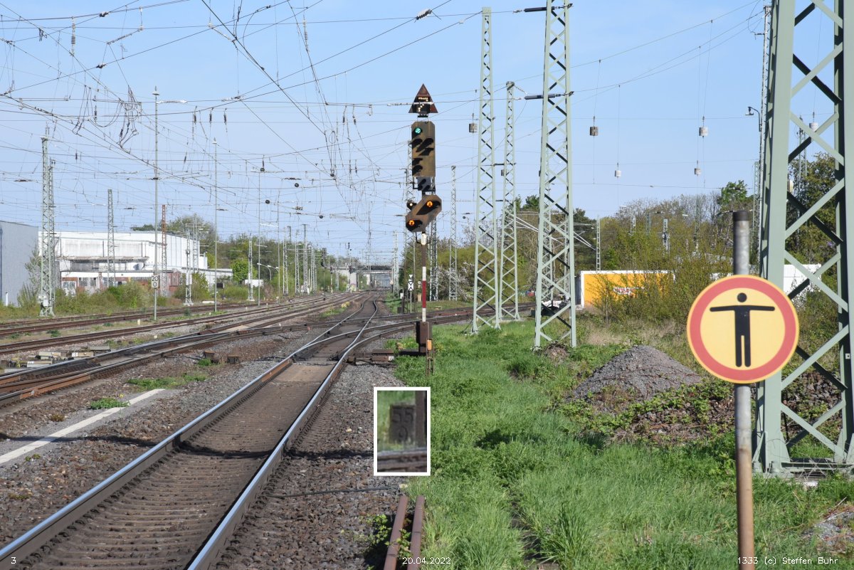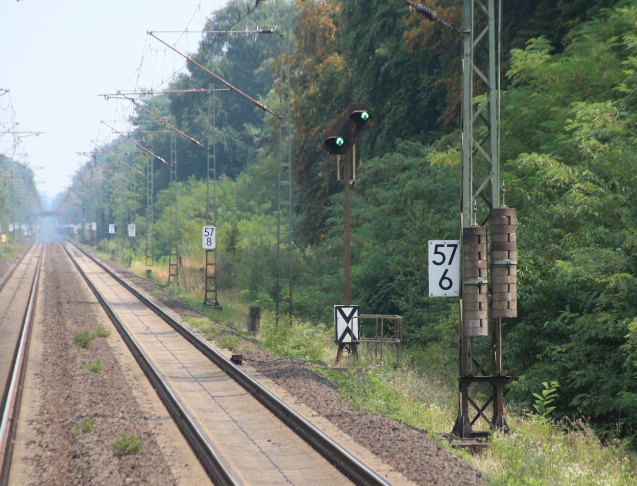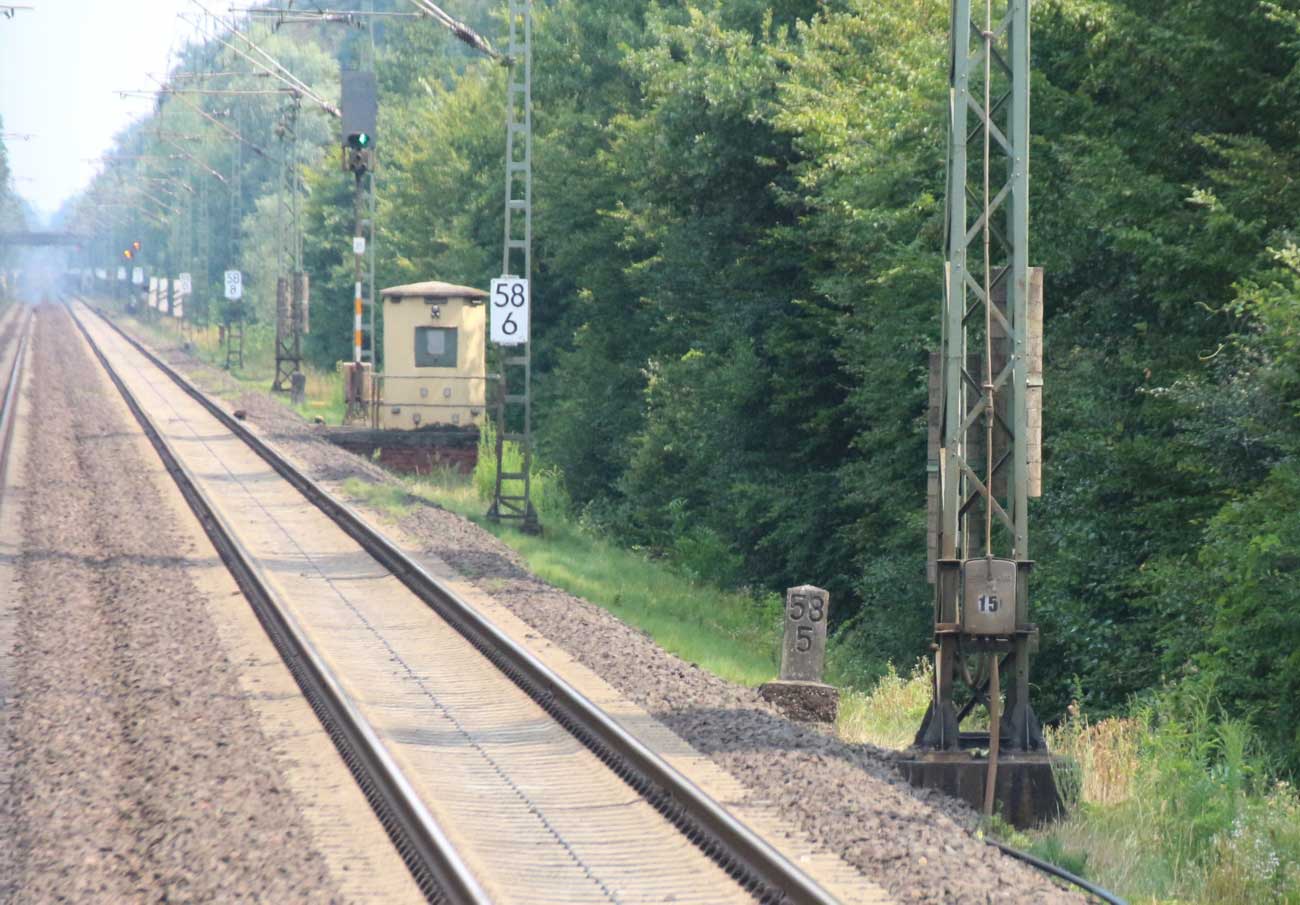 km 55,3 (Hintergrund) gehört zur Strecke nach Frankfurt (Main) Stadion [früher: Frankfurt (Main)-Sportfeld]