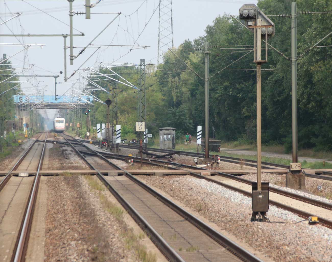 bei km 73,6 zwischen Zeppelinheim und Frankfurt am Main Stadion - Blick Richtung Mannheim