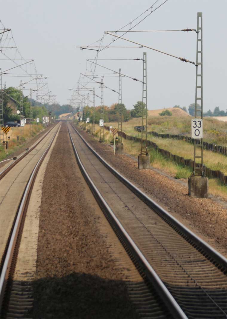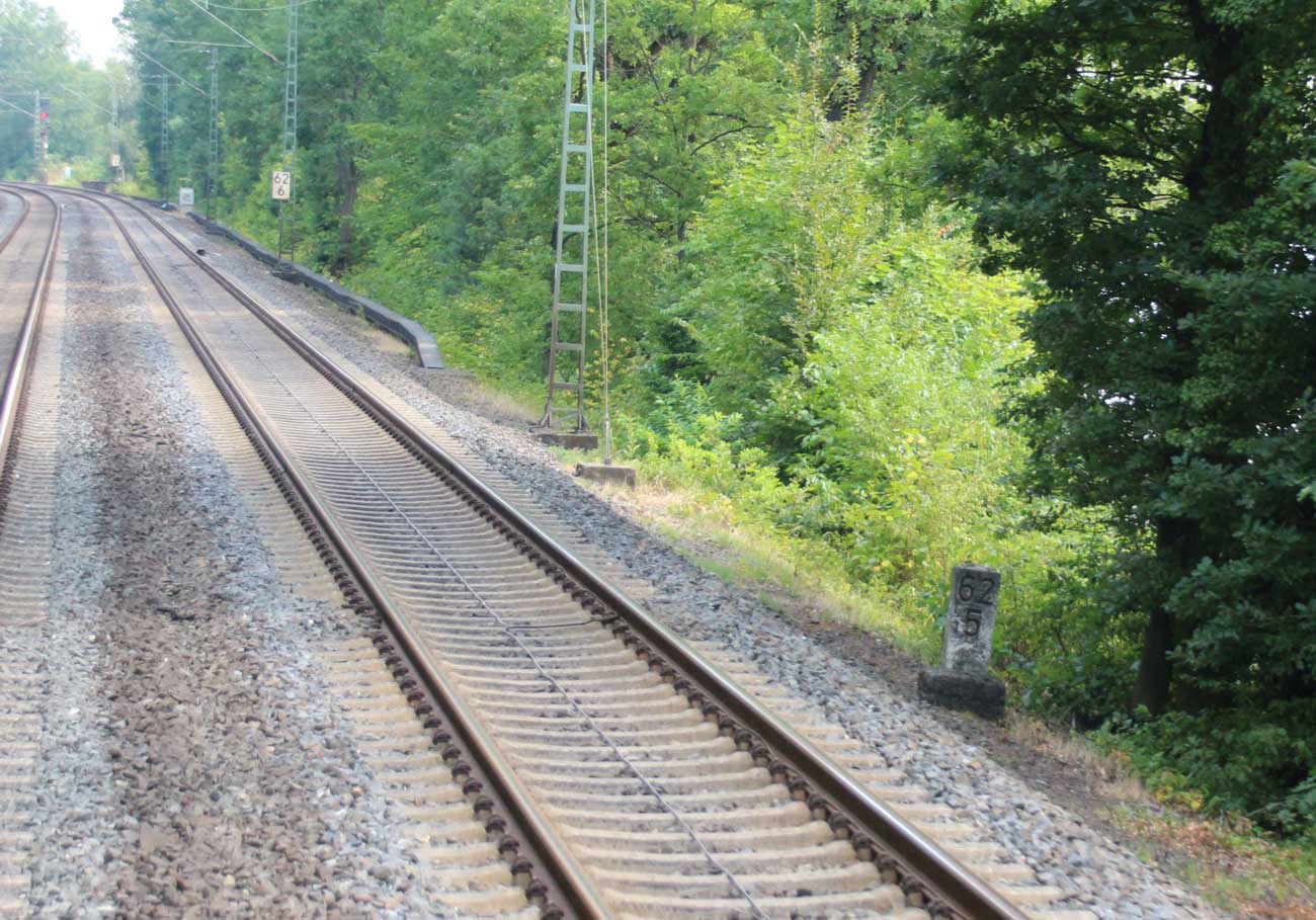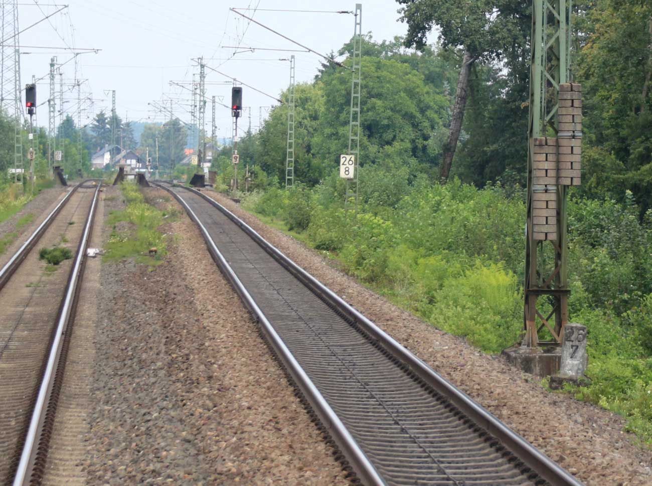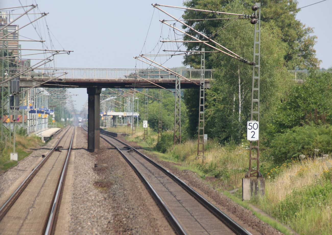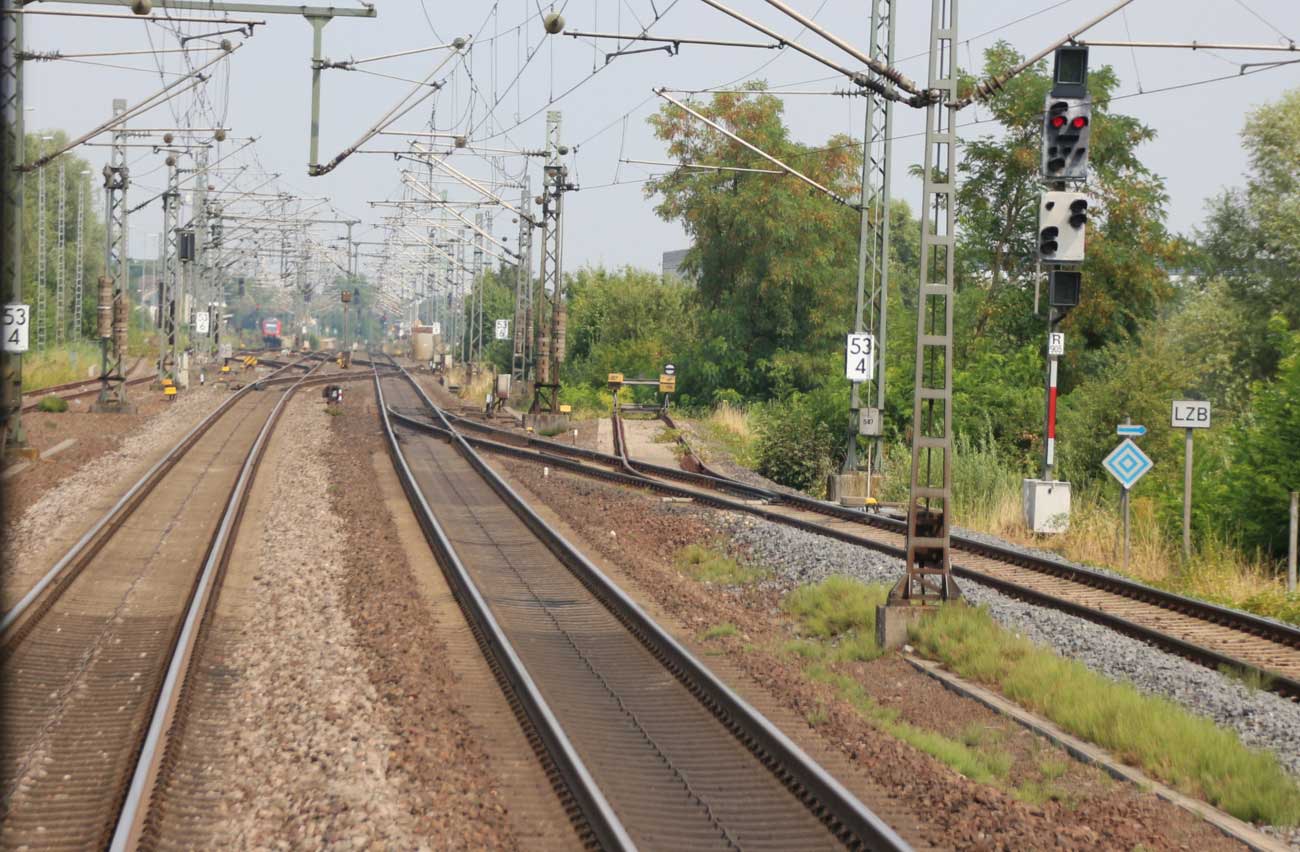 km 9,4 (rechte Gleise) in Mannheim-Waldhof - Blick Richtung Frankfurt