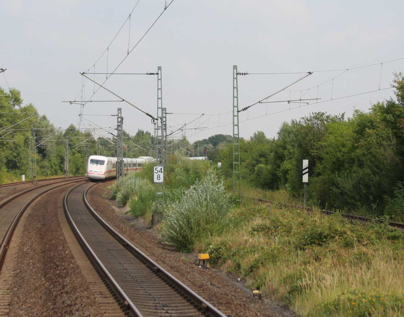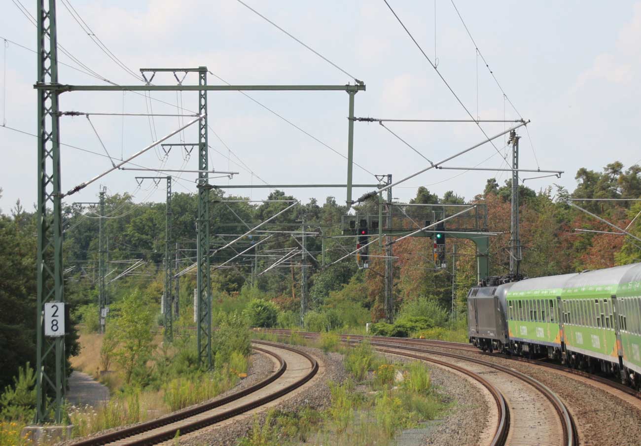 bei km 74,6 zwischen Zeppelinheim und Frankfurt am Main Stadion - Blick Richtung Mannheim