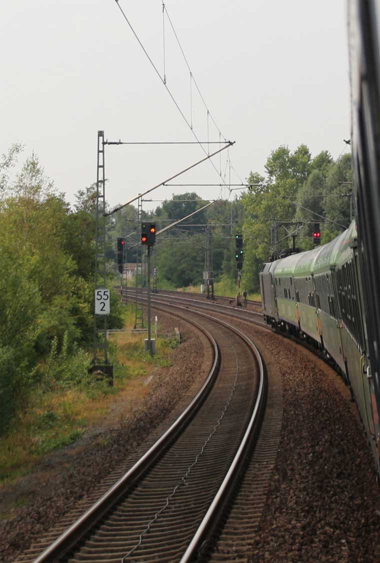 von rechts unten das Gegenrichtungsgleis der Strecke