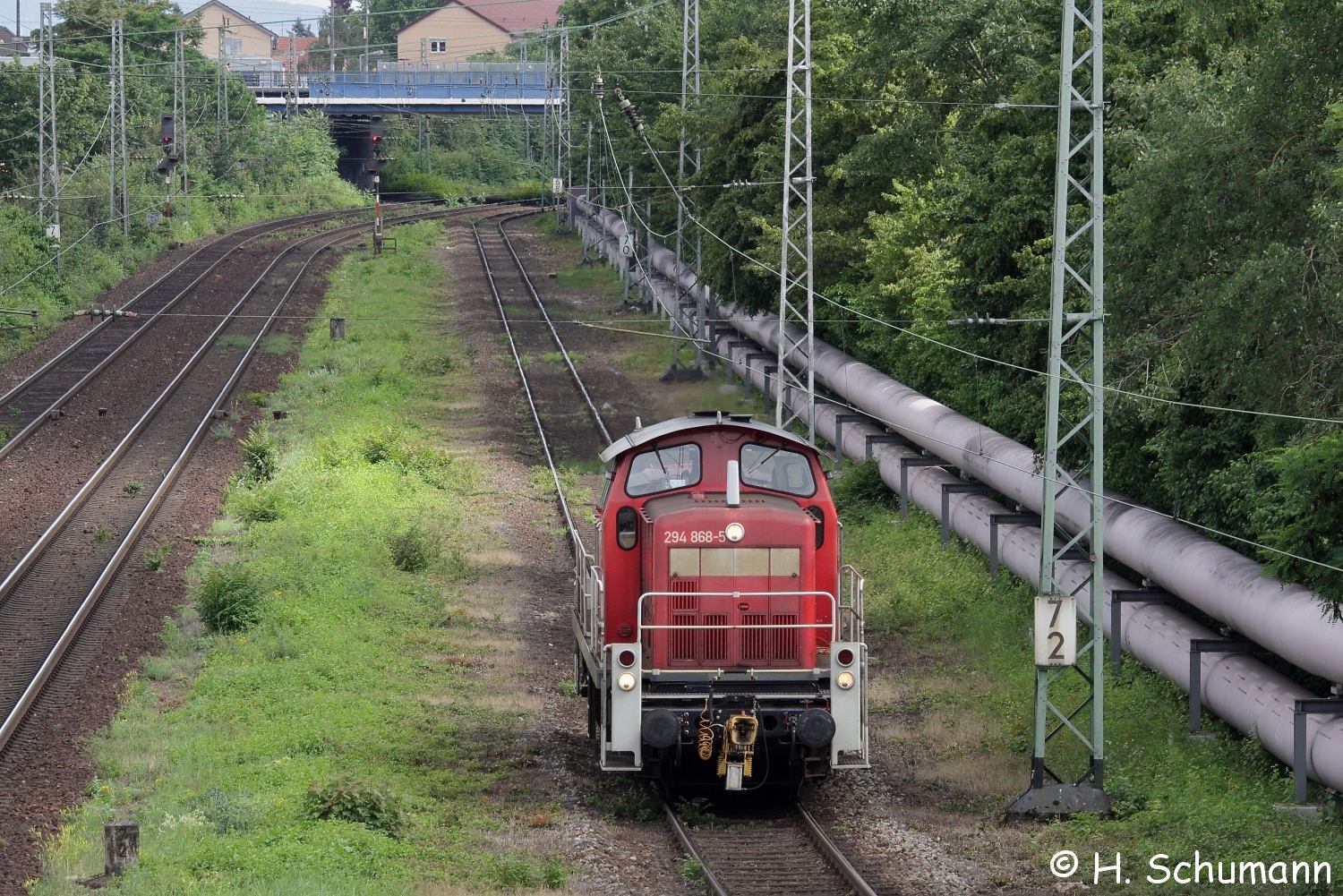 294 868 befindet sich auf der Strecke Mannheim-Käfertal, W 8, km -3,655 - Industriehafen,Preus.Kai(Glan),Gl6,H-Bahn, km 1,732 (4040)