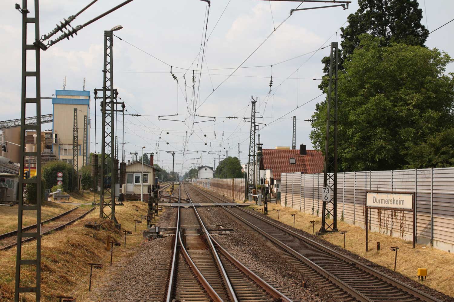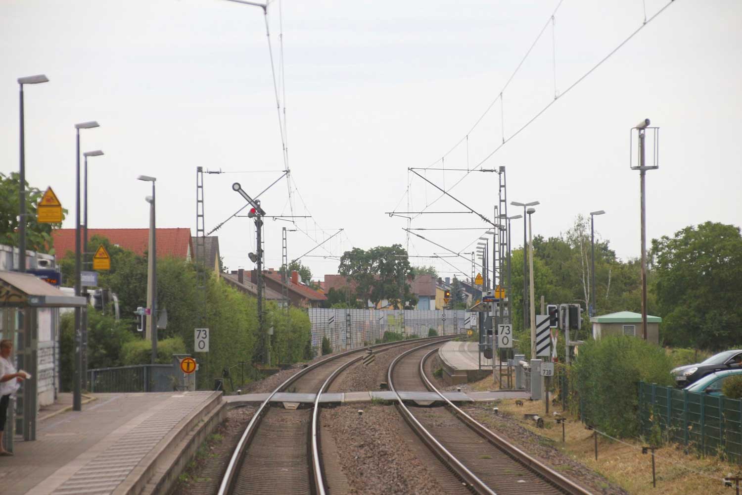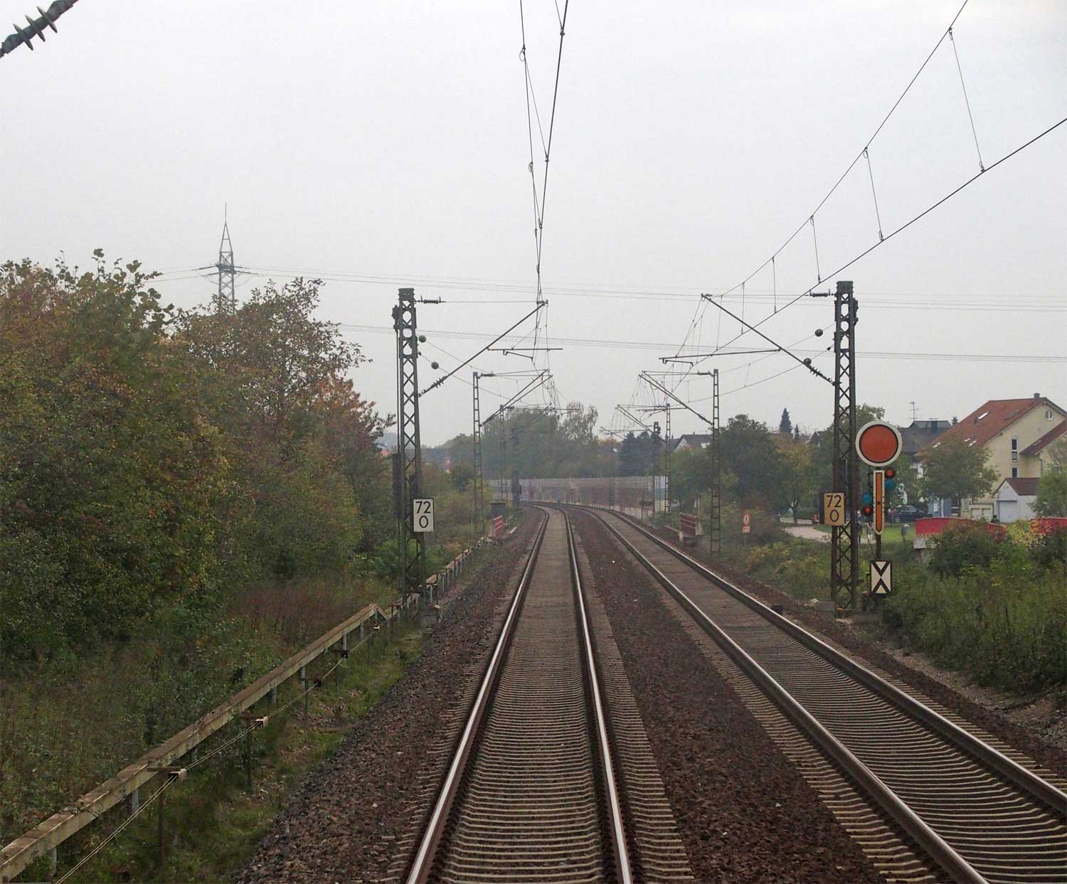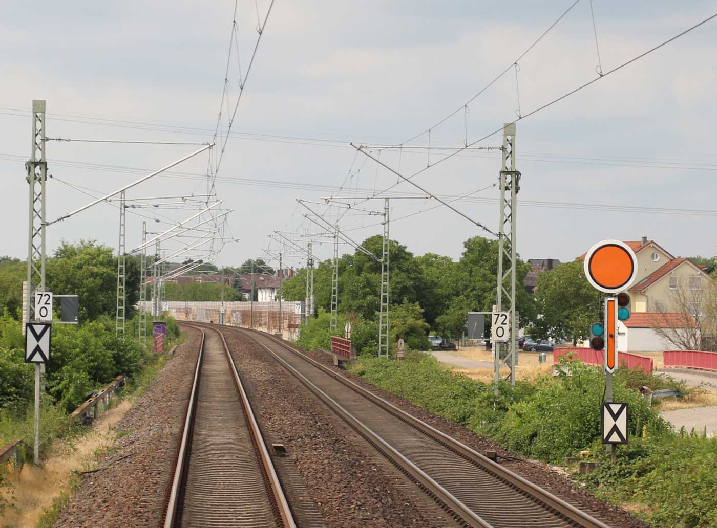 km 72,90 der Strecke Mannheim Hbf 0,0 - Heidelberg Hbf (alt) 18,71 (neu) 17,4 = 19,1 - Karlsruhe Hbf 72,90 - Basel Bad. Bf 270,69 - Singen (Hoh) 384,08 - Konstanz 414,34 - Staatsgrenze 414,83