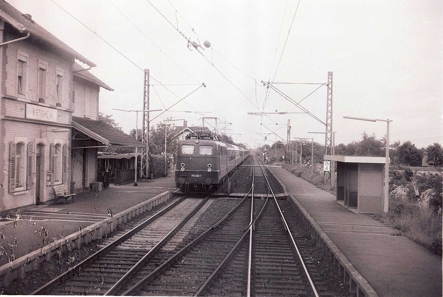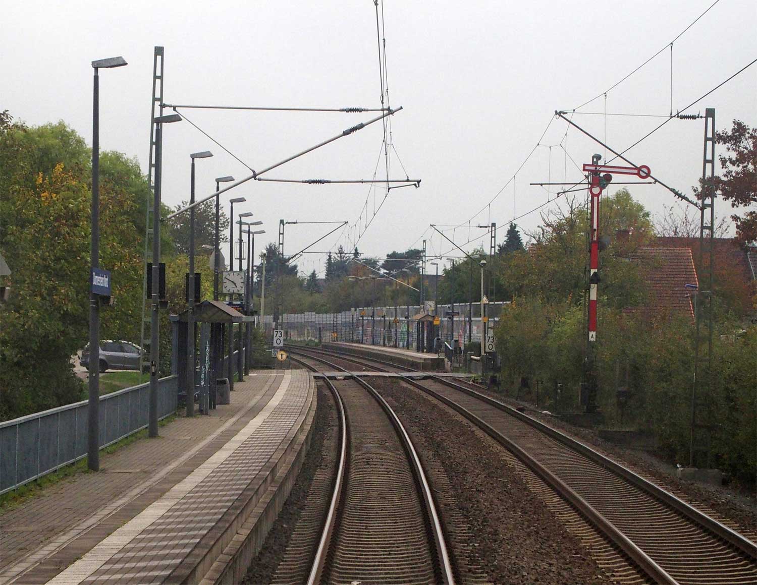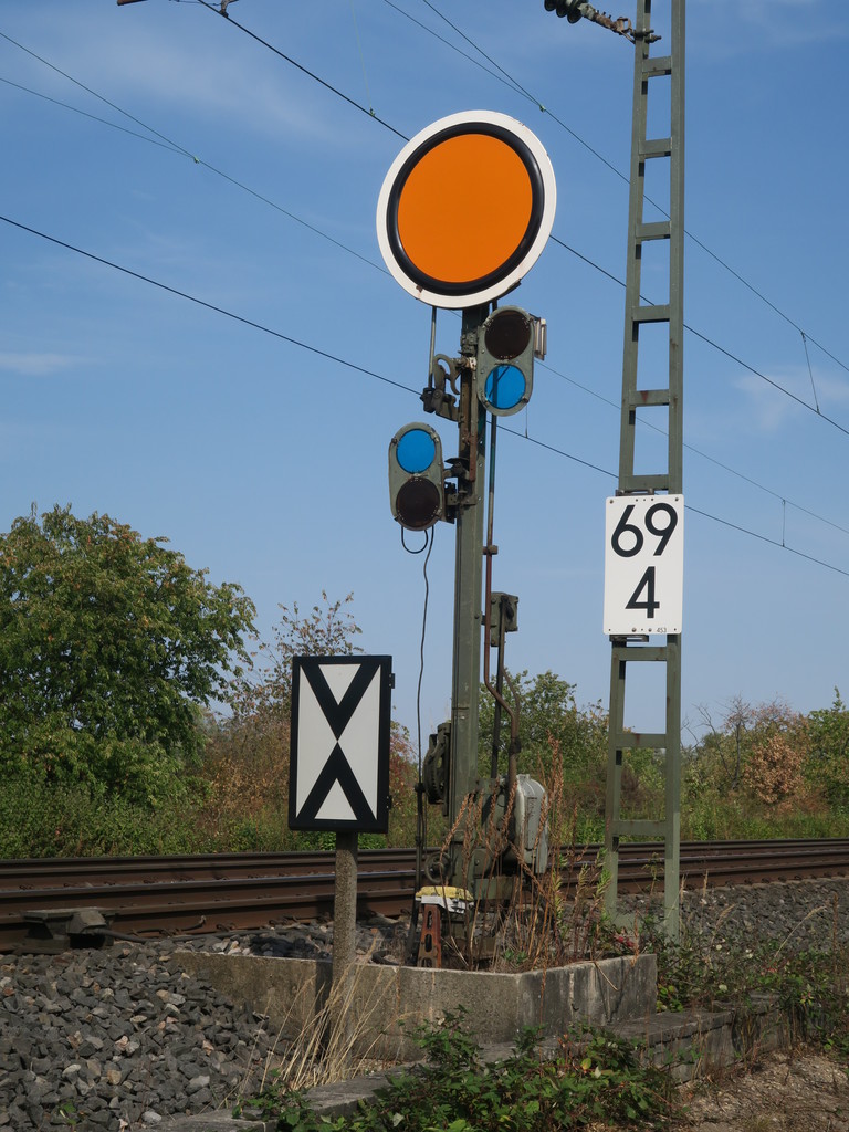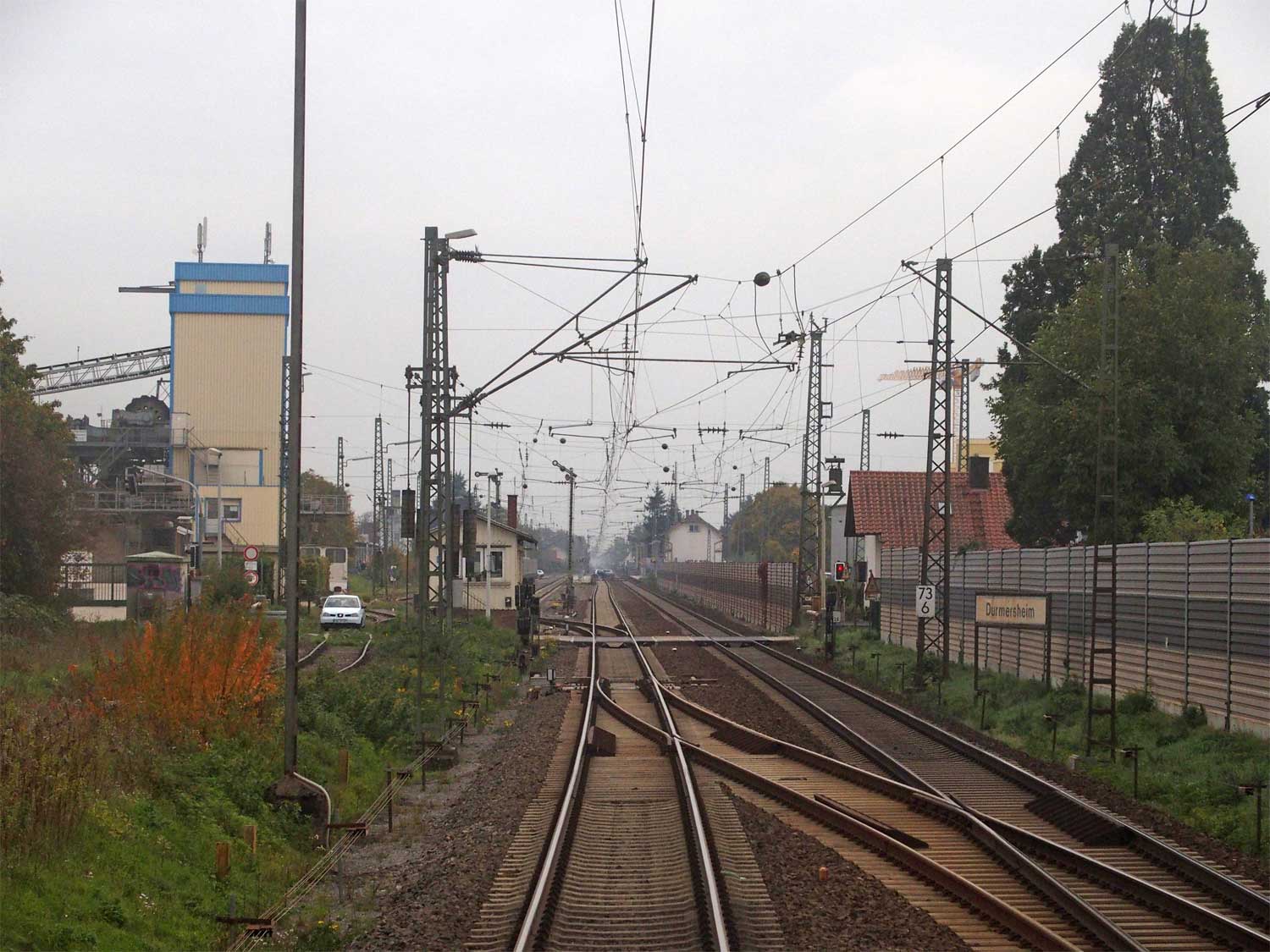 km 72,90 der Strecke Mannheim Hbf 0,0 - Heidelberg Hbf (alt) 18,71 (neu) 17,4 = 19,1 - Karlsruhe Hbf 72,90 - Basel Bad. Bf 270,69 - Singen (Hoh) 384,08 - Konstanz 414,34 - Staatsgrenze 414,83