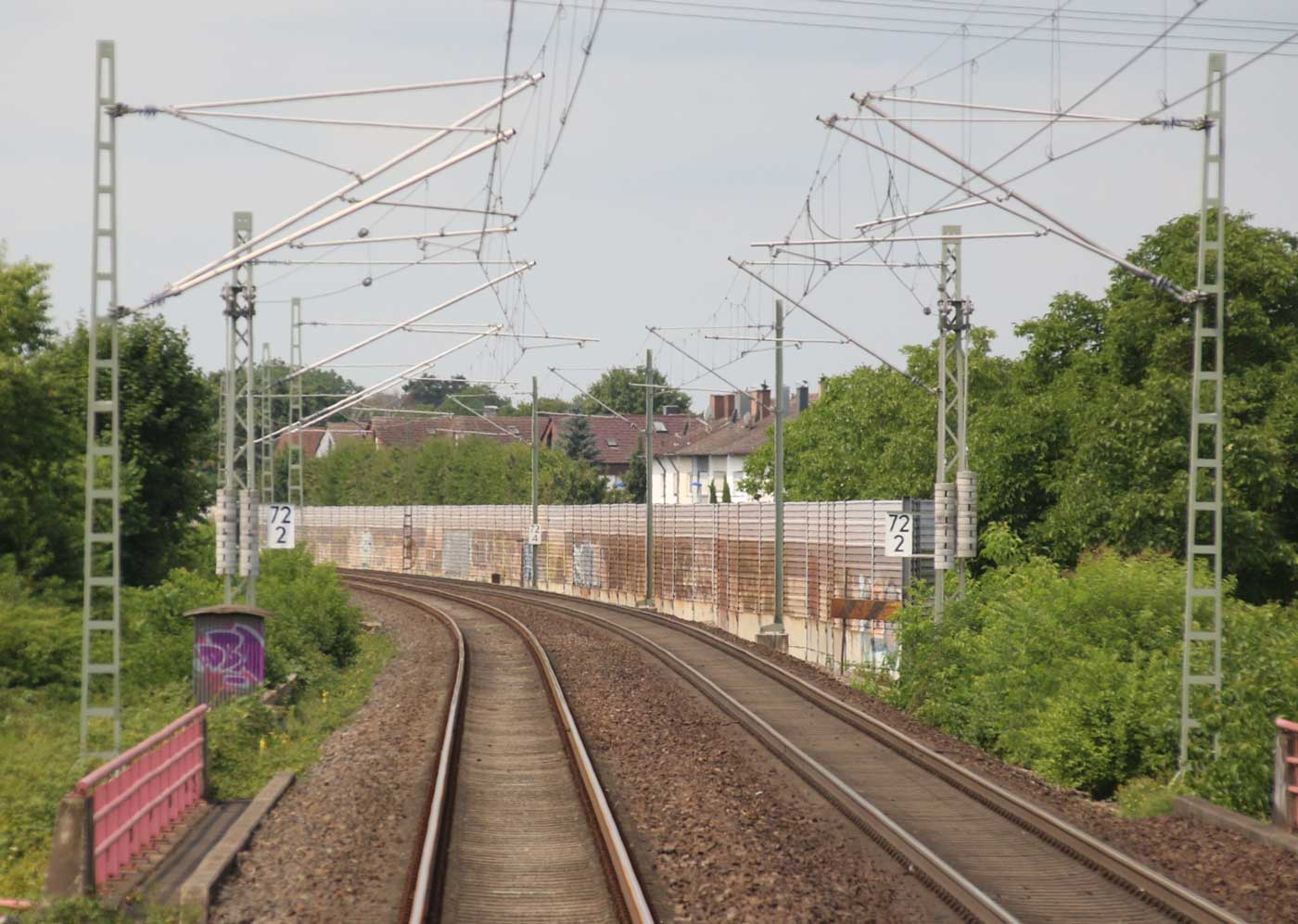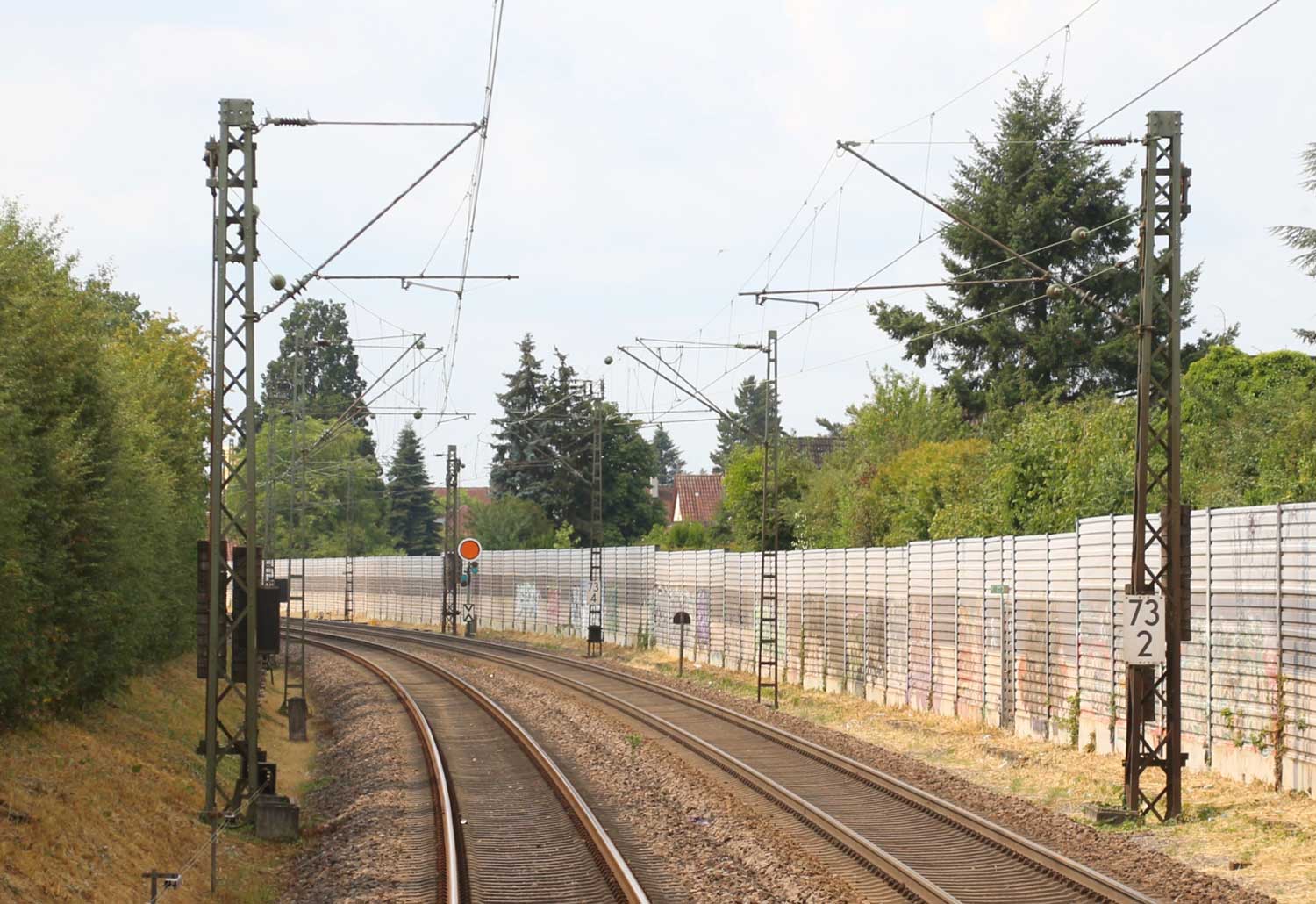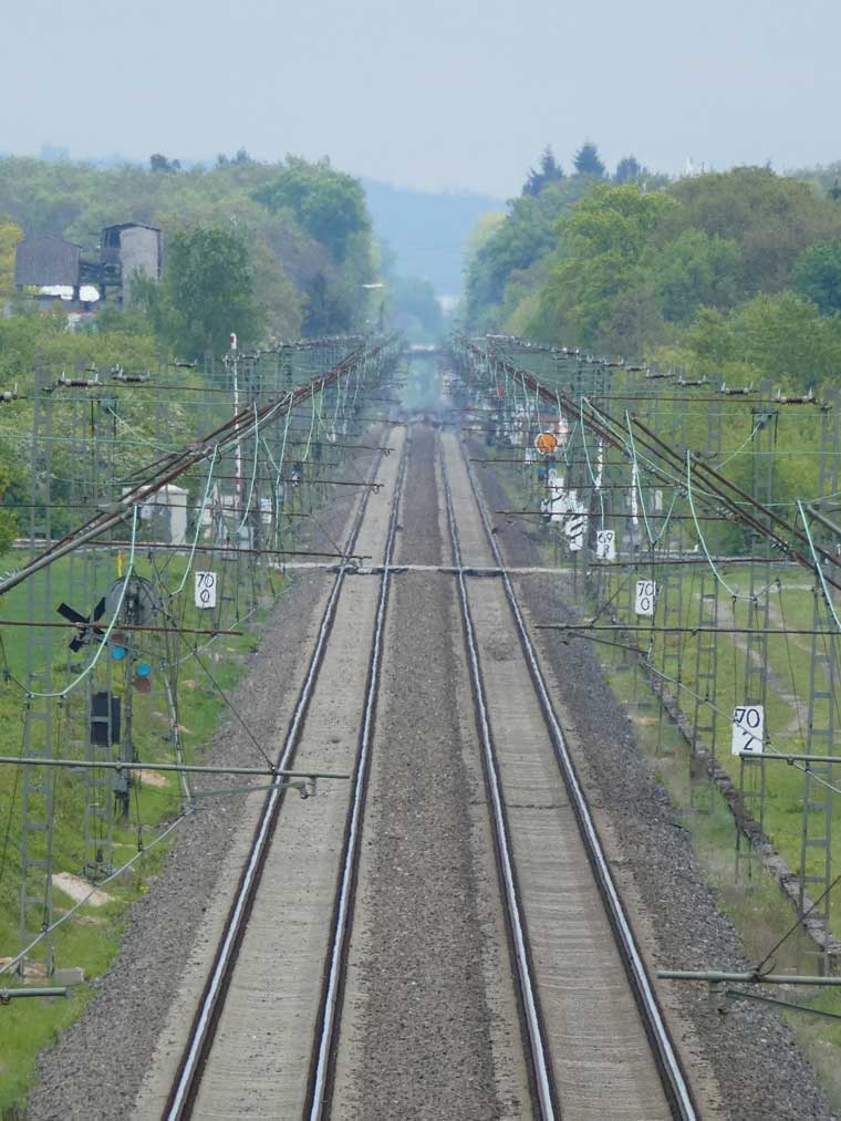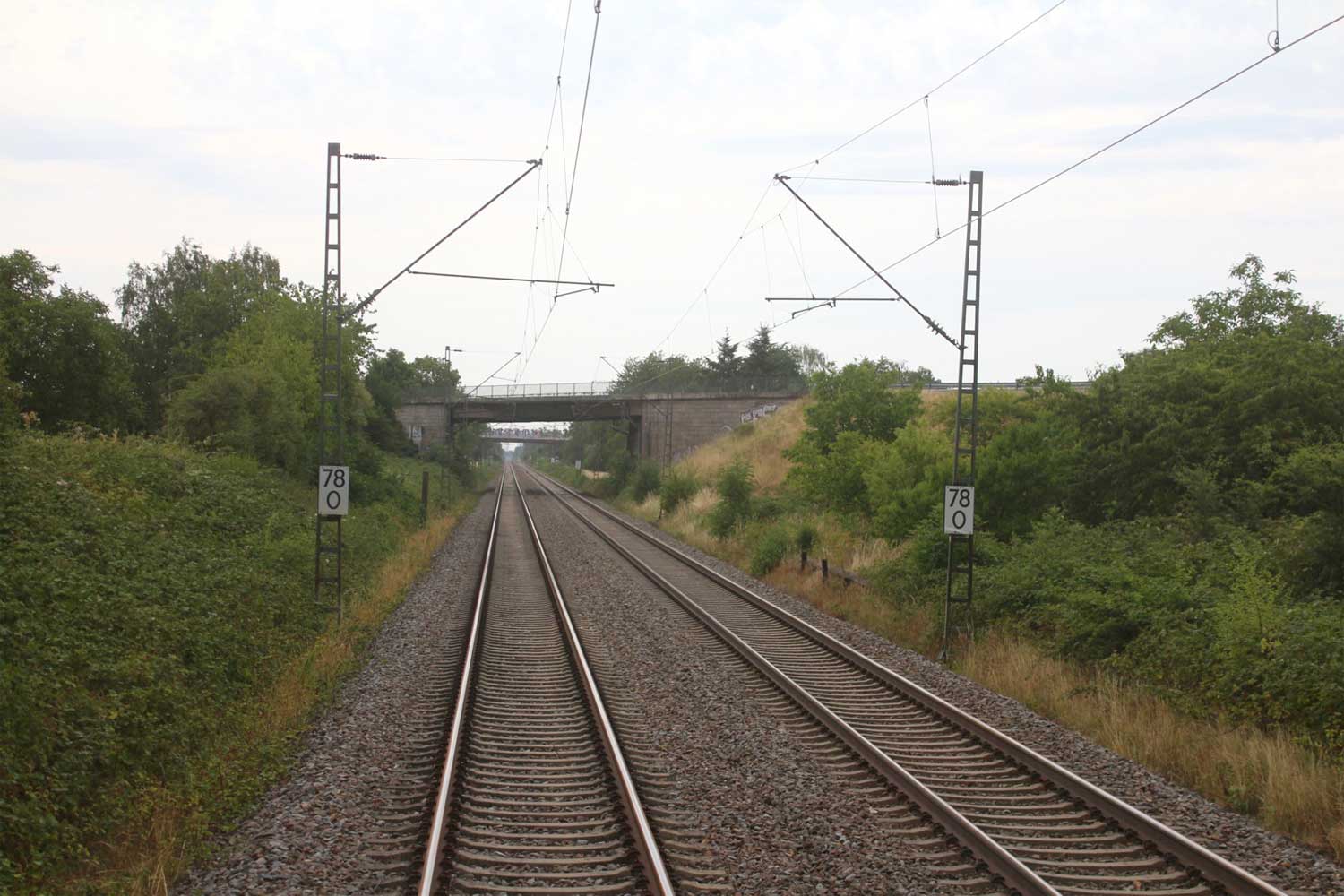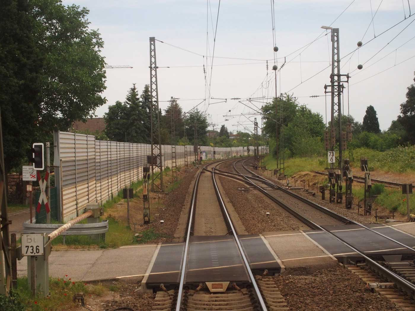 km 82,4 und km 82,6 in Rastatt - Blick Richtung Mannheim