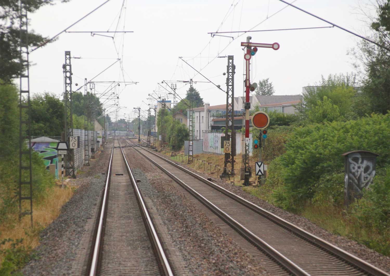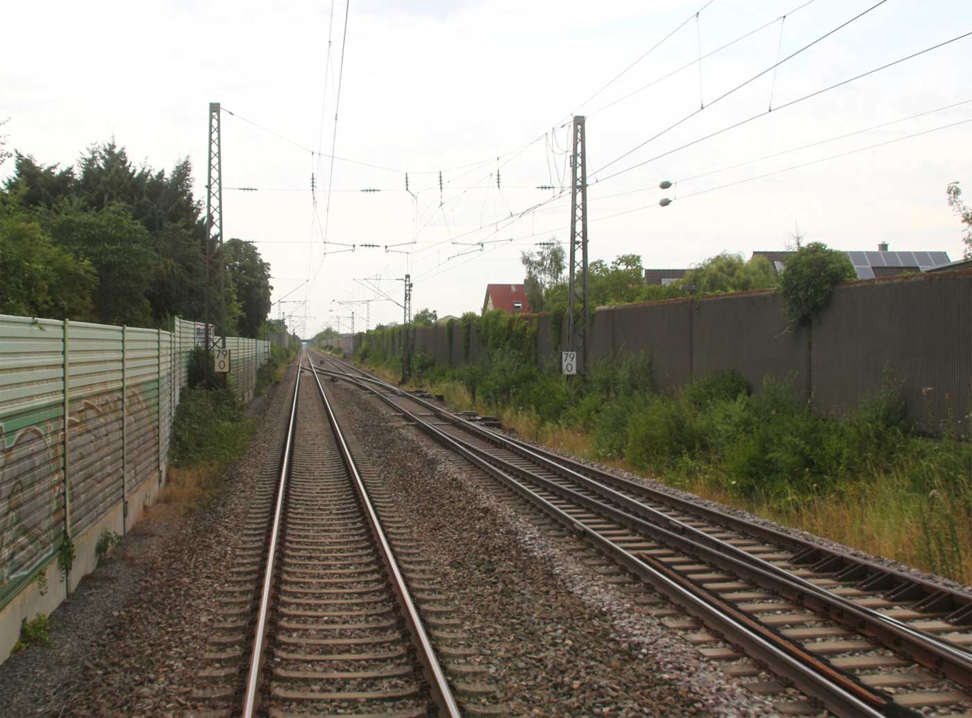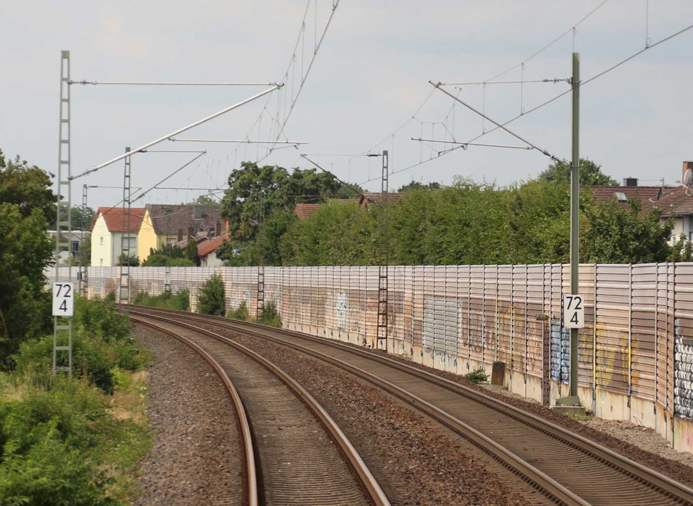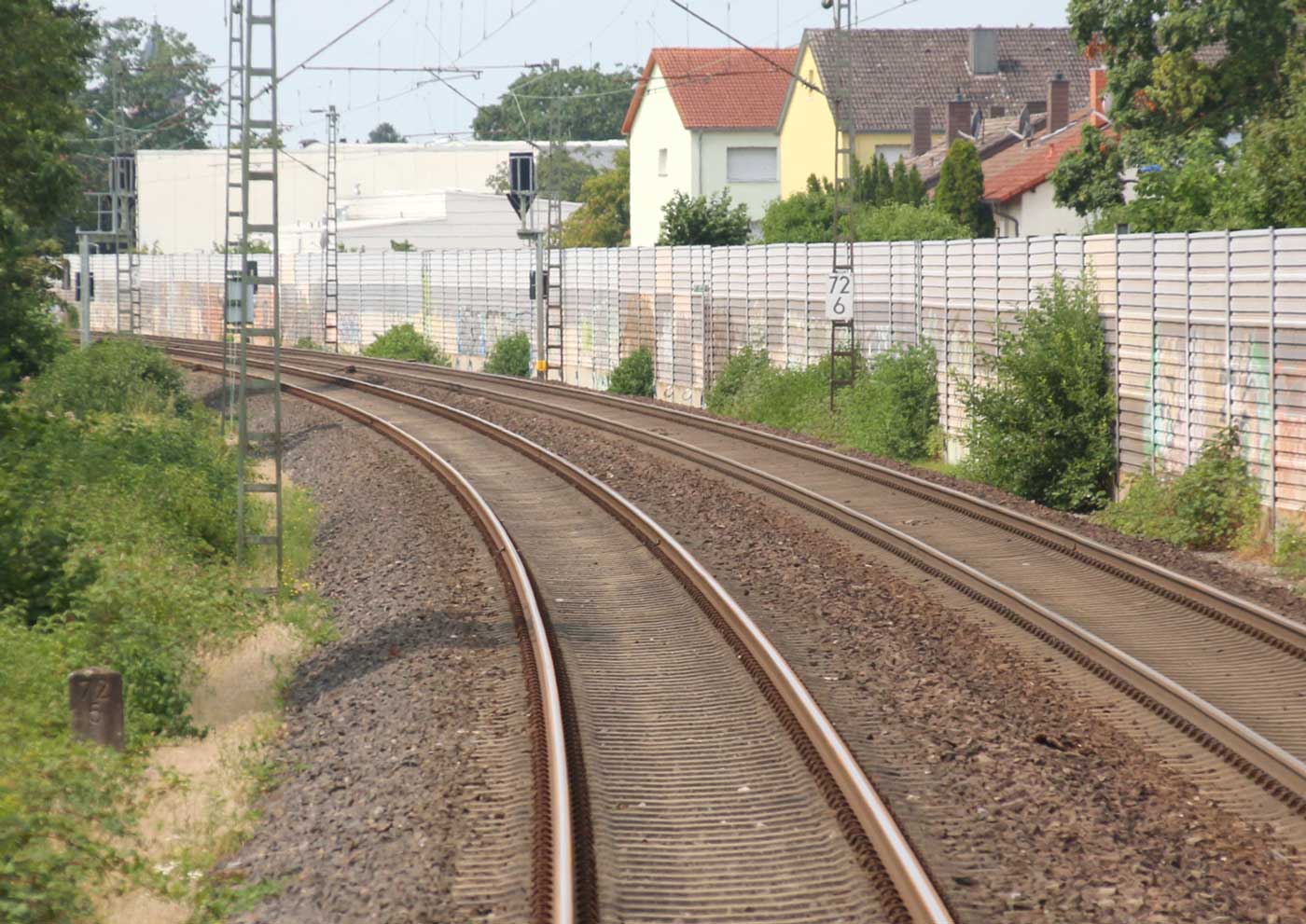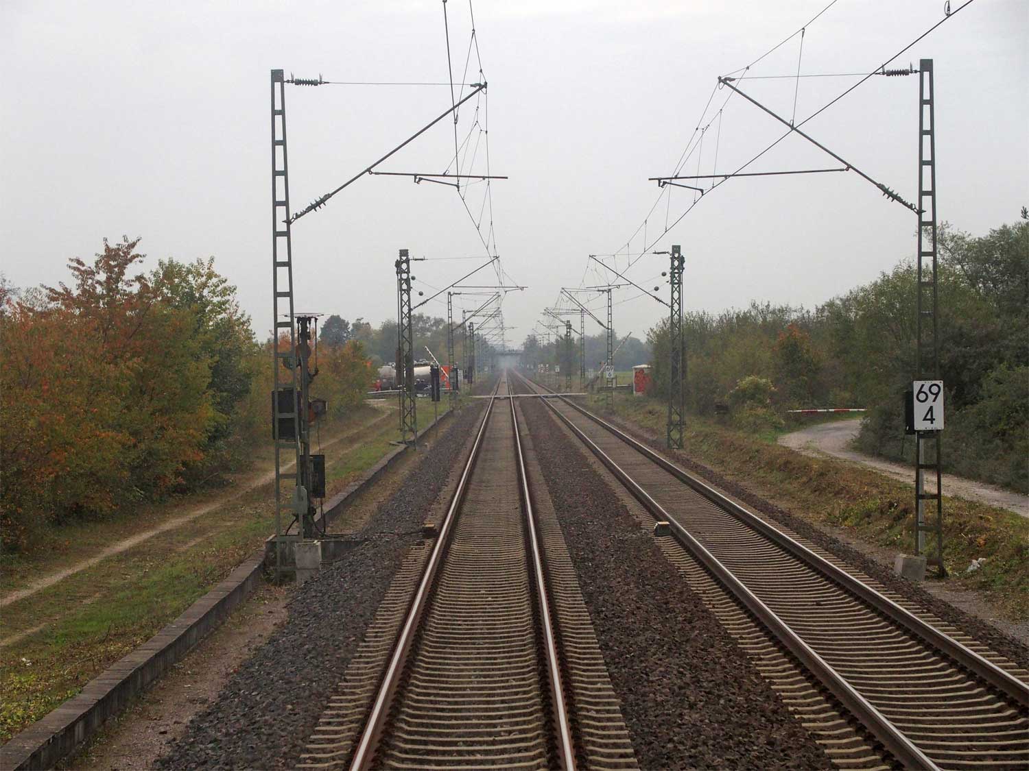 km 82,4 und km 82,6 in Rastatt - Blick Richtung Mannheim