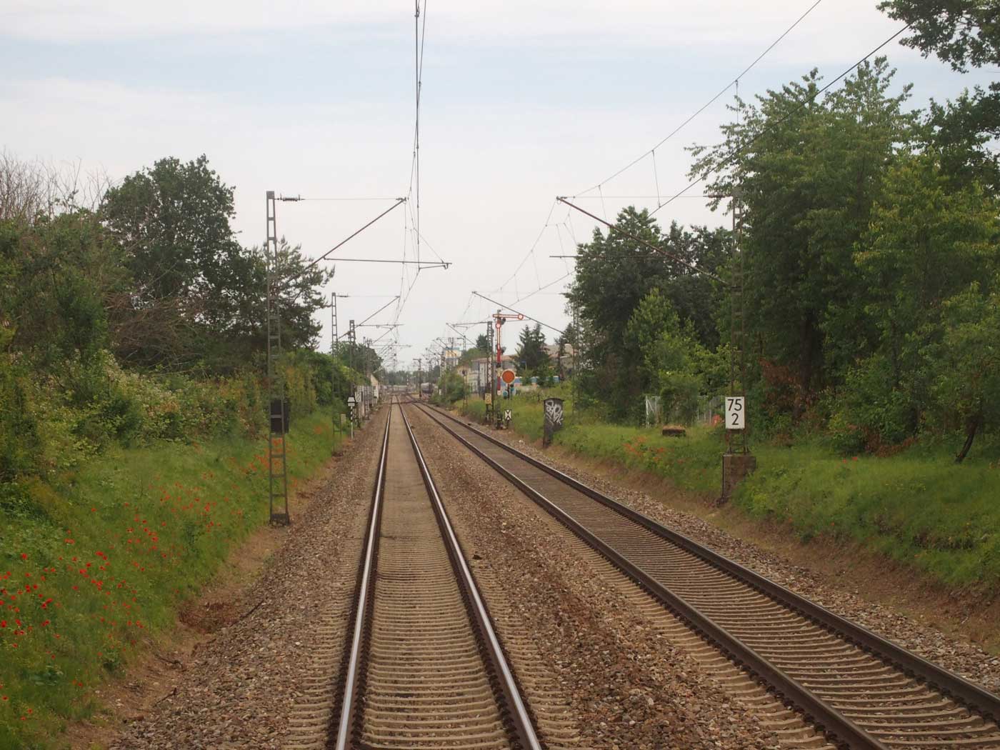 km 91,9 zwischen Wintersdorf (Baden) und Grenze - Blick Ri Rastatt