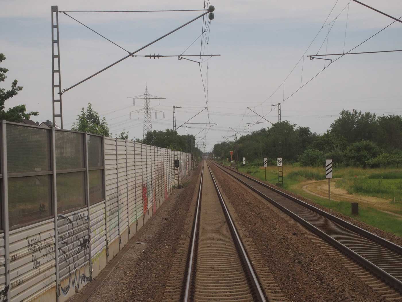 bei km 82,4 (links) in Rastatt - Blick Richtung Mannheim