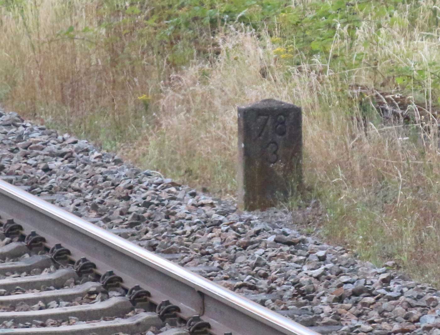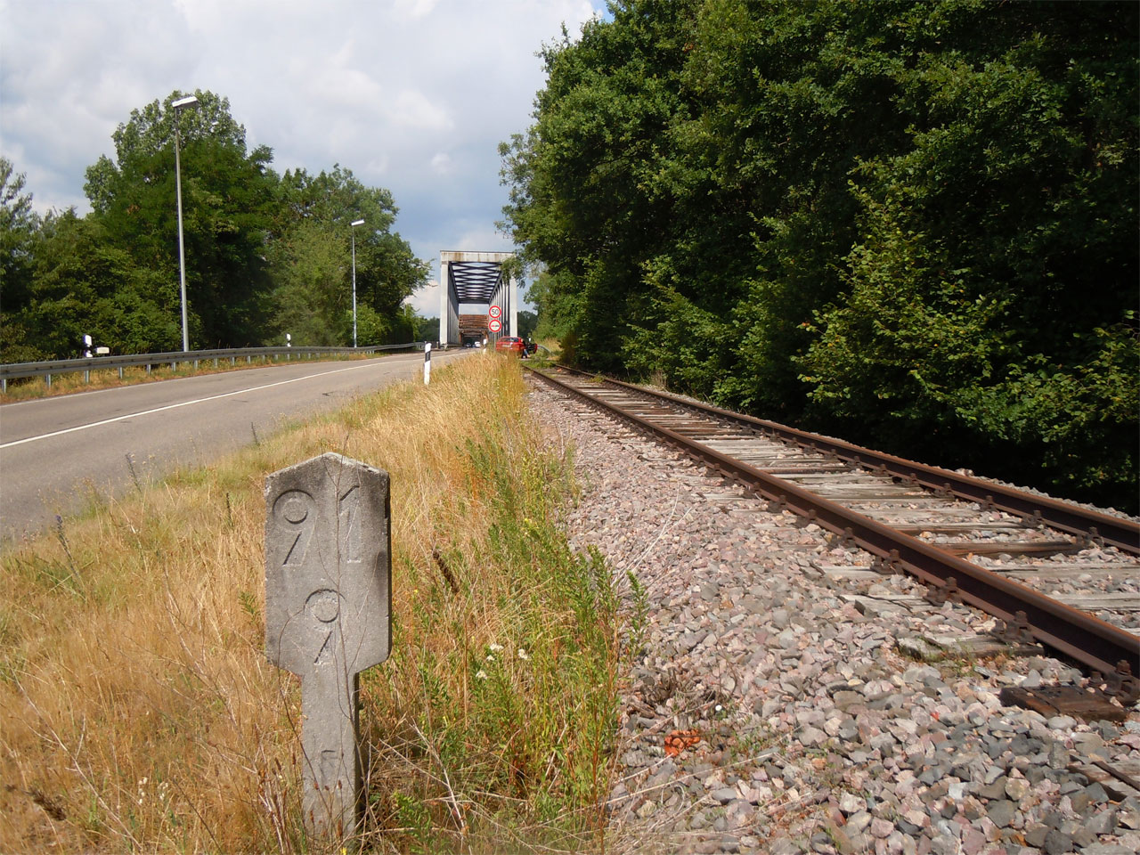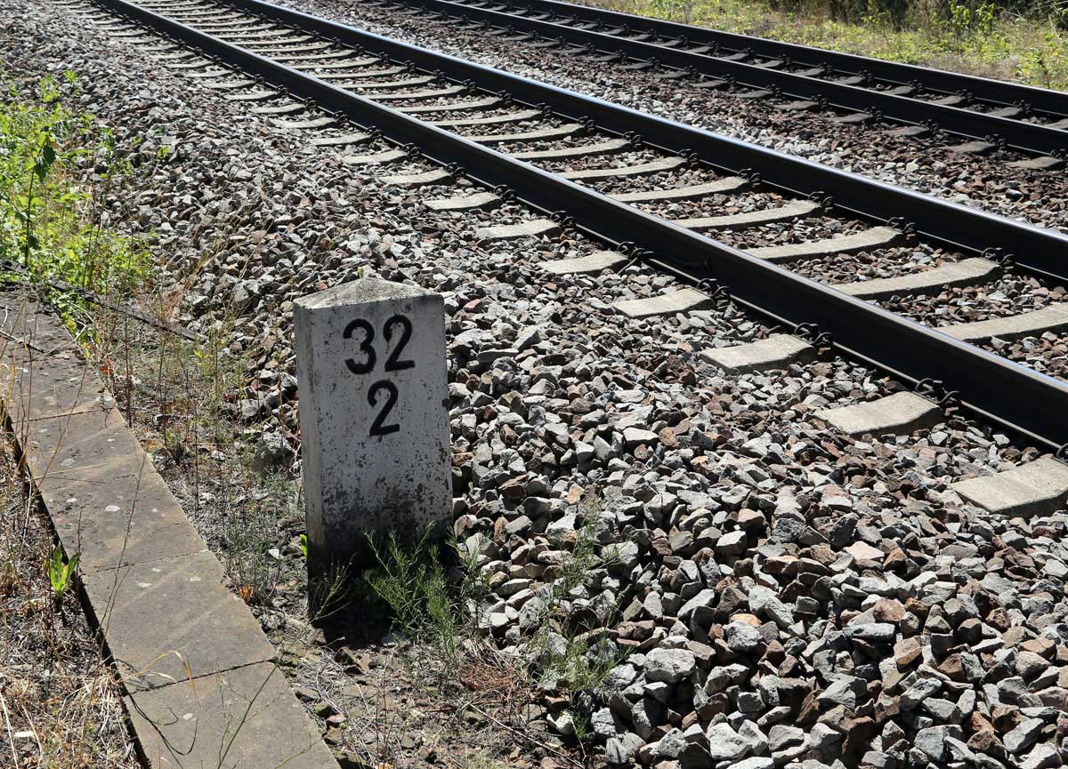 km 96,0 (Tafel) und km 96,2 (Stein) gehören zur Strecke