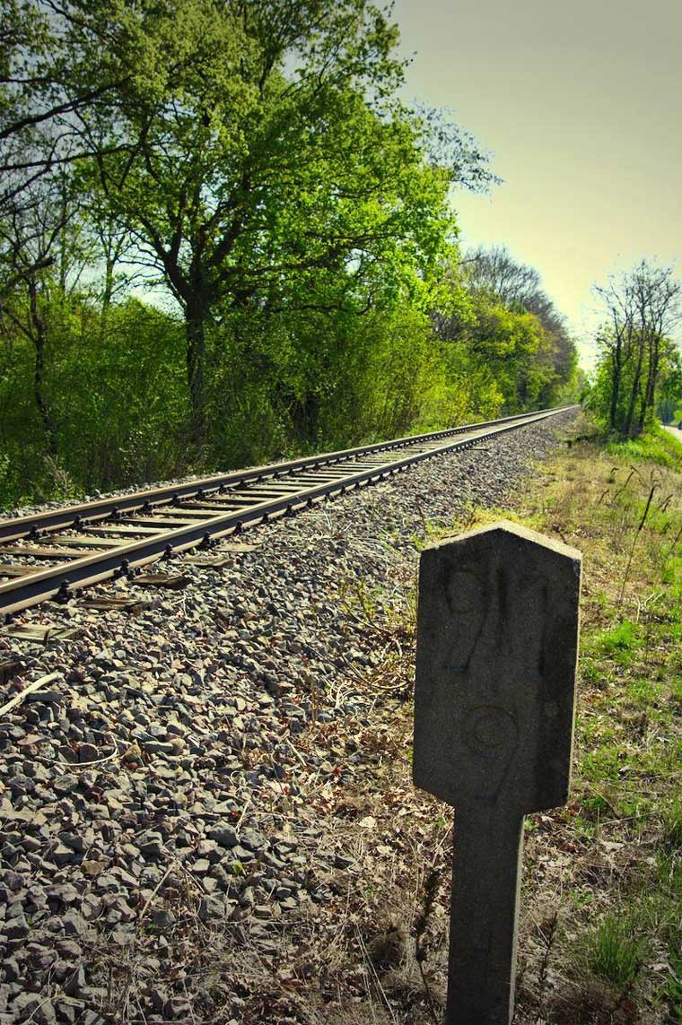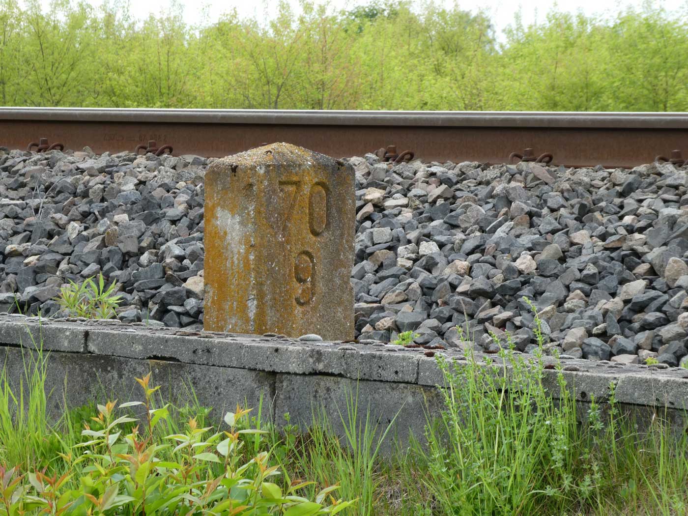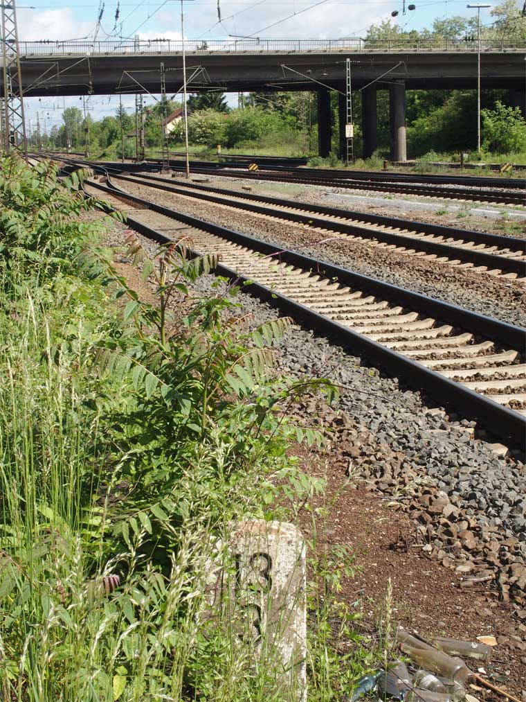 km 96,0 (Tafel) und km 96,2 (Stein) gehören zur Strecke